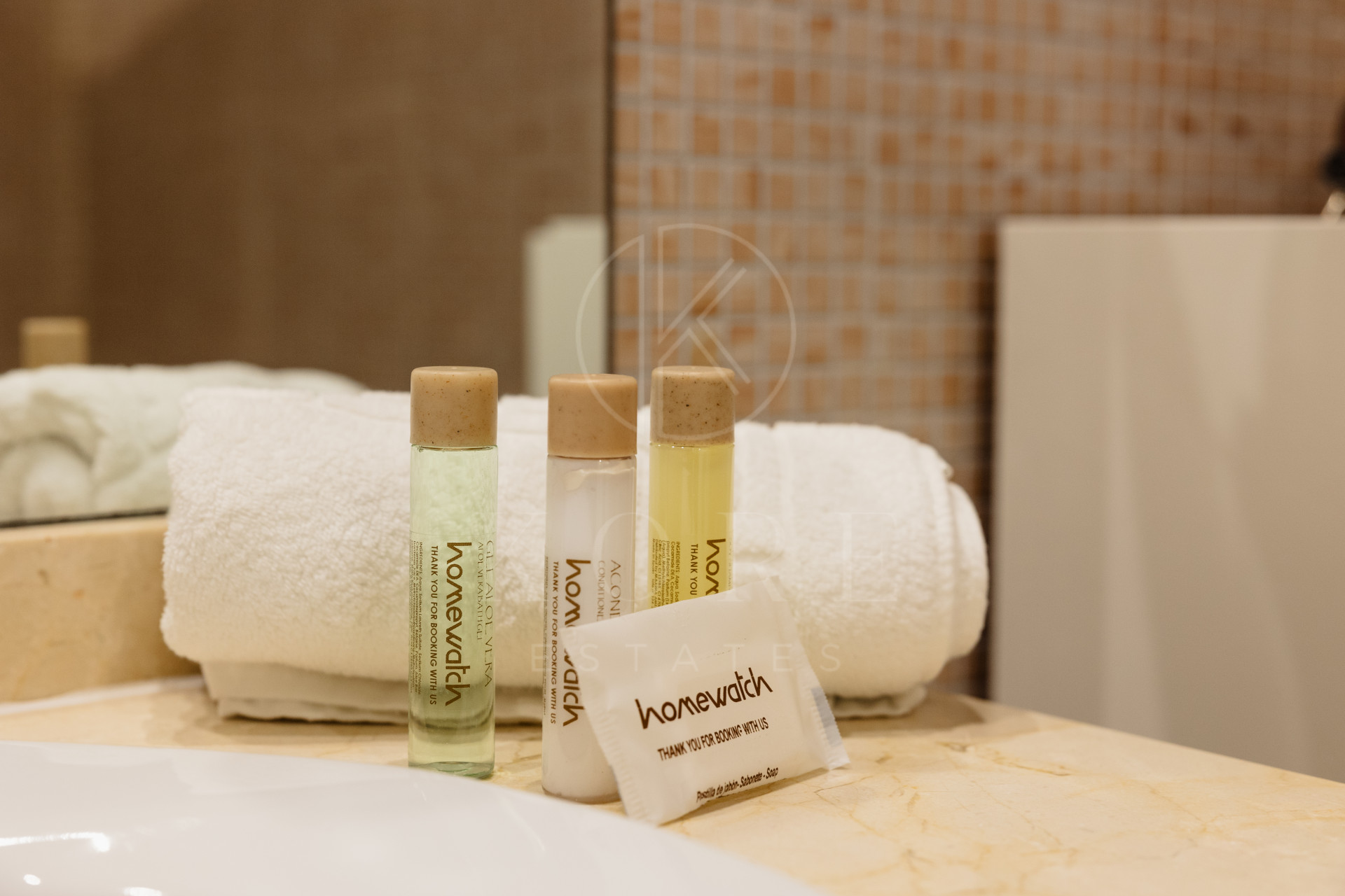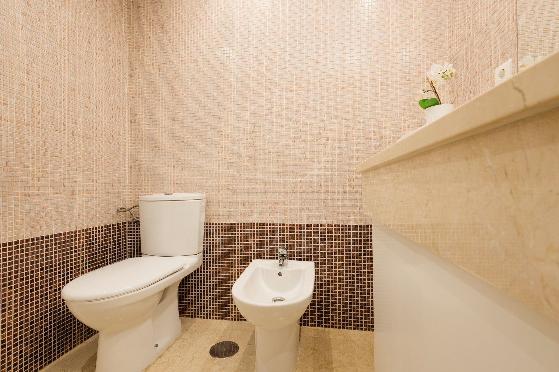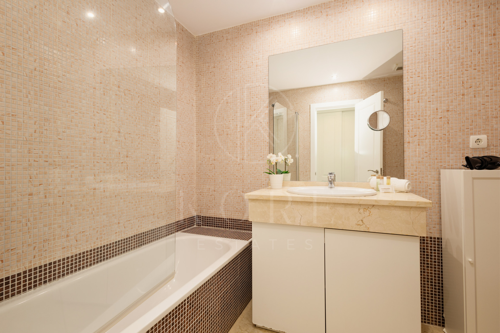Las comodidades modernas incluyen aire acondicionado, calefacción central, televisión por satélite con más de 2,000 canales internacionales, internet de alta velocidad con acceso a Netflix, suelos de mármol, sistema de domótica, sistema de alarma, doble acristalamiento y aparcamiento privado en garaje con acceso directo al apartamento.