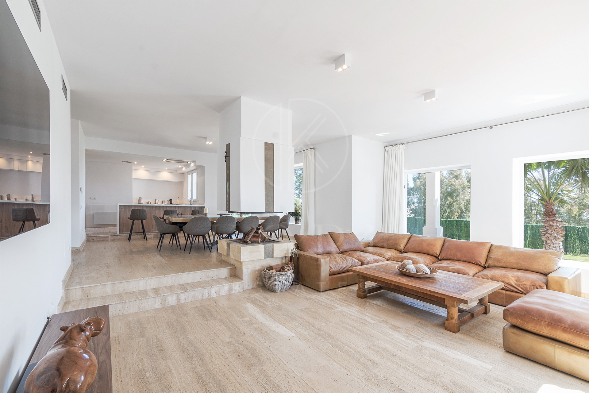 El espacio exterior es igualmente espectacular, con una piscina privada perfecta para disfrutar del cálido clima de la Costa del Sol. El jardín que rodea la propiedad agrega un toque natural y de privacidad, con un bar y zona de barbacoa ideales para el entretenimiento al aire libre y cenas al atardecer.