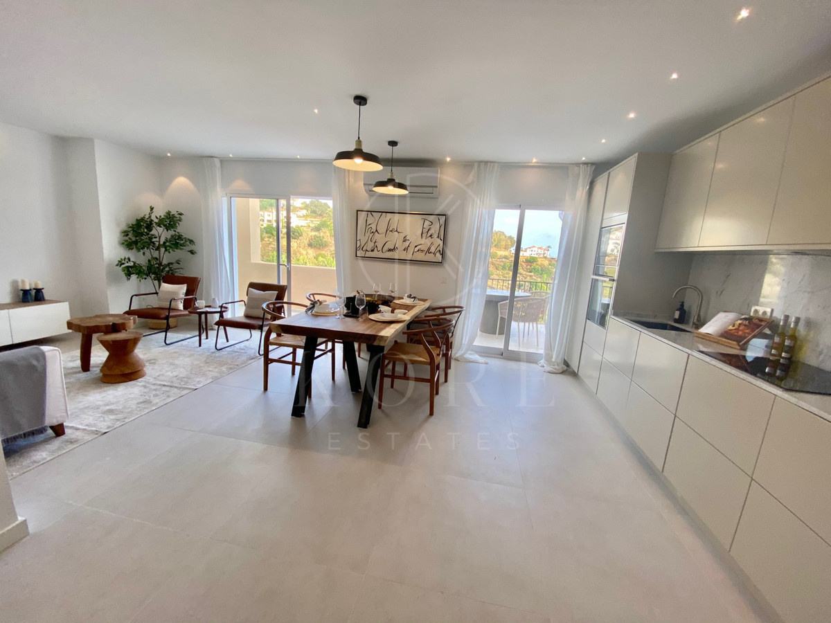 Hermoso y amplio ático completamente renovado ubicado en un complejo cerrado en La Quinta, junto al famoso Hotel Westin. La propiedad consta de una amplia sala de estar con cocina abierta, 4 dormitorios y 3 baños, gran terraza con vistas panorámicas. La propiedad ha sido renovada con materiales de alta calidad: una cocina Ballingslov con electrodomésticos Neff, madera natural y decoración con mucho gusto. El complejo ofrece amplios jardines tropicales y piscina comunitaria, así como aparcamiento para residentes. Puerto Banús y la playa están a sólo unos minutos en coche.