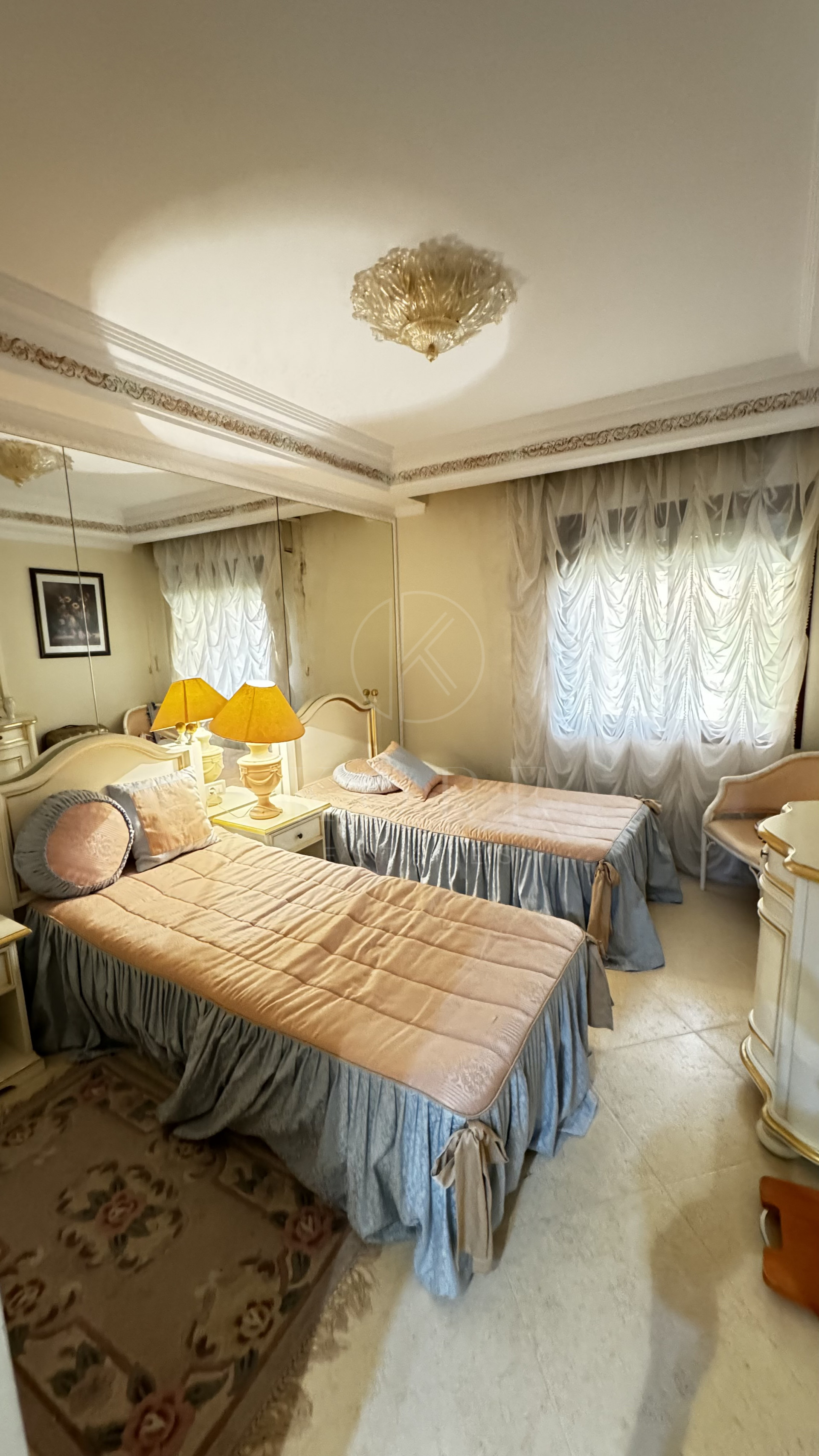 La sala de estar es amplia y está decorada con buen gusto en un estilo clásico, con muebles antiguos y cuadros que añaden elegancia al espacio. Una de las habitaciones está equipada con dos camas, perfectas para alojar huéspedes adicionales o niños.