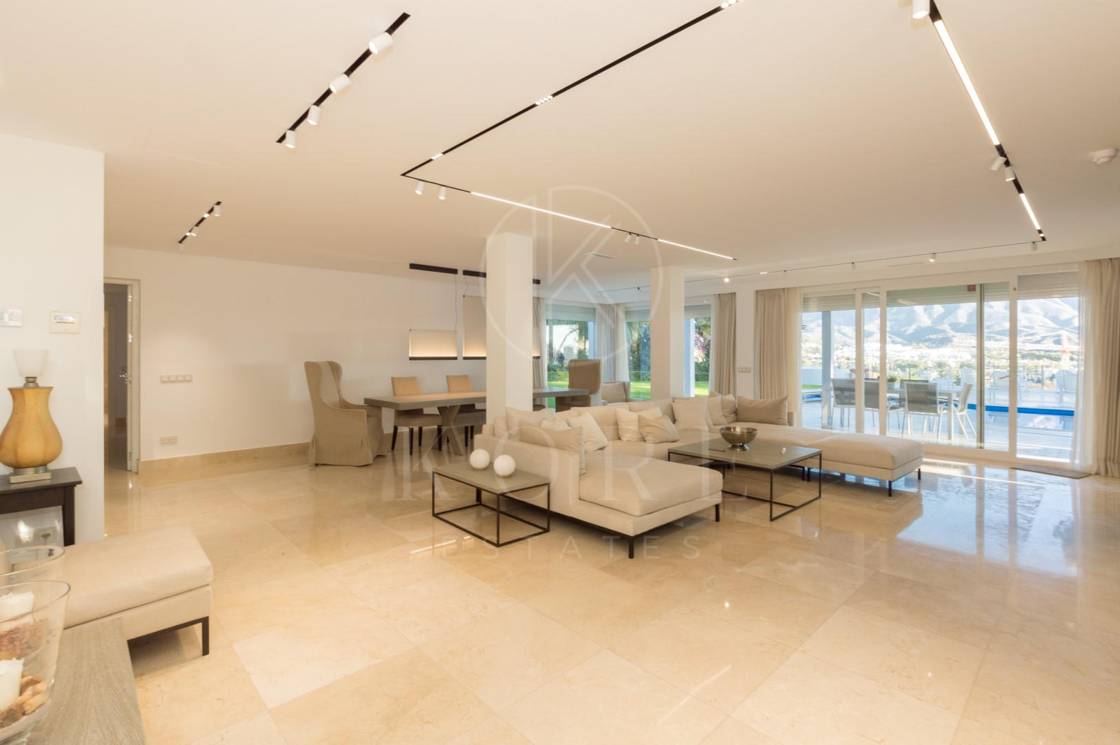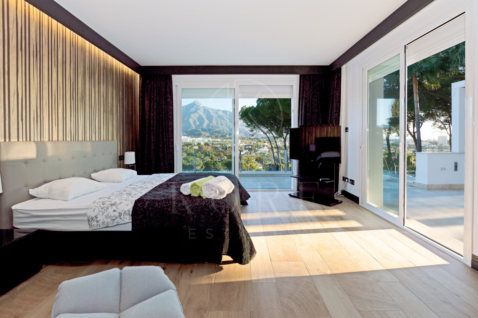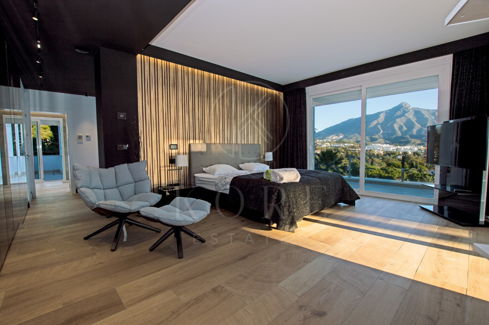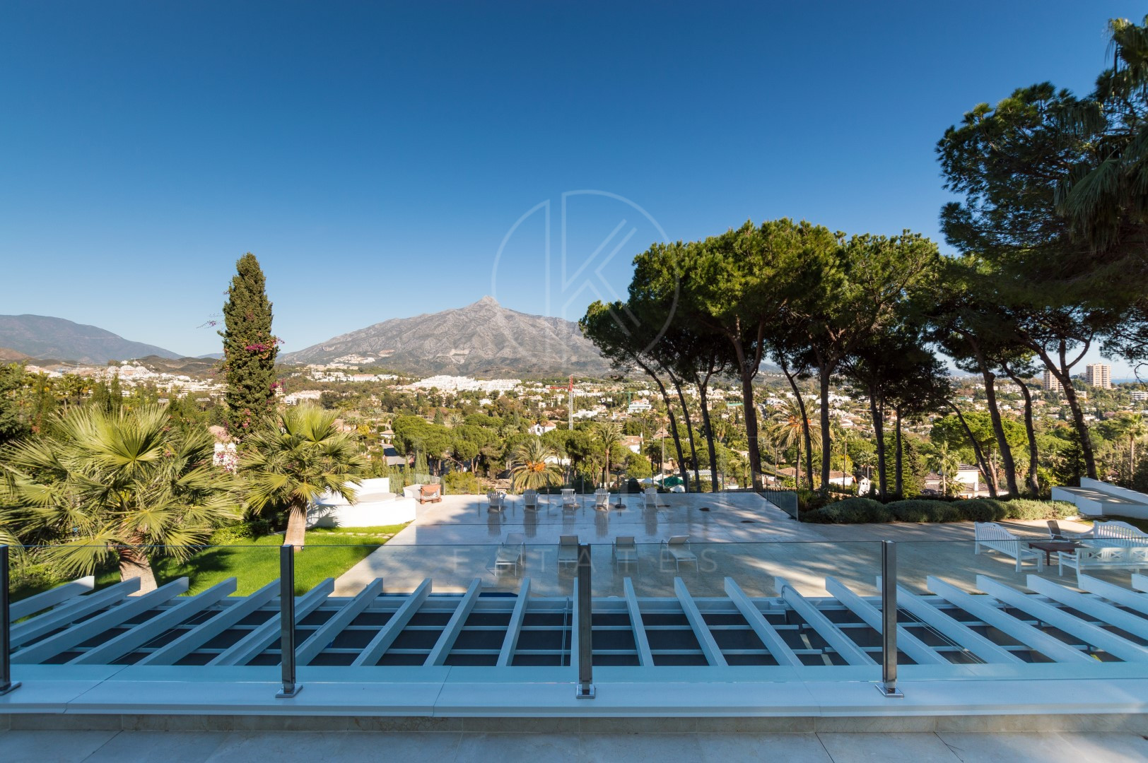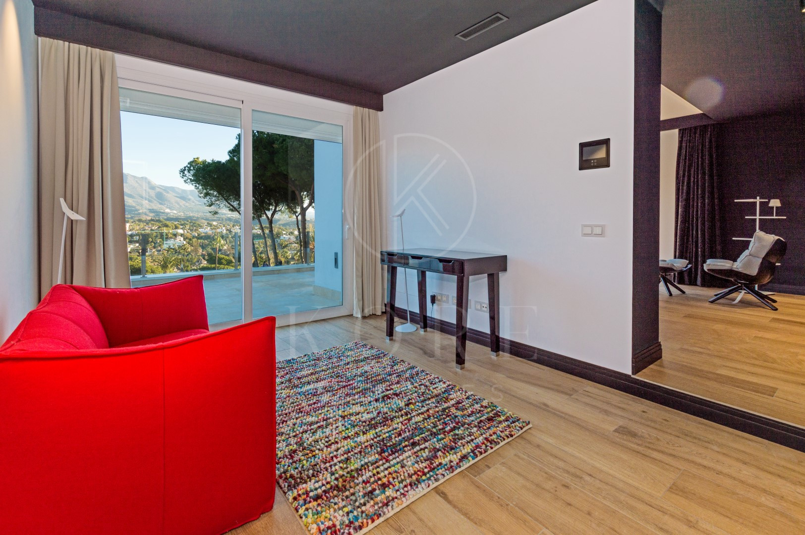 Lujosa villa contemporánea con espectaculares vistas al mar y la montaña para alquiler de corta temporada en Nueva Andalucía, Costa del Sol