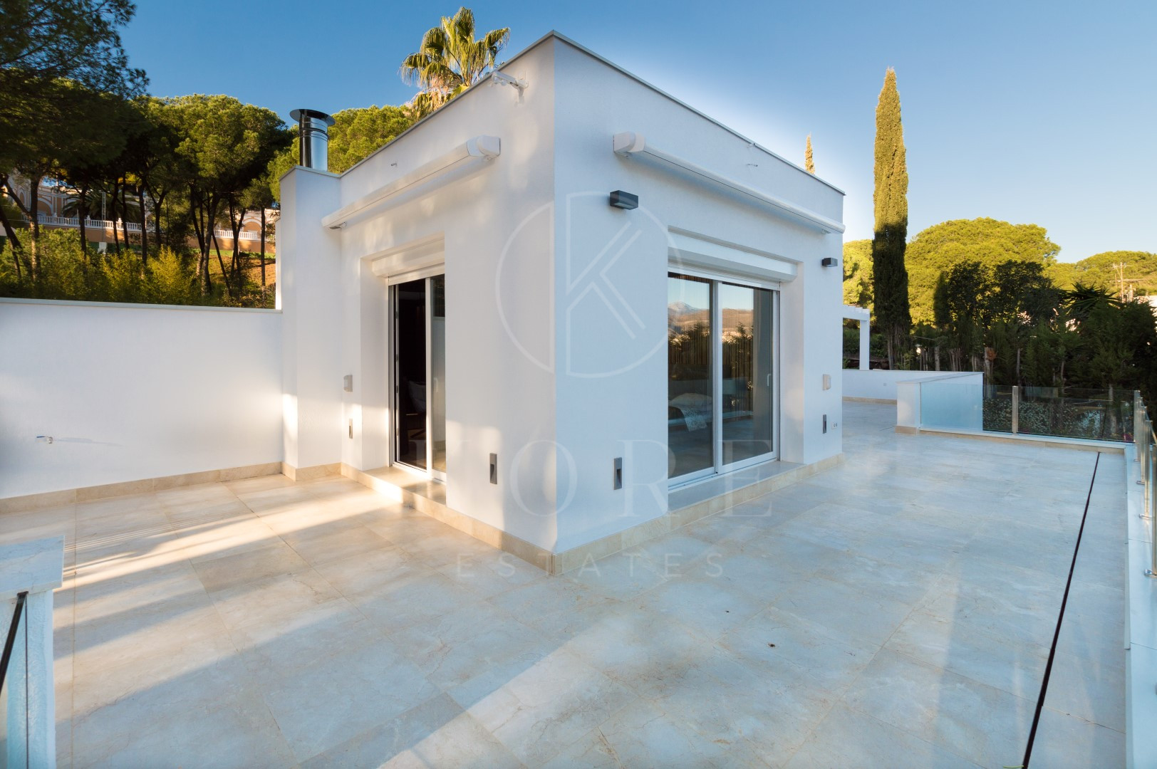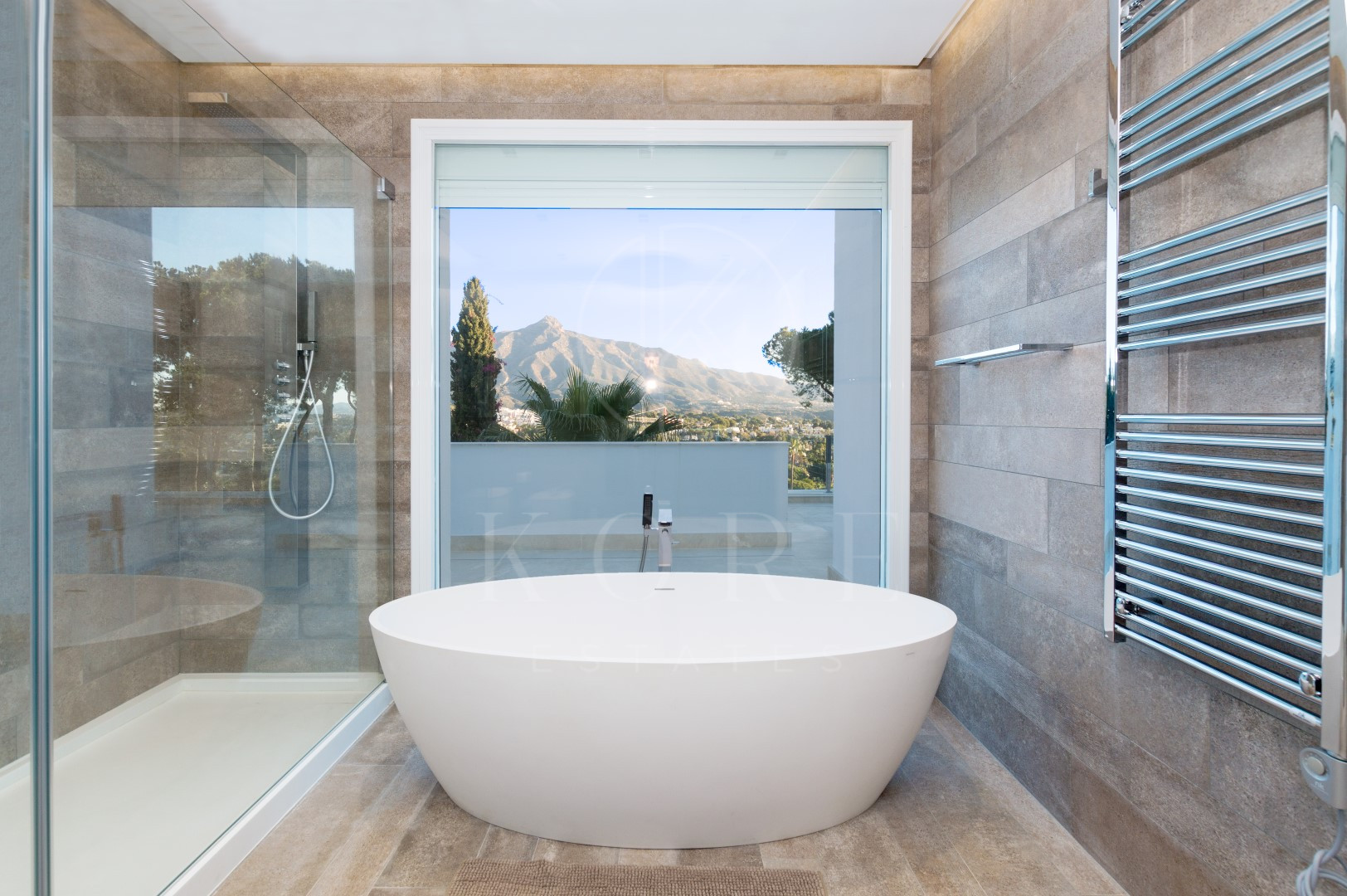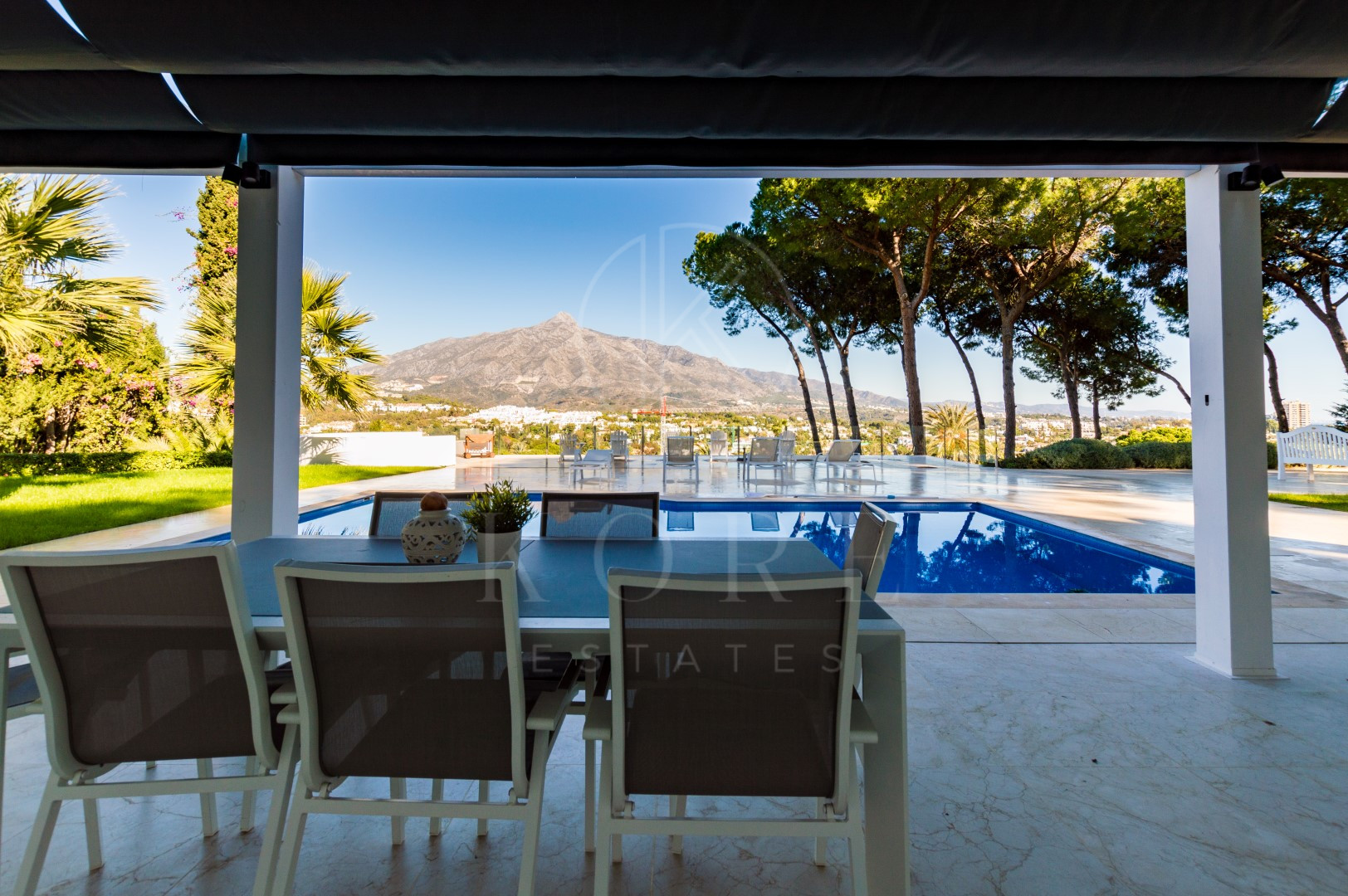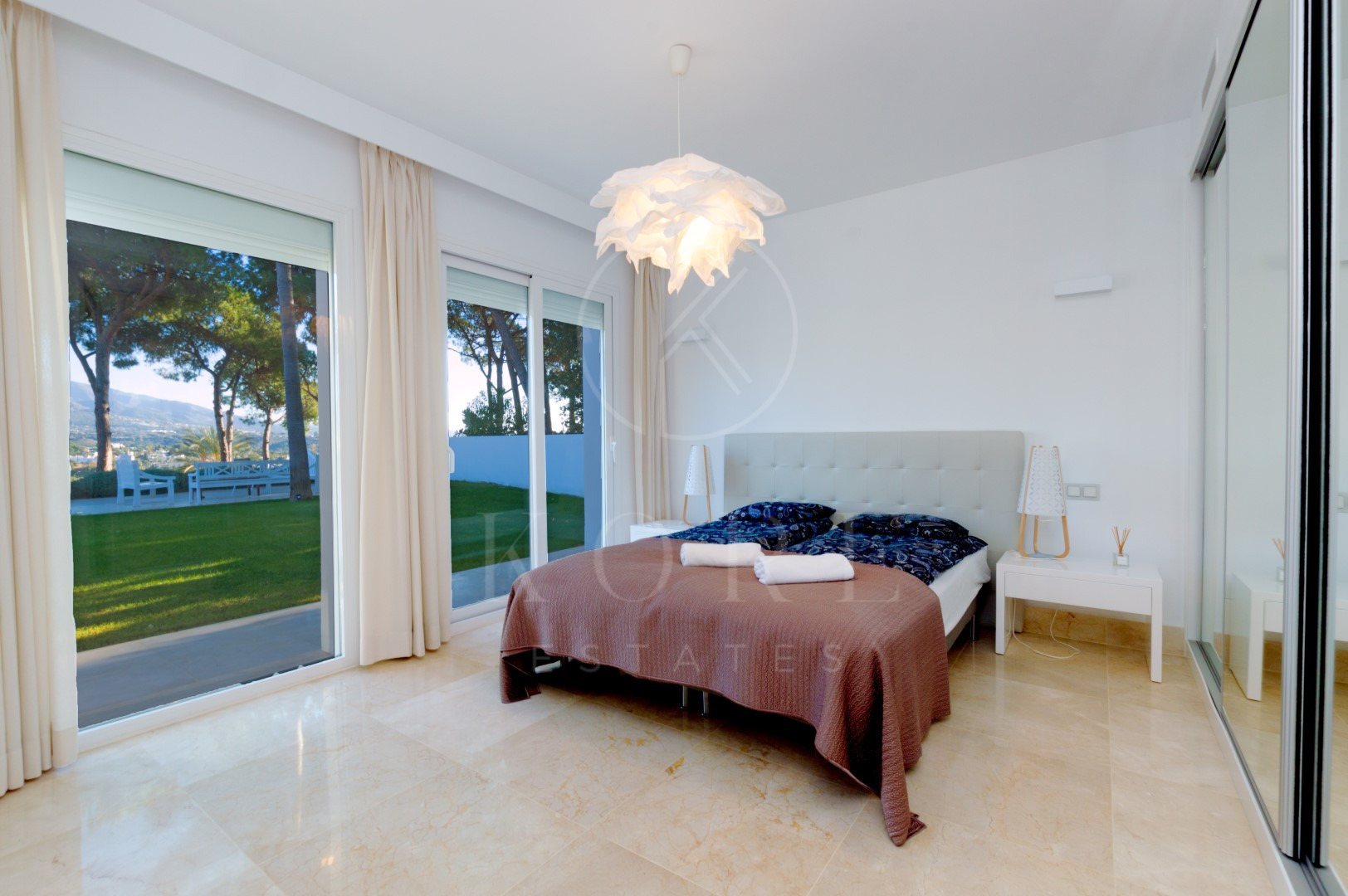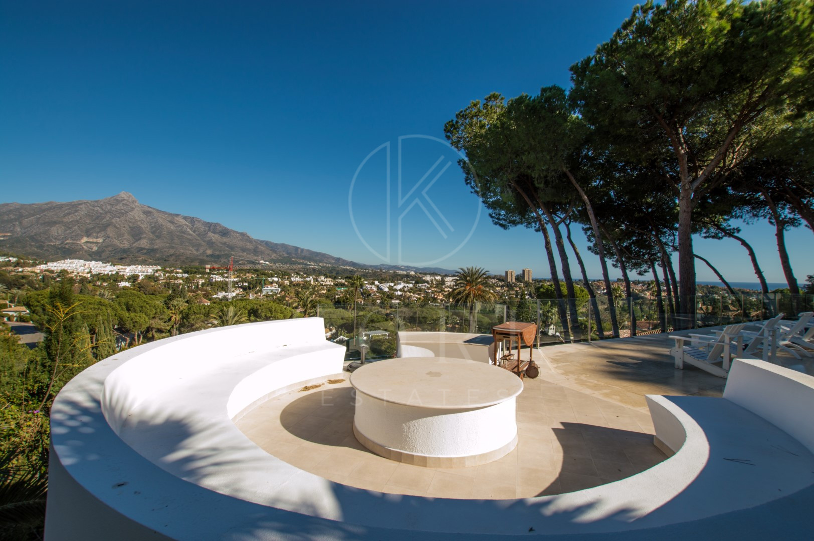 Lujosa villa contemporánea con espectaculares vistas al mar y la montaña para alquiler de corta temporada en Nueva Andalucía, Costa del Sol