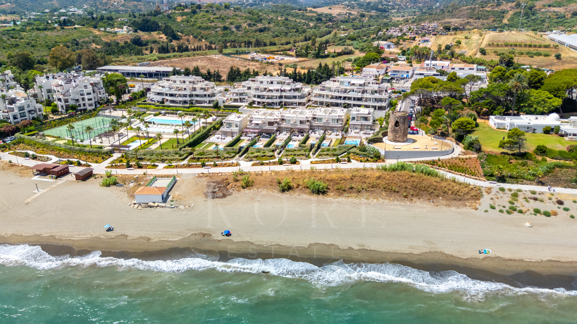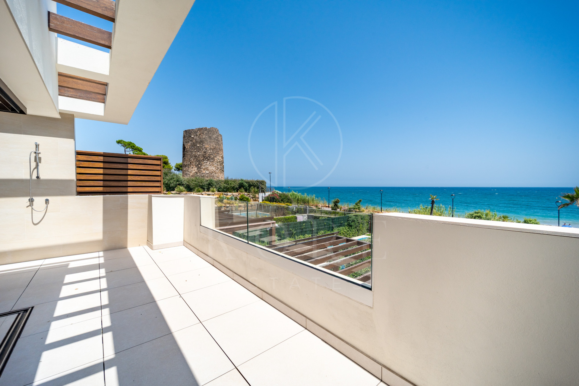 Ubicada en primera línea de la Nueva Milla de Oro, entre Puerto Banús y Estepona, esta excepcional casa adosada ofrece una combinación única de lujo costero, privacidad y servicios de estilo resort. Situada en una urbanización cerrada con jardines paisajísticos, una amplia piscina comunitaria y acceso directo a la playa y al paseo marítimo, es el refugio mediterráneo perfecto.