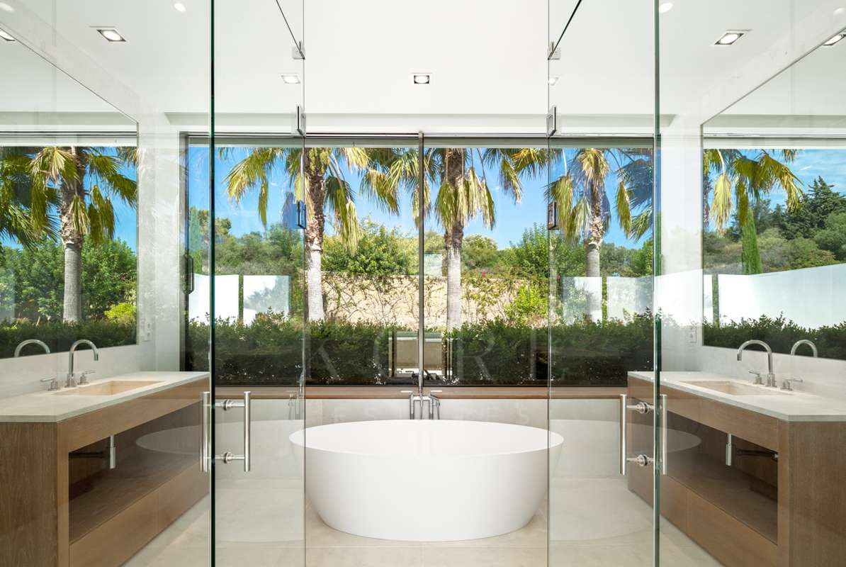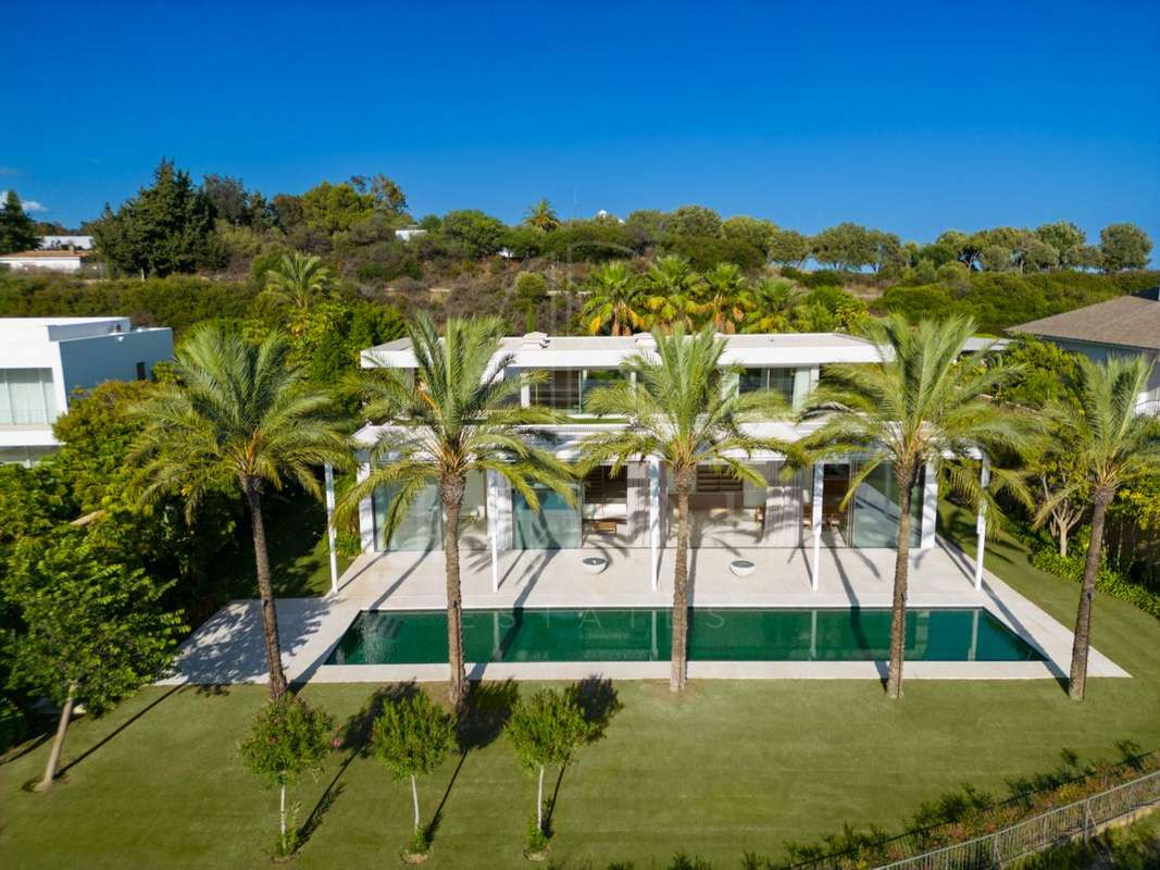 Esta asombrosa villa es la encarnación de la vida de lujo junto al golf. Meticulosamente diseñada por los prestigiosos arquitectos Vicens & Romans, esta opulenta residencia es una maravilla arquitectónica sin parangón en la Costa del Sol.Ubicada en una espaciosa parcela en primera línea de golf, la villa cuenta con amplios ventanales que inundan los interiores con abundante luz natural, revelando impresionantes vistas del campo de golf Finca Cortesín y el mar Mediterráneo desde su elevado punto de vista.Encapsulado por una exuberante vegetación, la privacidad y la tranquilidad están garantizadas. Con generosas terrazas exteriores y fácil acceso al jardín desde todas las zonas, la vida interior/exterior se maximiza para que los residentes aprovechen al máximo el impresionante clima que ofrece este rincón del mundo. La larga piscina, decorada con impresionantes azulejos de color aguamarina, invita a todos a darse un chapuzón, mientras que las frondosas palmeras proporcionan sombra y un estético telón de fondo para la relajación.Los interiores destilan refinamiento, con cada detalle meticulosamente curado utilizando los mejores materiales, lo que garantiza una sensación de lujo sin igual. La impresionante cocina, equipada con electrodomésticos Gaggenau de última generación, es un paraíso culinario que combina a la perfección funcionalidad y estética. Distribuidas en 2 plantas, la mayoría de las habitaciones se encuentran en la planta baja de la propiedad, con impresionantes vistas al campo de golf.
