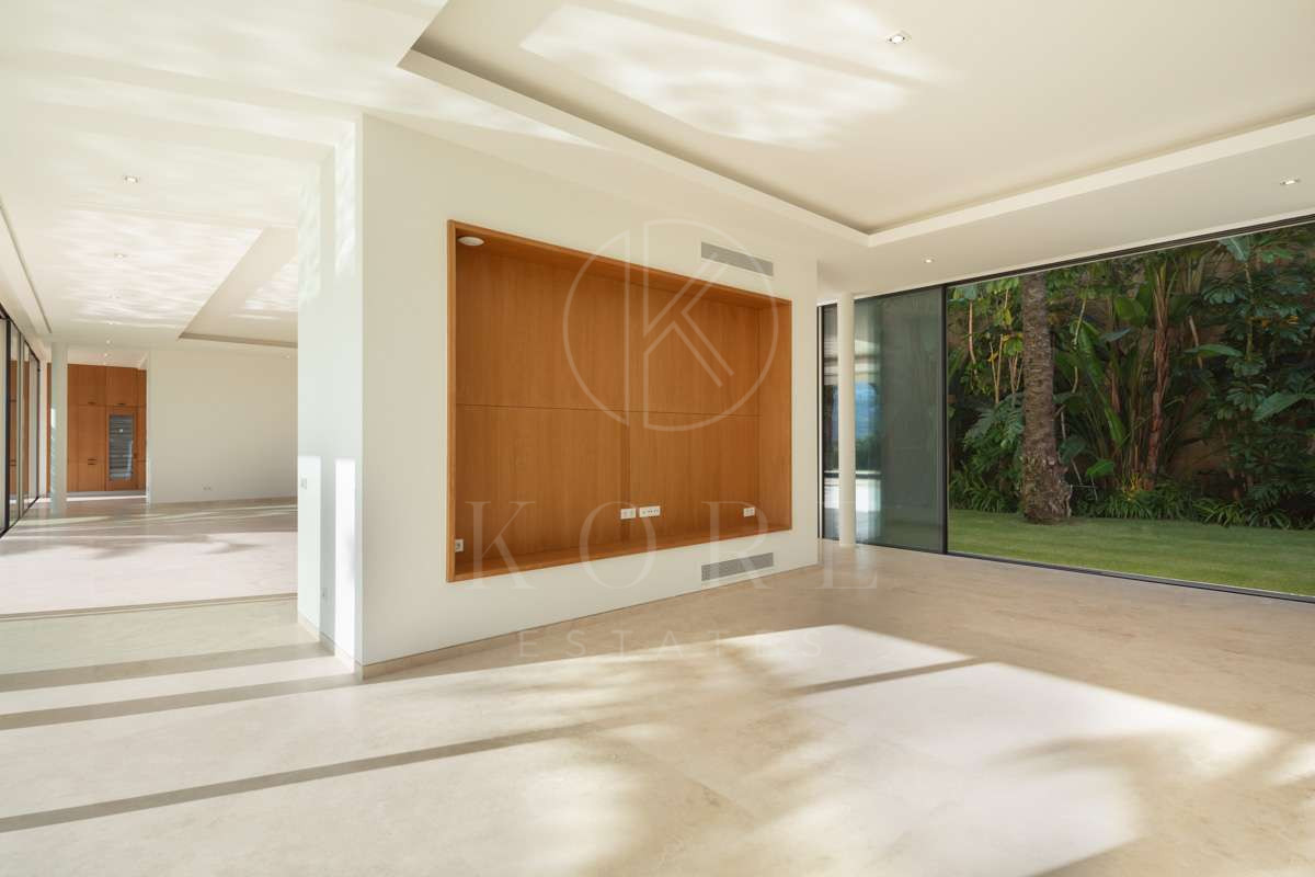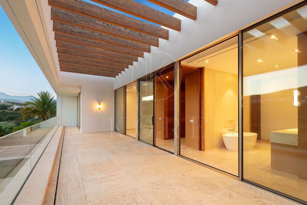 Esta exquisita villa, situada junto al campo de golf Finca Cortesín, ofrece a sus residentes la extraordinaria oportunidad de sumergirse en el lujoso estilo de vida mediterráneo. Situada en el complejo Finca Cortesín, esta residencia ofrece amplias vistas de las exuberantes calles y del mar Mediterráneo.La brillante arquitectura de Miguel Olazábal brilla con luz propia, confiriendo a la casa un encanto moderno que personifica el lujo. Ubicada en una amplia parcela, la villa da la bienvenida a sus huéspedes con una cautivadora entrada adornada con un pintoresco lago y jardines meticulosamente cuidados.En dos niveles, los cuatro dormitorios se encuentran en la planta superior, mientras que un quinto dormitorio adicional está convenientemente situado en la planta baja. En el interior, los tonos neutros suaves y los detalles de madera crean una sensación de elegancia y armonía.En la planta baja se encuentra la cocina, bien equipada con electrodomésticos Gaggenau, y una cómoda sala de estar que conecta sin esfuerzo con el exterior a través de una gran cantidad de puertas correderas de cristal. Los jardines, cuidadosamente diseñados, crean un oasis verde que se funde a la perfección con los espacios interiores, ofreciendo un ambiente único.Una serena piscina complementa el jardín, invitando a su disfrute durante todo el año, mientras que el amplio espacio de las terrazas permite disfrutar de comidas al aire libre y espacios chill-out. Con su privilegiada posición en primera línea, sus impresionantes vistas y su impresionante diseño arquitectónico, esta extraordinaria propiedad personifica el exclusivo estilo de vida de golf de lujo que sólo se encuentra en Finca Cortesín.