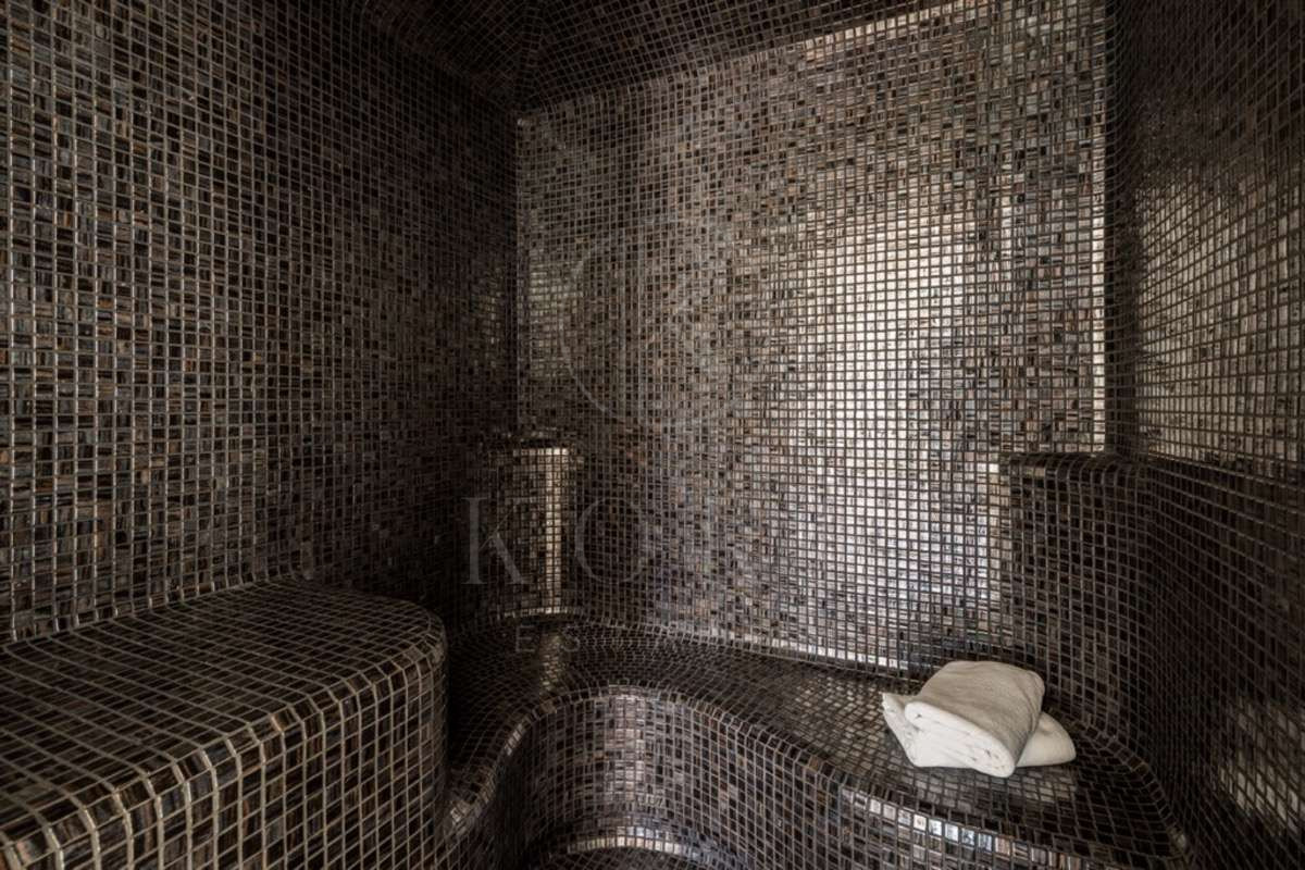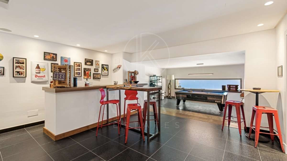 En la parte inferior encontramos: un baño de vapor, un gimnasio, una sala de cine, un aseo, una amplia sala de juegos con barra, una zona de billar y una mesa de póquer. En la misma planta encontramos 2 dormitorios con sus baños en suite y sus terrazas privadas. Por otro lado, una pequeña sala de juegos, un cuarto de lavado y planchado y la sala de máquinas. Más abajo hay un trastero y el garaje para 6 coches.