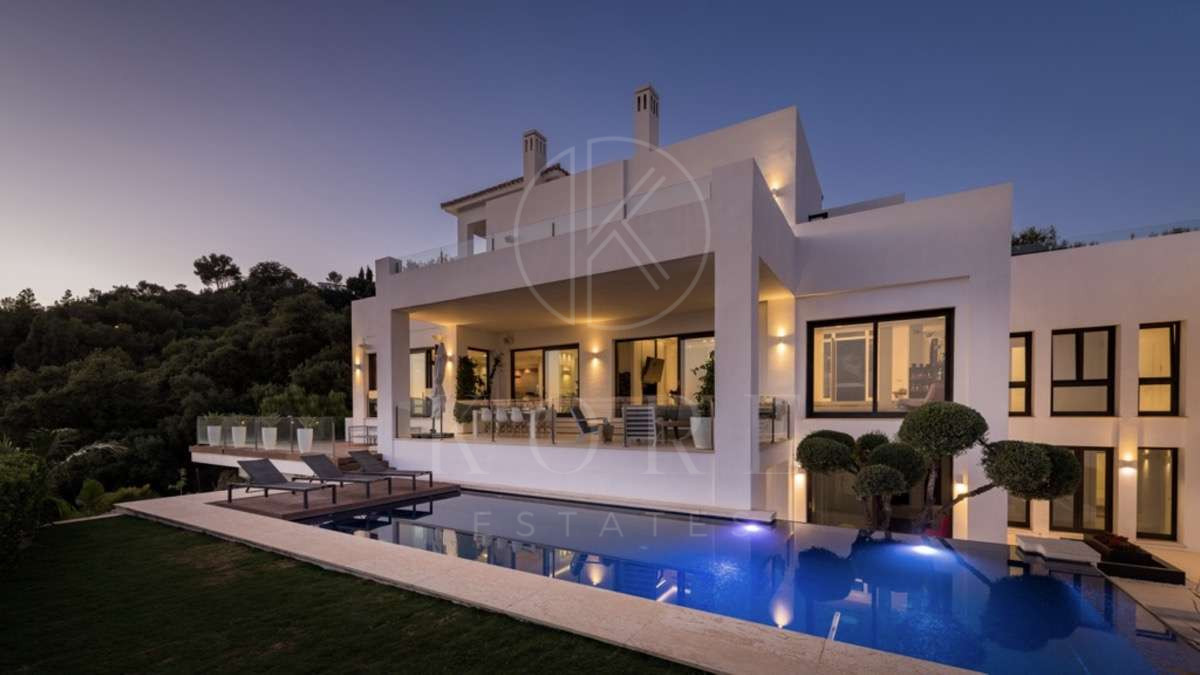 Villa ubicada en una de las urbanizaciones más codiciadas de Marbella por su tranquilidad, vistas al mar y sus amplias zonas verdes de alcornoques.