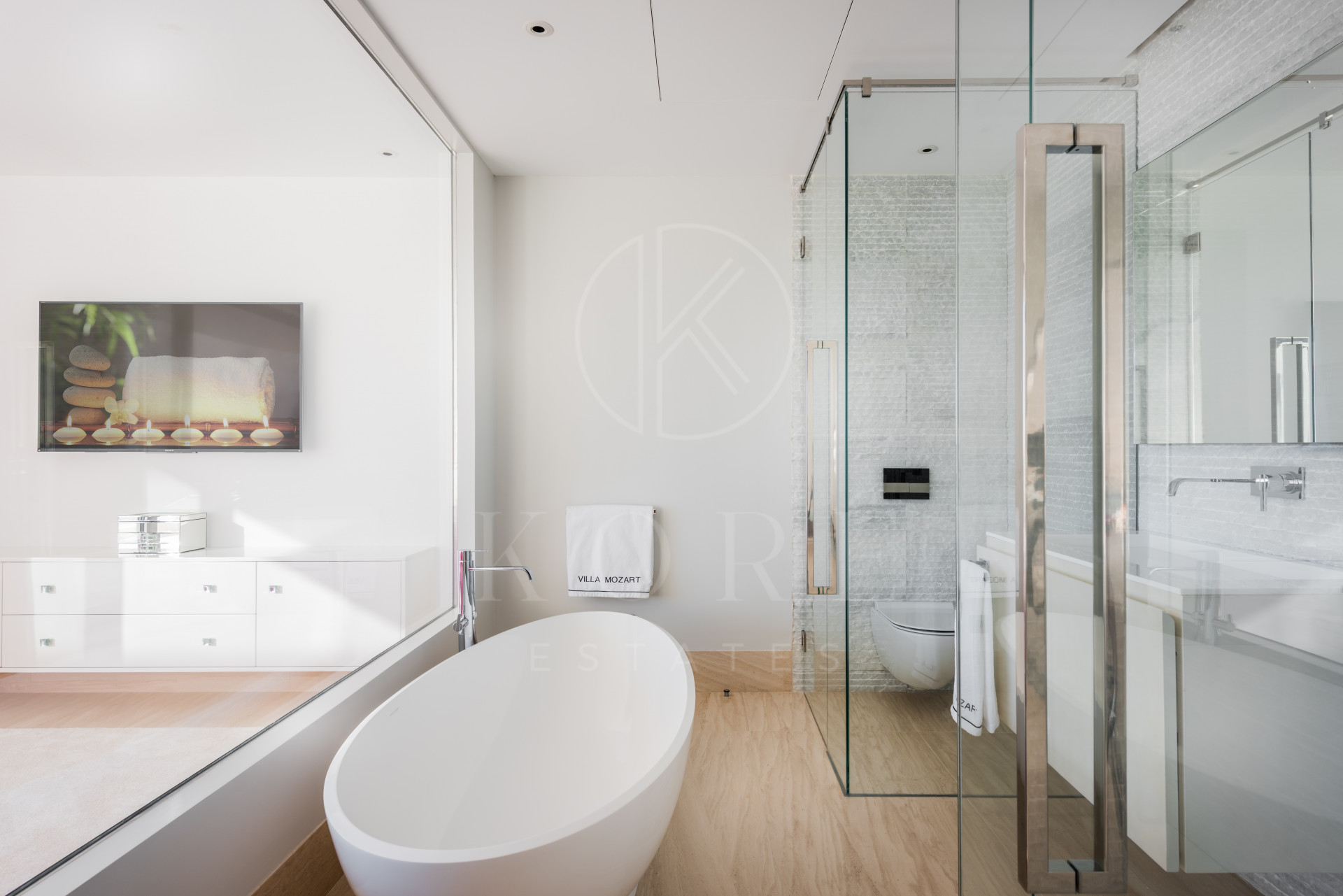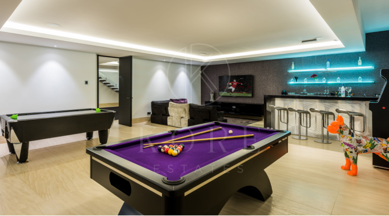 Villa Mozart es una obra maestra moderna situada en la prestigiosa urbanización de Sierra Blanca, Marbella. Con cuatro lujosos niveles, esta villa contemporánea ofrece impresionantes vistas al mar y las montañas de tres plantas y cuenta con una impresionante zona de entretenimiento en la azotea con una piscina de tamaño completo.
