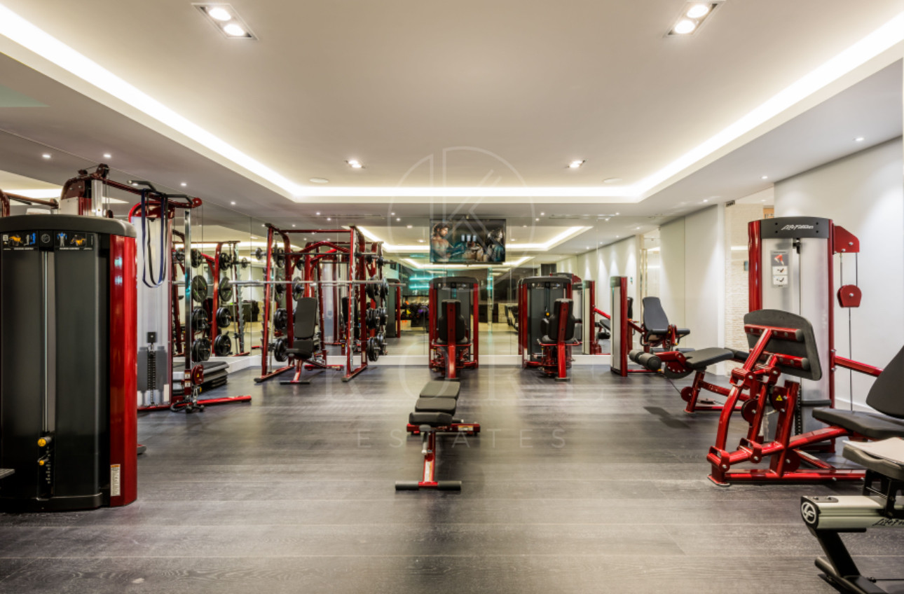 La planta baja cuenta con un impresionante hall de entrada de doble altura, una amplia cocina abierta de 65m2 con un comedor informal, y salas de estar y recepción adyacentes. Dos amplios dormitorios en suite con vestidores y un aseo de invitados completan este nivel.