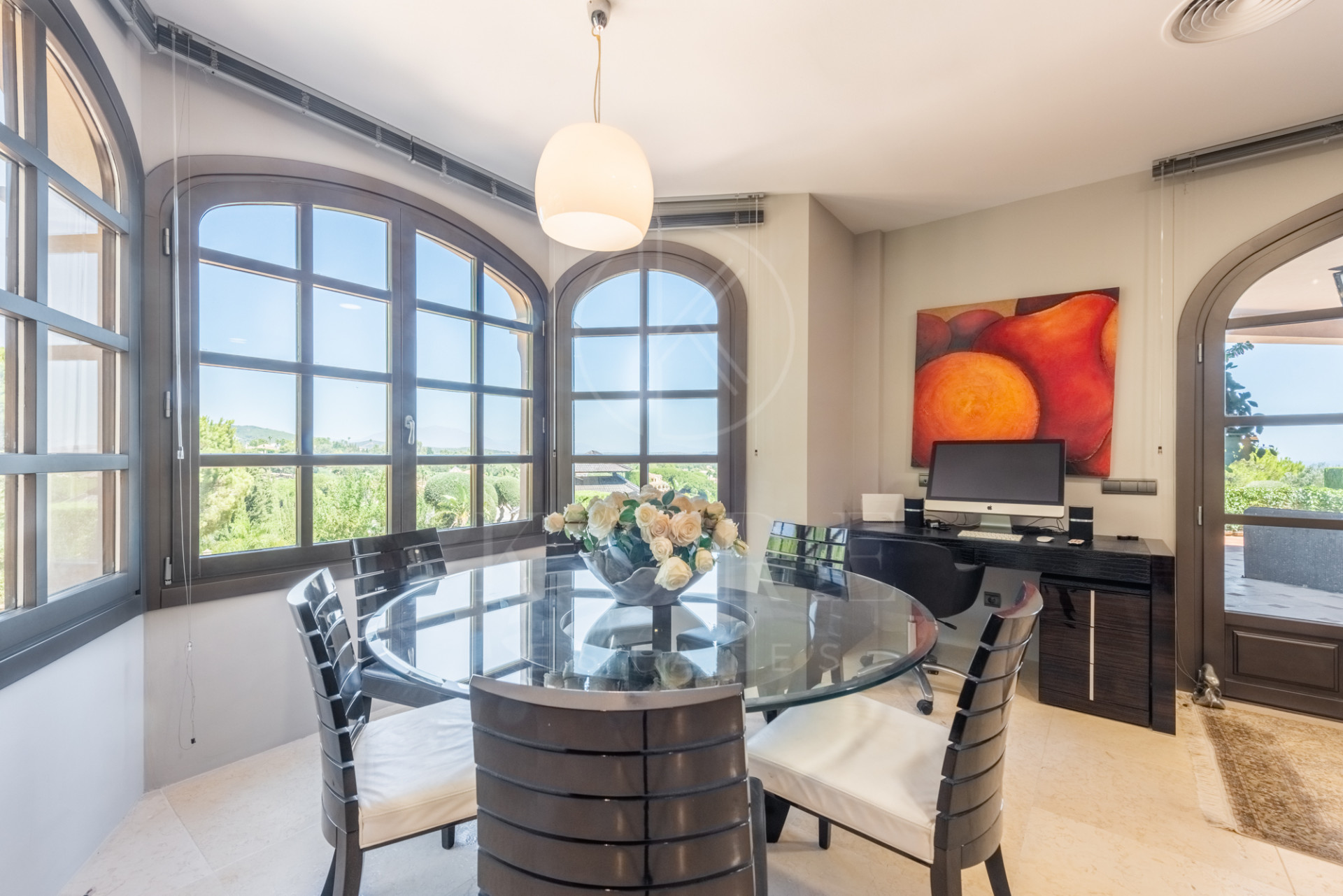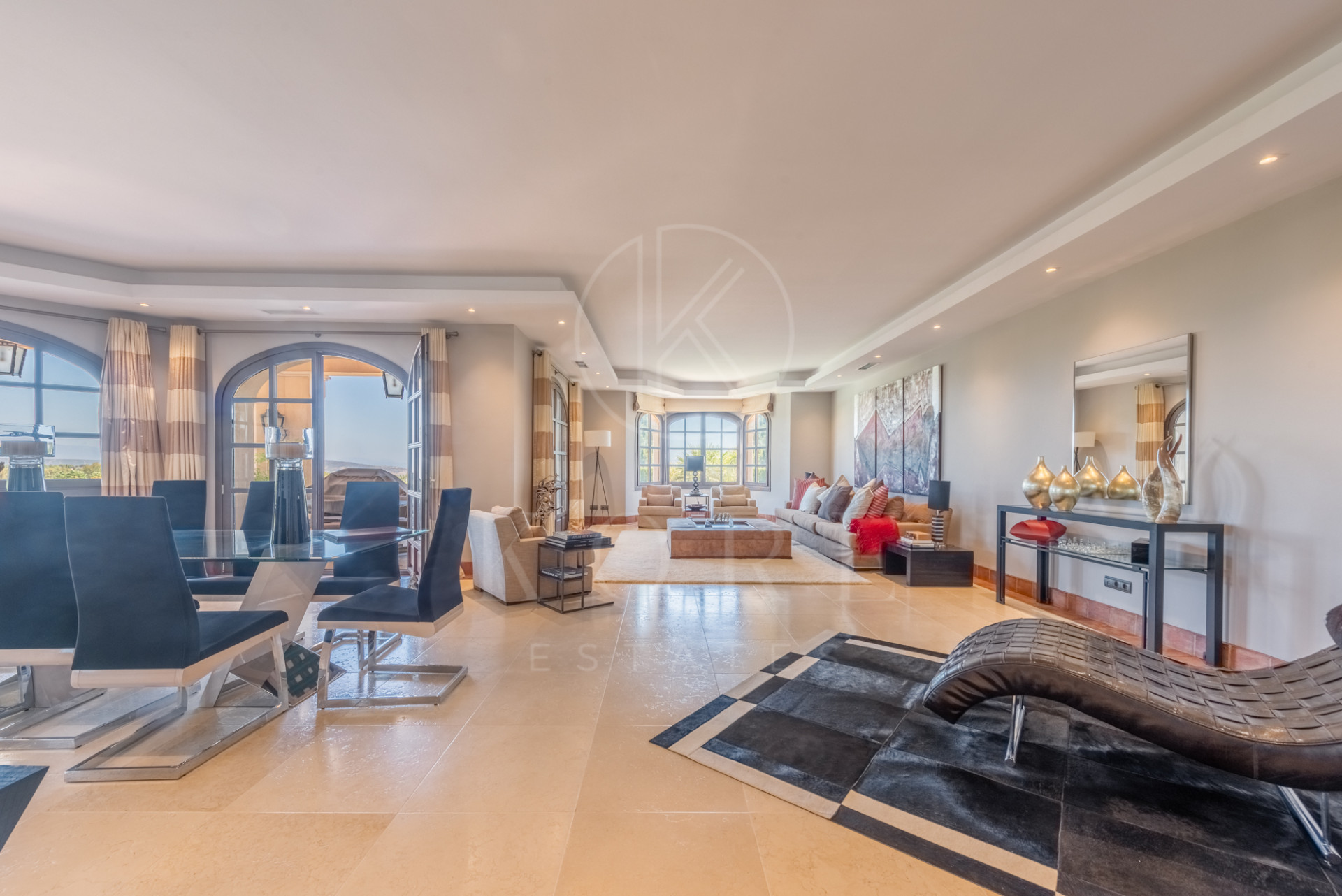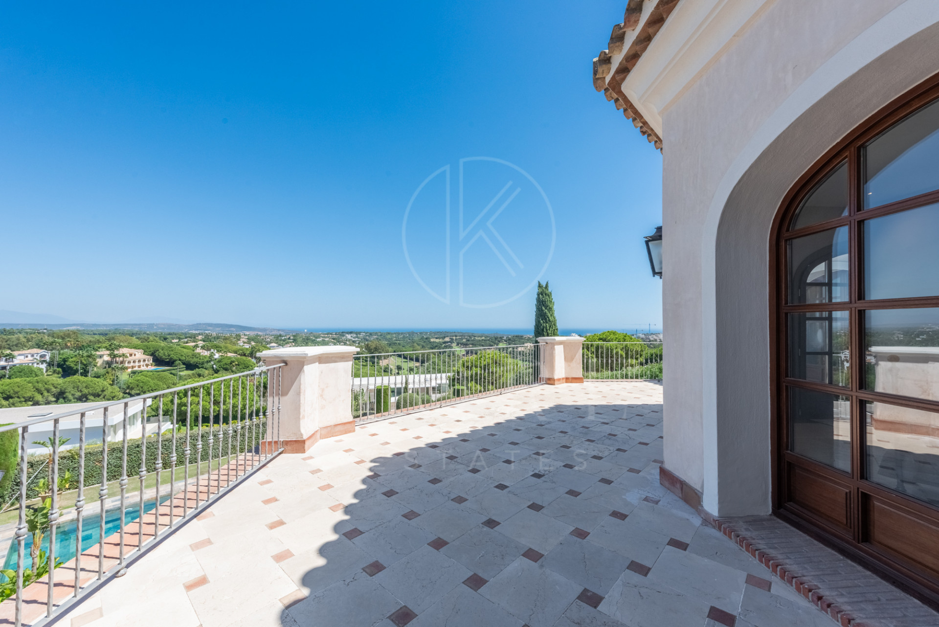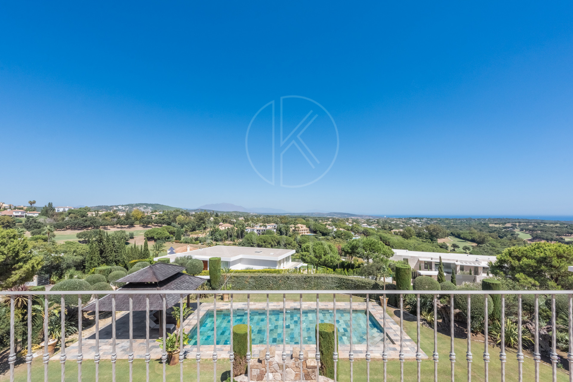 Magnífica villa construída sobre terreno elevado con unas estupendas vistas panorámicas sobre campos de golf, montañas y el mar.