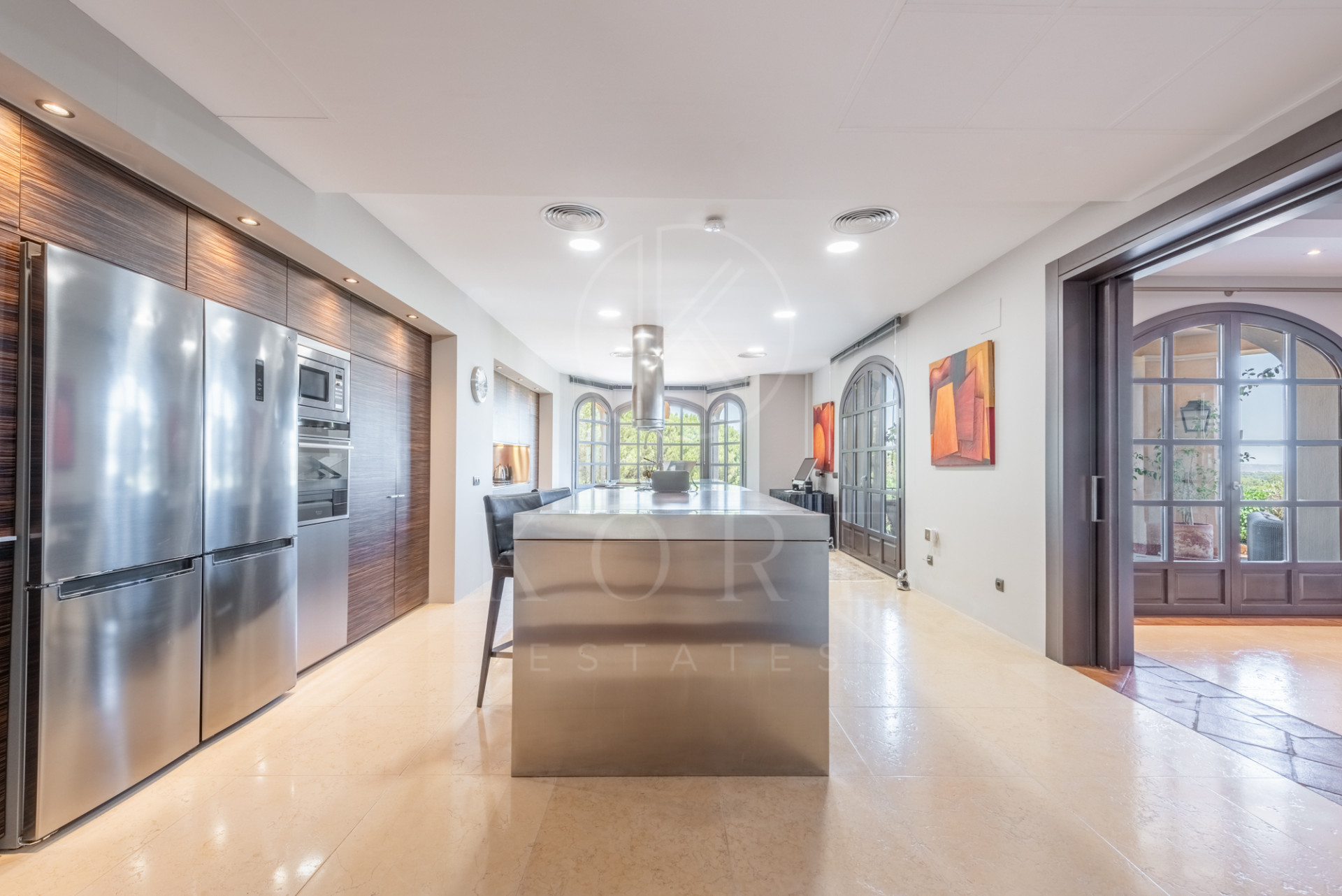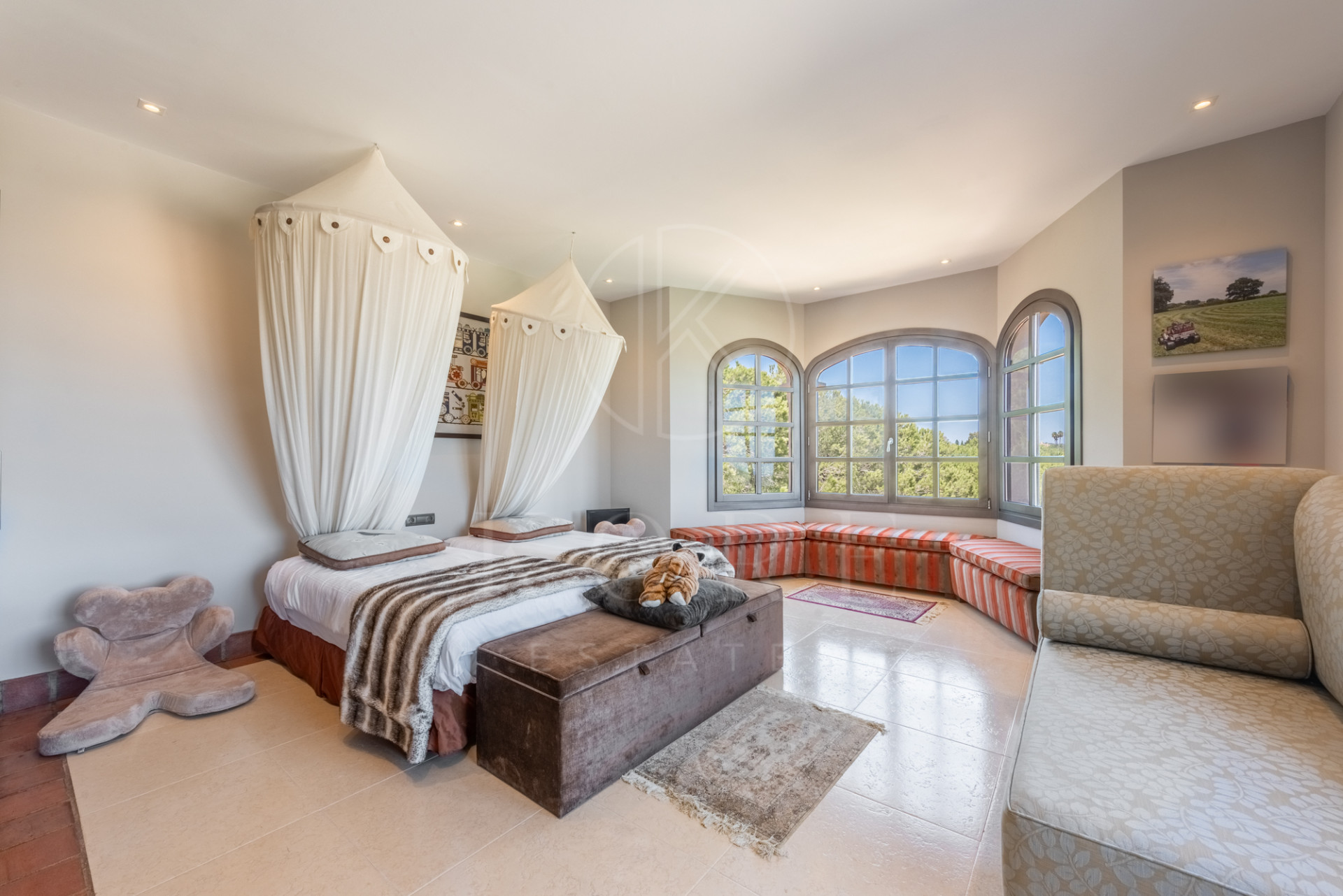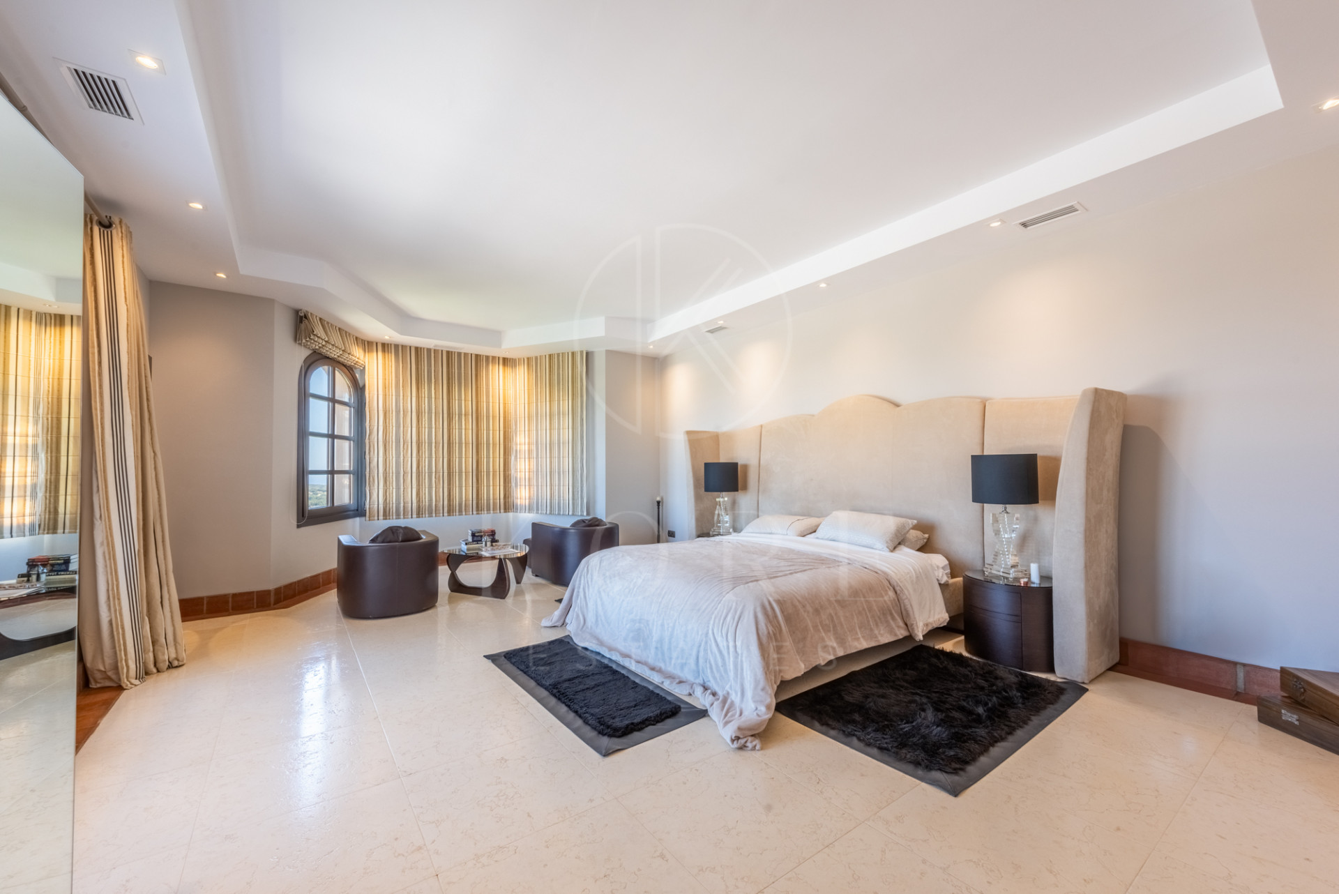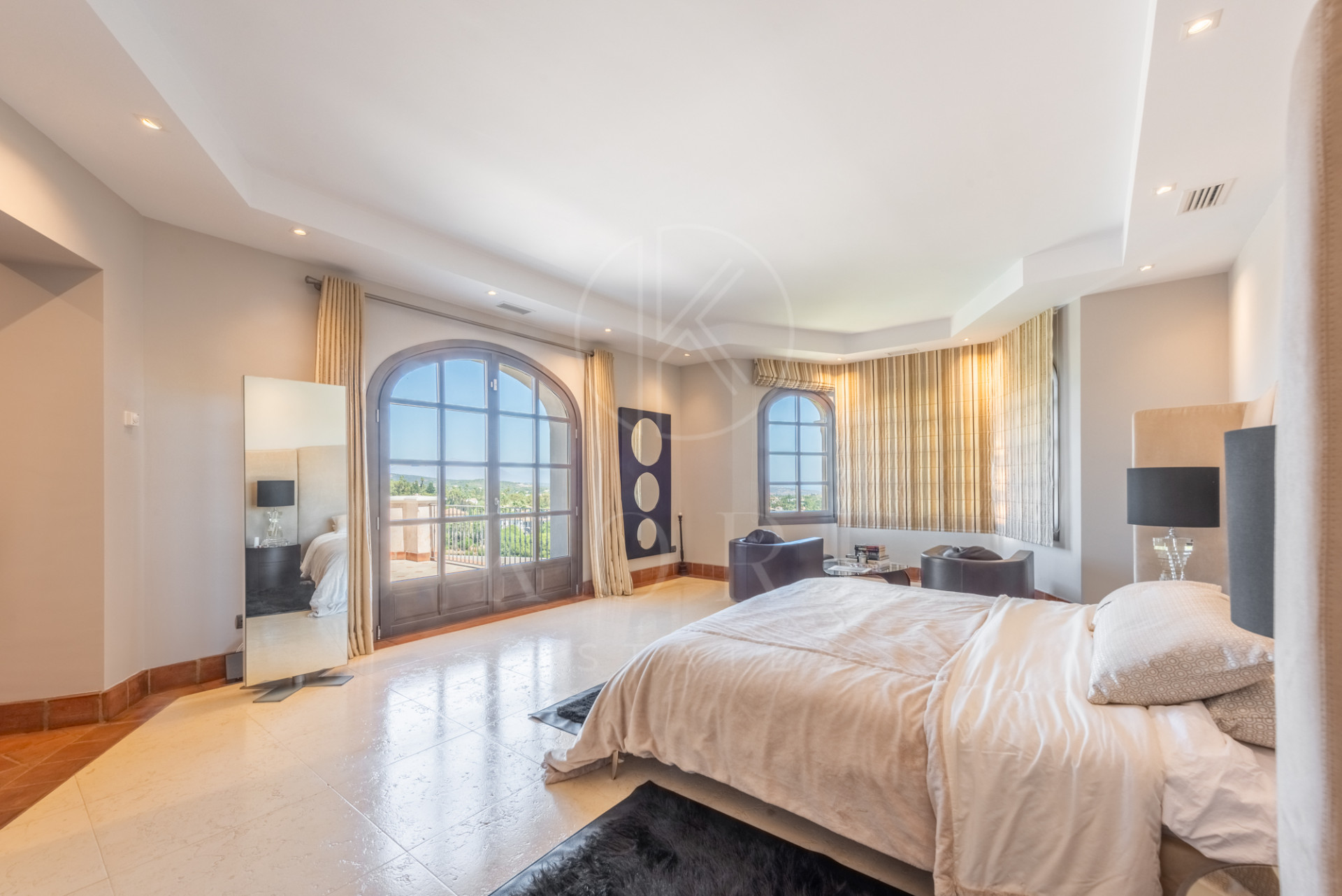 Magnífica villa construida sobre terreno elevado con unas estupendas vistas panorámicas sobre campos de golf, montañas y el mar. Construida en las mejores calidades con carpintería de roble, suelos de mármol envejecido, ventanas de madera de doble acristalamiento, suelo radiante en la planta baja y 1ª y calefacción centralizada. La casa consta de una amplia entrada que lleva a un dormitorio con baño adjunto, amplia y ultra moderna cocina, salón-comedor que da a una amplia terraza cubierta con peldaños que bajan a la piscina y al jardín. Sala de estudio/televisión con terraza. La primera planta consta de una galería que da a la suite principal con vestidor, dormitorio de invitados y terraza, 2 dormitorios dobles y un baño. El sótano cuenta con un baño, una bodega, gimnasio y sala de juegos.
