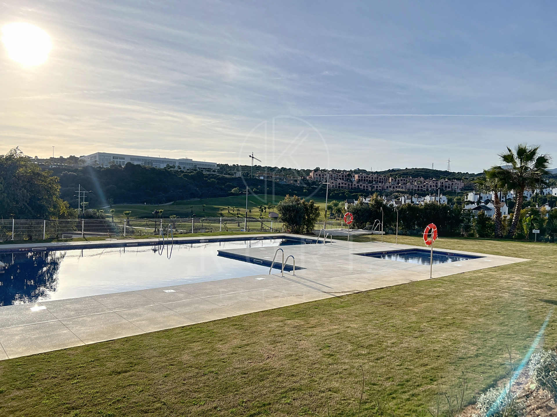 Este ático parece ser una verdadera joya, que no solo ofrece un espacio de vida moderno y amplio, sino también vistas impresionantes de la naturaleza, el campo de golf y el mar. Su distribución, con estancias luminosas y espacios exteriores como la gran terraza y el solárium, lo convierten en un lugar ideal para aquellos que buscan confort, tranquilidad y proximidad a los servicios. Las instalaciones de calidad, como la cocina completamente equipada y las zonas comunes (gimnasio, piscina exterior y jardines), añaden un toque de lujo.