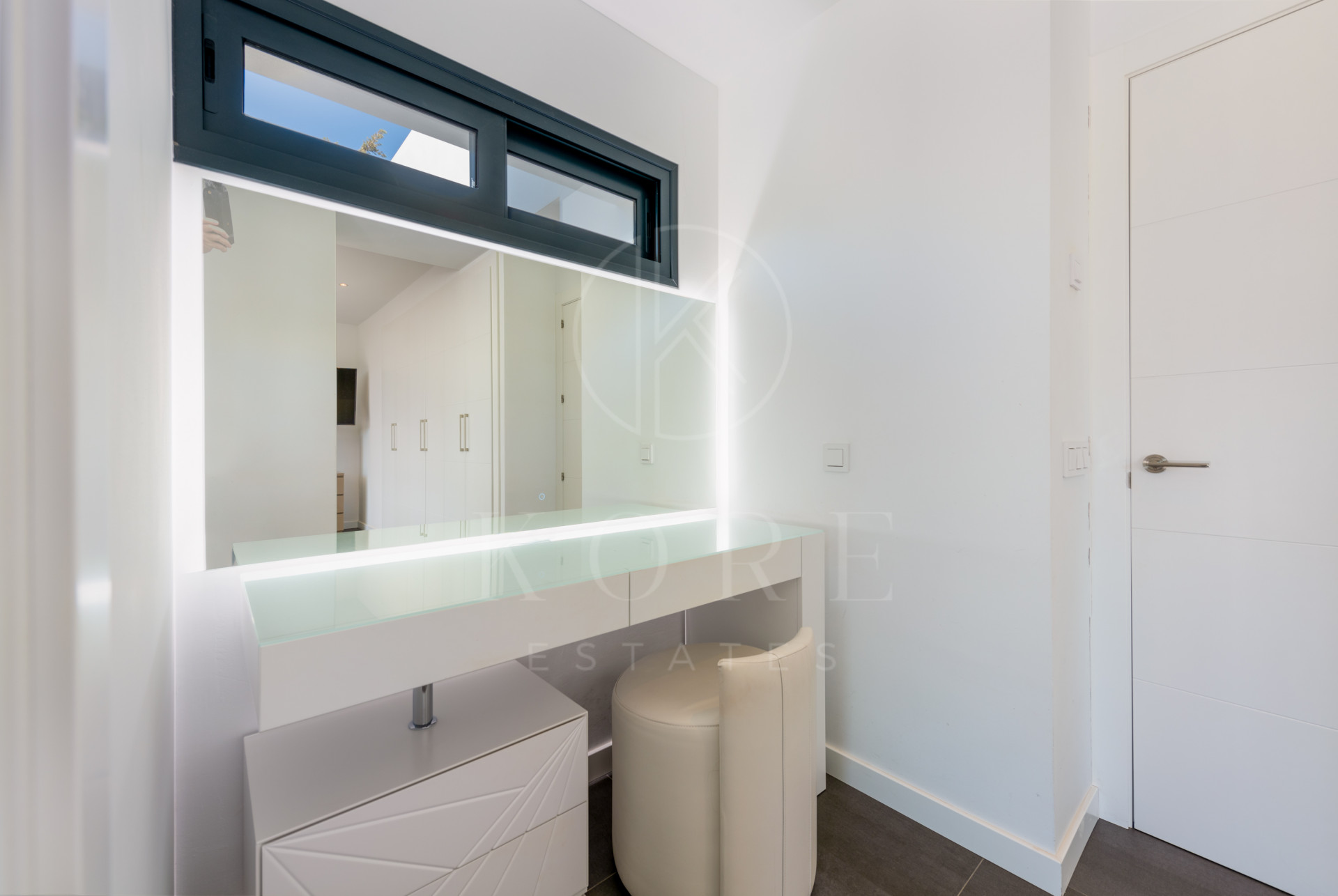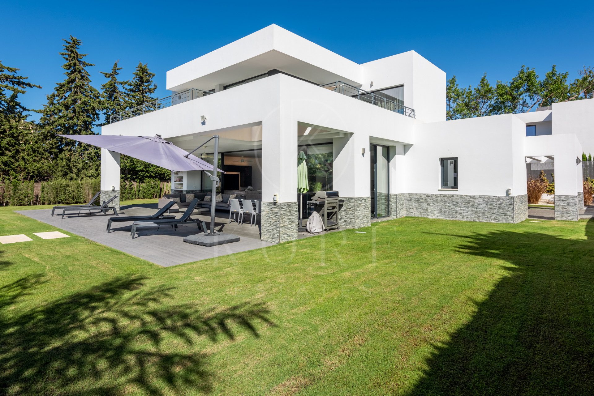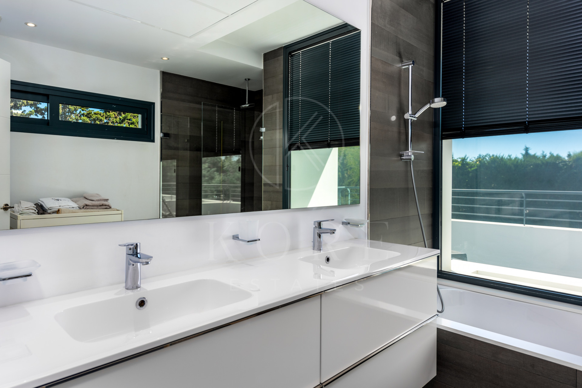 Esta villa independiente contemporánea de cuatro dormitorios, ubicada en Atalaya Isdabe, es una combinación perfecta de confort y lujo. Su ubicación privilegiada ofrece la comodidad de estar a poca distancia de supermercados, tiendas, cafeterías y restaurantes, así como fácil acceso al transporte público, todo ello a sólo cinco minutos a pie de la playa.
