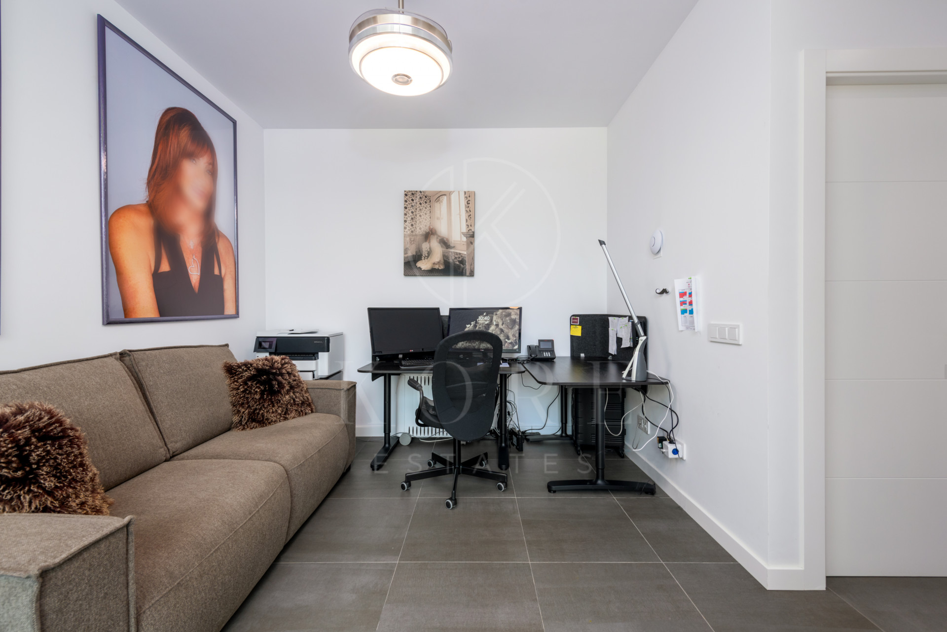 El primer piso alberga tres dormitorios adicionales, cada uno con su propio baño en suite. Particularmente especial es el dormitorio principal, situado en el centro de la casa y con dos amplias terrazas orientadas al sur y al este, lo que permite disfrutar de impresionantes amaneceres y atardeceres.