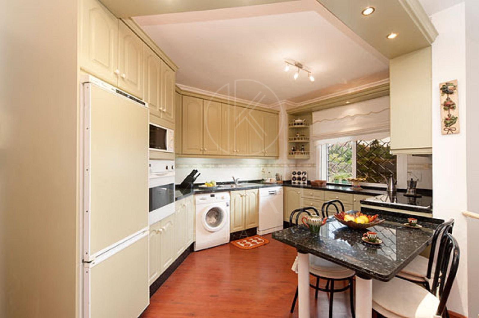 Situado en una hermosa parcela ajardinada, la villa cuenta con un exuberante jardín privado, una piscina espumosa, un jardín vegetal separado y una zona de barbacoa dedicada—ideal para el entretenimiento al aire libre. La elegante entrada circular, adornada con toques decorativos, crea una gran primera impresión.