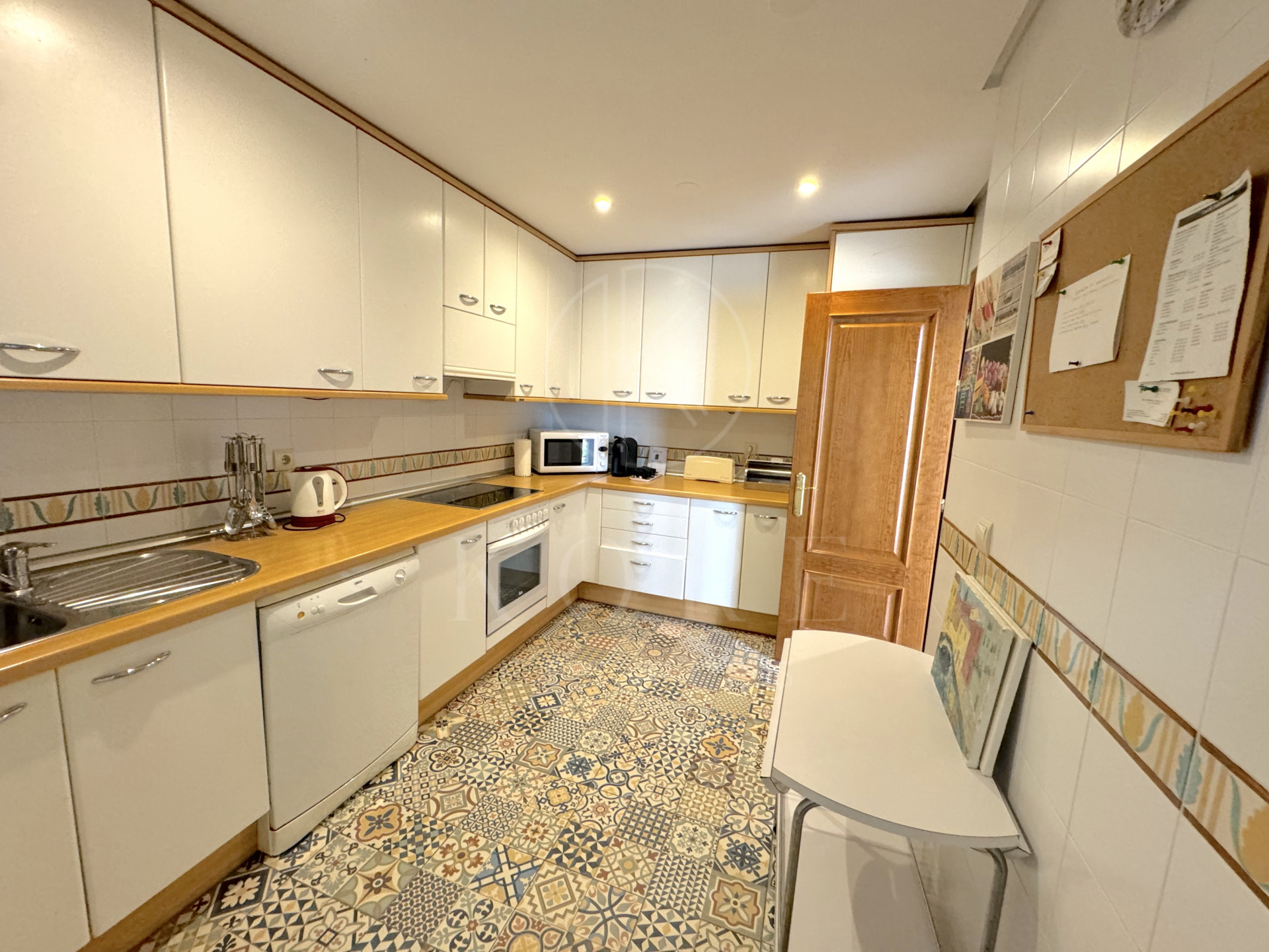 La cocina independiente es una auténtica joya: totalmente equipada con electrodomésticos de última tecnología de primeras marcas, incluyendo una nevera, horno, microondas y lavavajillas integrados, además de un espacio adicional para un lavadero grande, ideal para el almacenamiento y uso diario. La distribución de la cocina está pensada para facilitar tanto el día a día como el entretenimiento de grandes cenas con amigos o familiares.