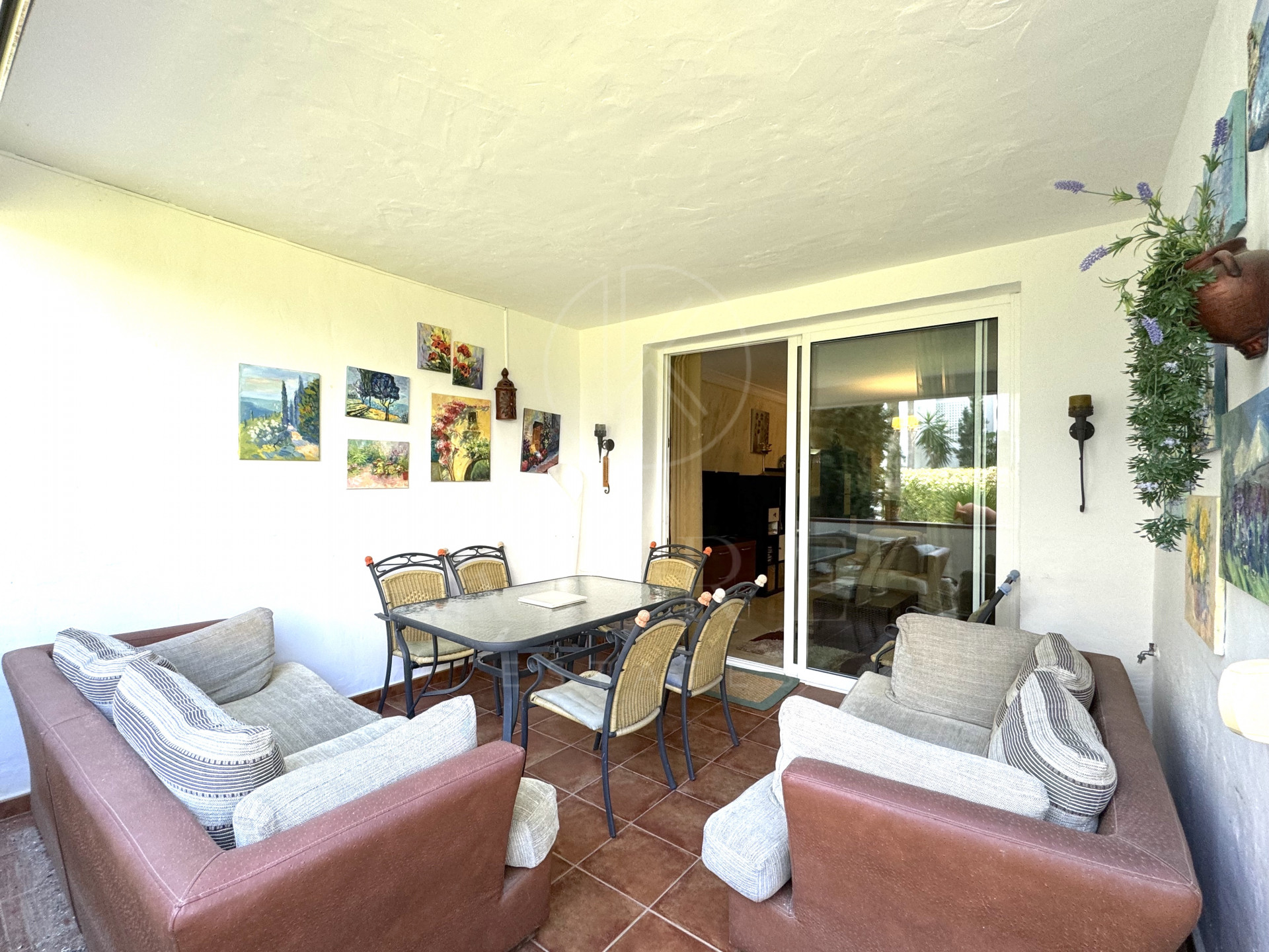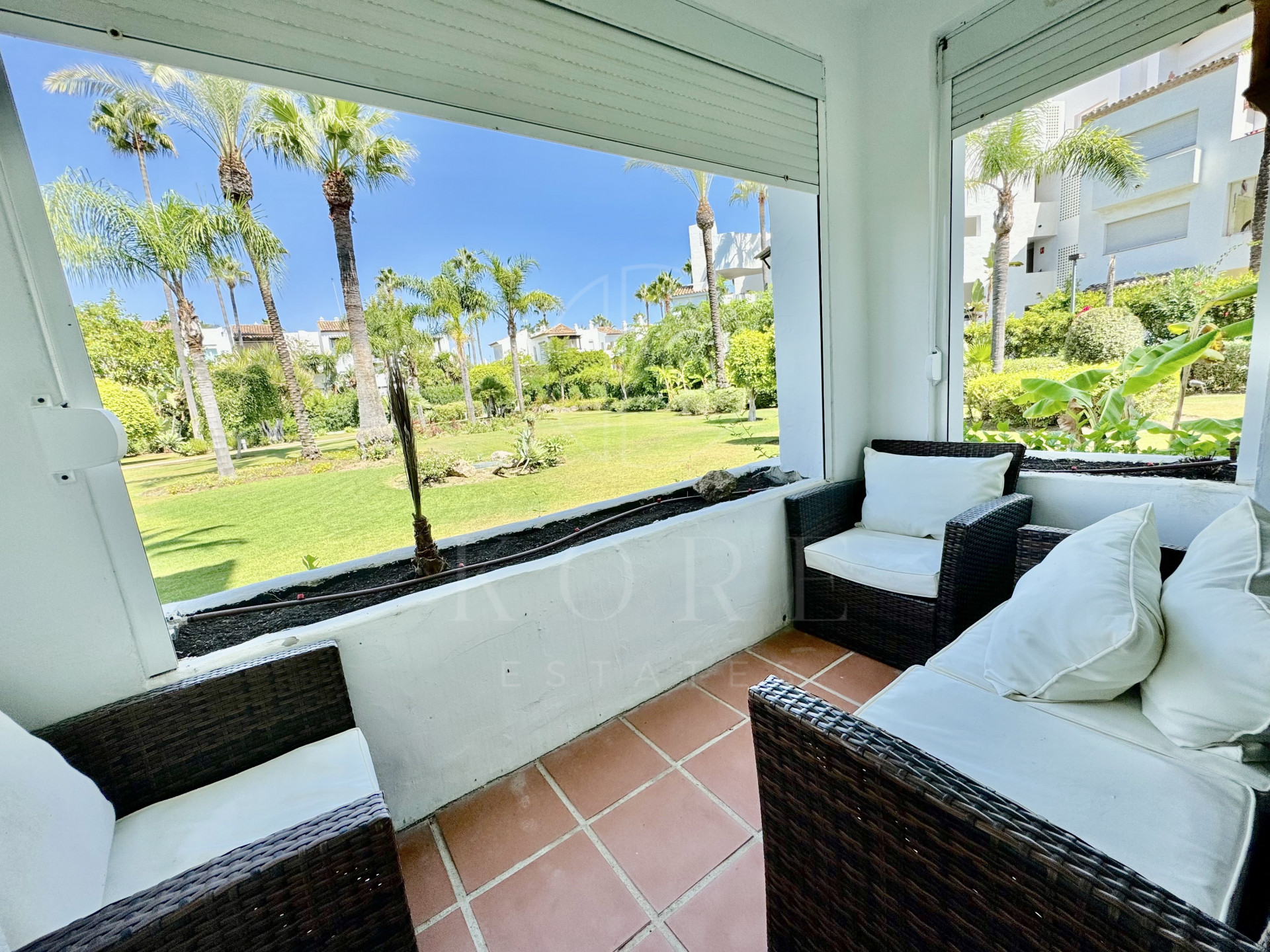 La planta baja en la que se encuentra el piso proporciona la ventaja de un acceso directo a los exuberantes jardines de la urbanización, donde la flora autóctona y las plantas ornamentales crean un ambiente de paz y serenidad. Además, se ha incorporado aire acondicionado con sistema frío/calor, asegurando una temperatura ideal en todo momento del año.