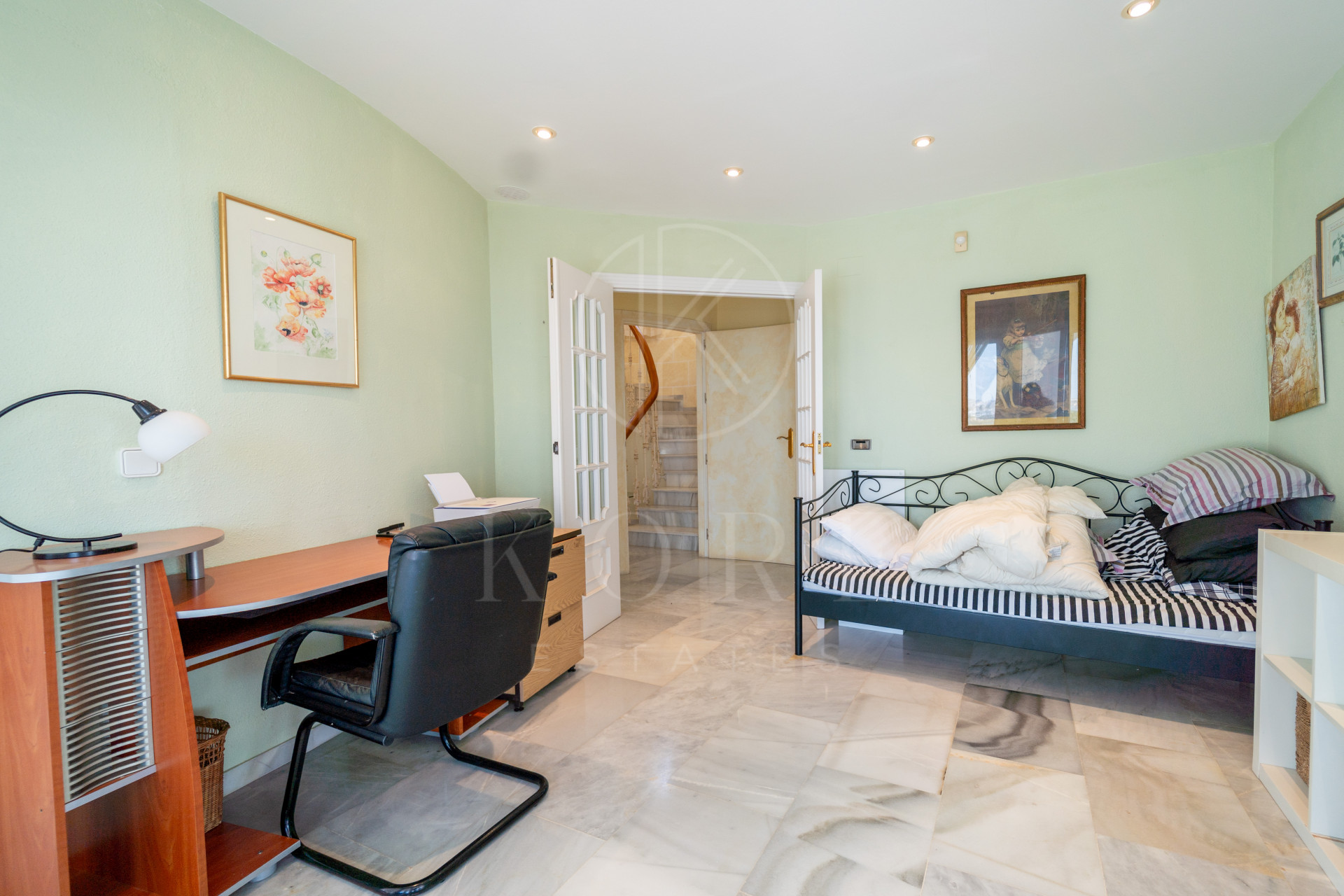En la planta superior hay una amplia habitación, perfecta como salón o sala de juegos. Esta habitación también cuenta con una terraza privada con vistas espectaculares.
