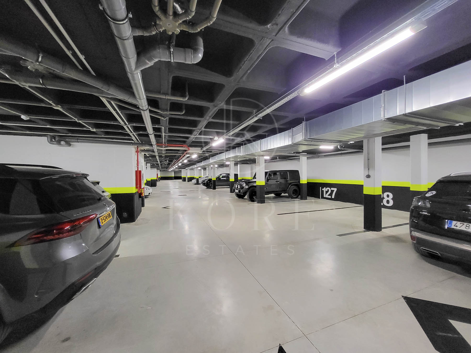 Dos amplias plazas de aparcamiento, una de ellas con estación de carga para coches eléctricos/híbridos y trastero.