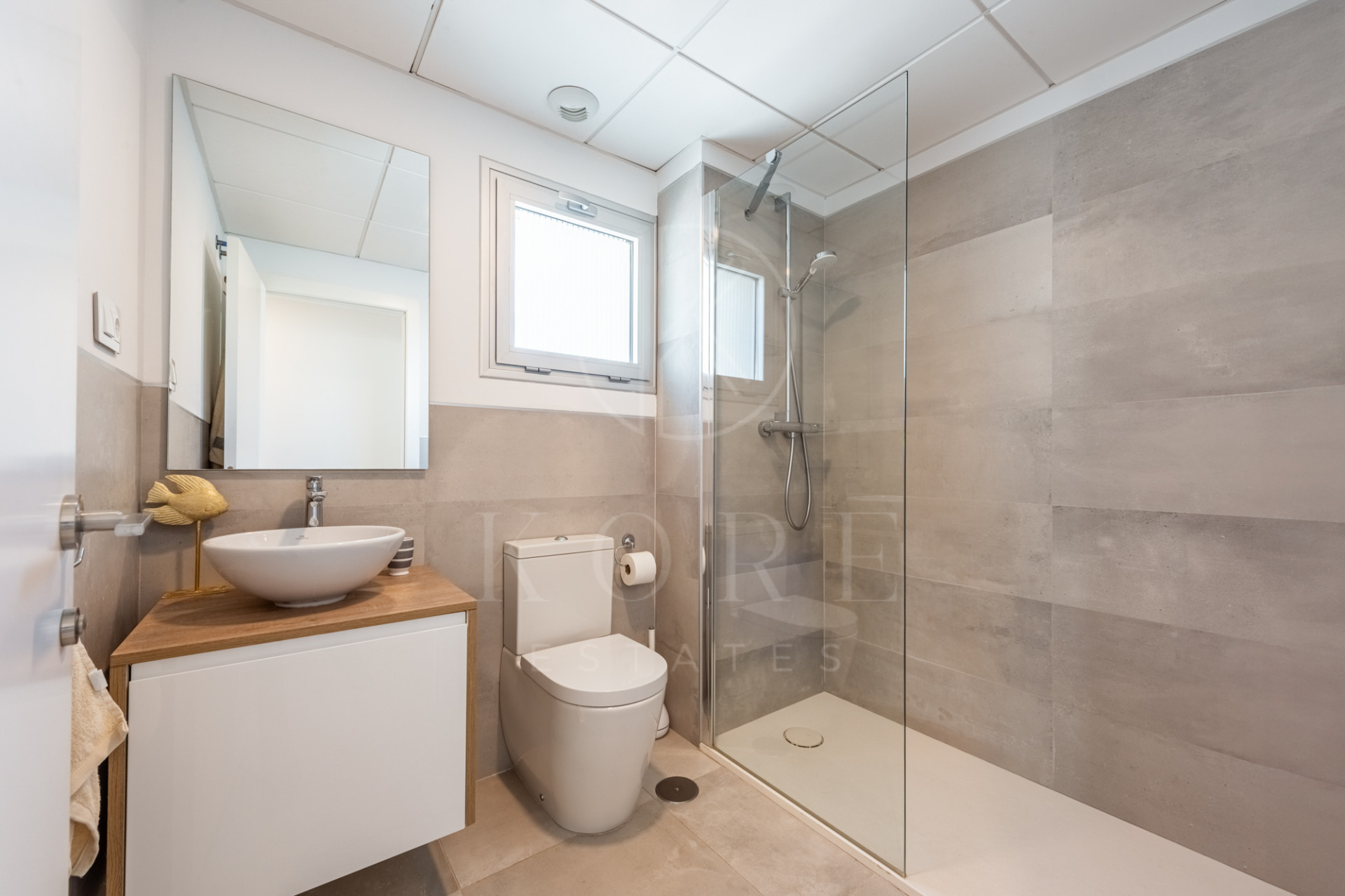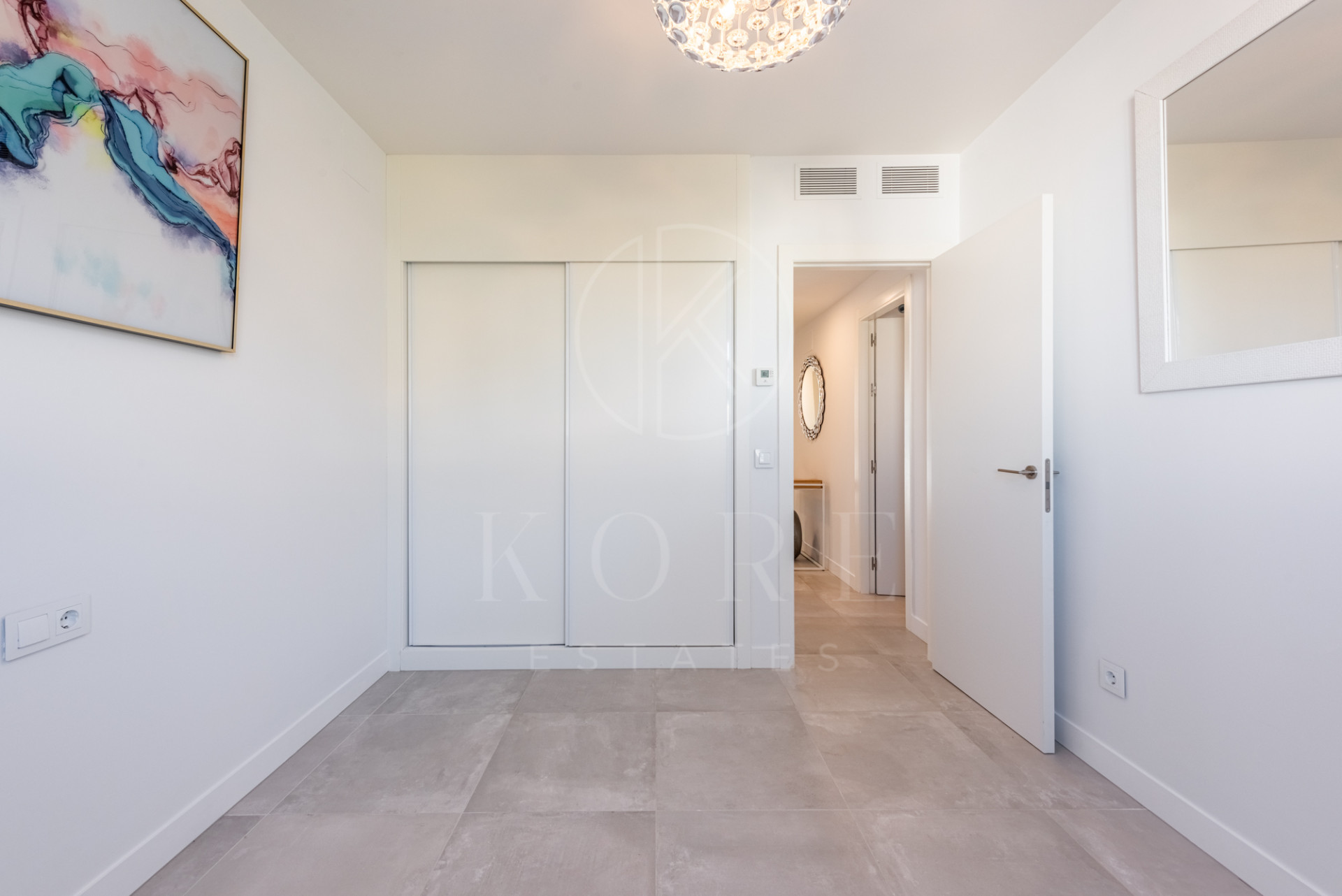 El dormitorio principal dispone de zona de vestidor, armarios empotrados, acceso a la terraza y baño en suite. El segundo dormitorio también cuenta con armarios y su propio baño, perfecto para familia o invitados.