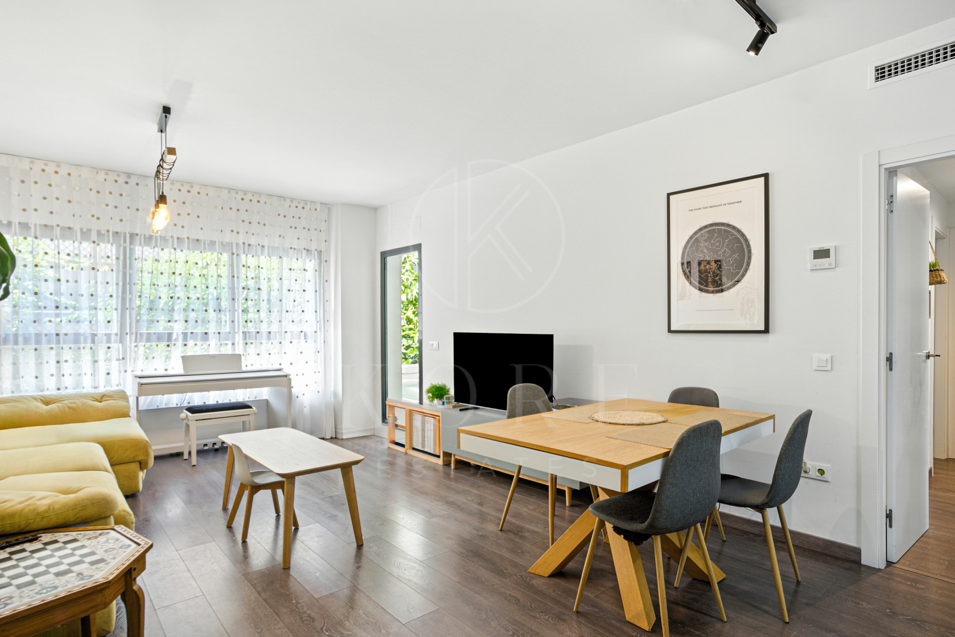 Luminoso apartamento de tres dormitorios y dos baños situado en la prestigiosa comunidad de Estepona Gardens, con una excelente orientación orientada al sur y a pocos minutos del centro de Estepona. La propiedad ofrece una amplia zona de estar-comedor con cocina de planta abierta, perfectamente conectada a una terraza privada que disfruta de abundante luz natural durante todo el día. El apartamento está totalmente amueblado y equipado con aire acondicionado, con elegantes suelos de madera y armarios empotrados que proporcionan comodidad y estilo en cada habitación. Situado en una comunidad cerrada y segura, los residentes disfrutan de amplias y bien cuidadas zonas comunes con una piscina, jardines ajardinados, parque infantil, fácil acceso al ascensor, trastero y garaje comunitario con espacio para un coche. Su inmejorable ubicación, cerca de supermercados, restaurantes, escuelas internacionales, campos de golf y la playa, hace de esta propiedad una opción ideal para vivir durante todo el año, vacaciones relajantes, o como una inversión de alto rendimiento en una de las zonas más deseadas de Estepona.