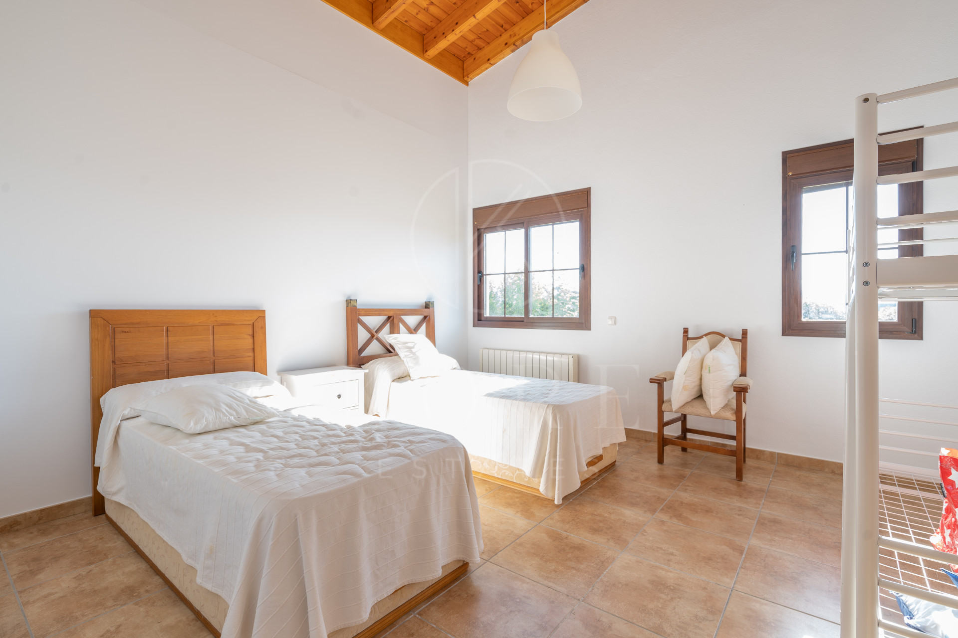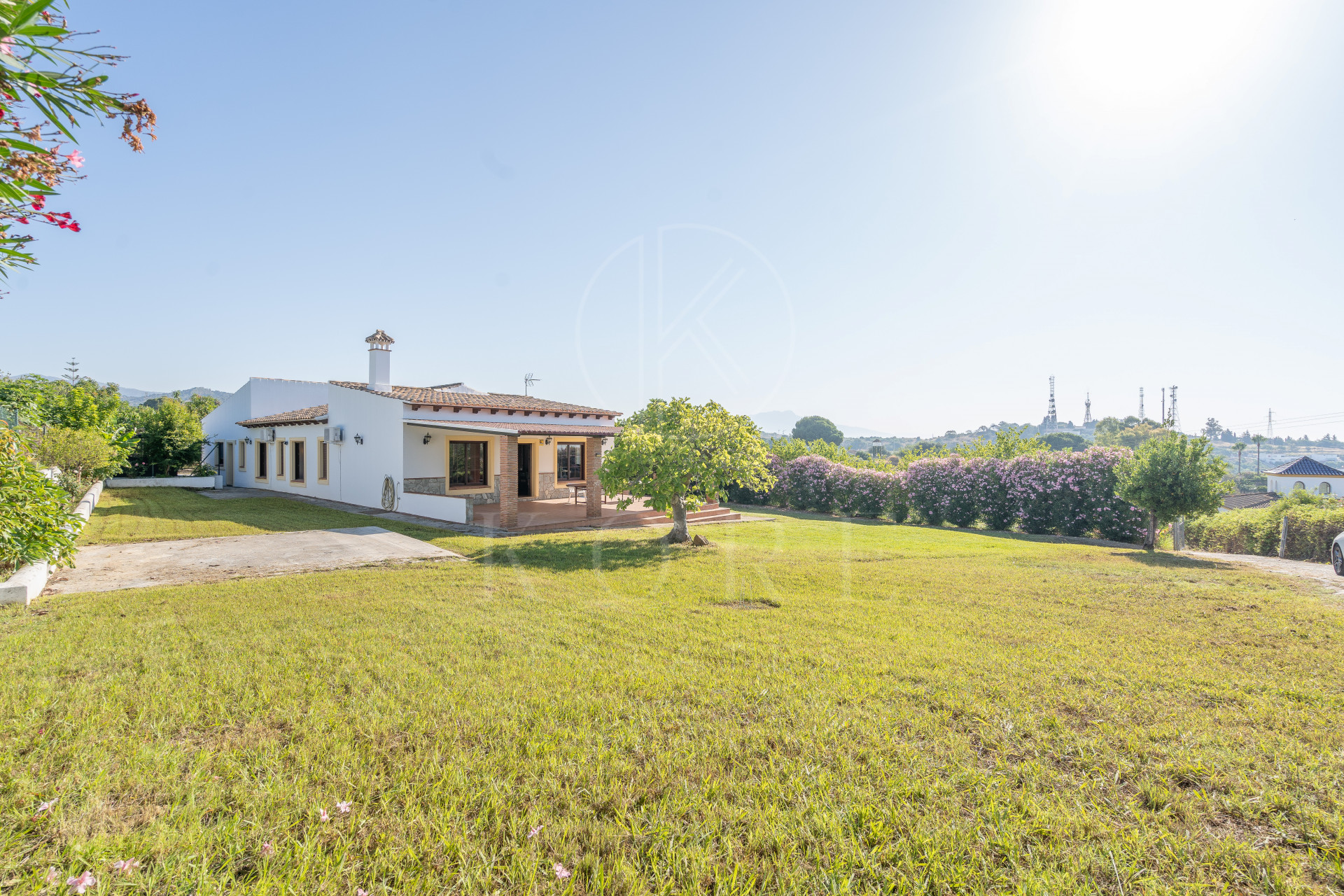 Esta gran villa de estilo rural/finca tiene la vista más hermosa del mar. Está situado en el campo, pero todavía a pocos minutos en coche de la playa y la ciudad de Estepona. Tiene muy buen acceso por carretera pavimentada y se encuentra en una zona muy tranquila donde se puede disfrutar de vivir en la naturaleza y al mismo tiempo está muy cerca de todos los servicios como restaurantes, bares, centros comerciales.