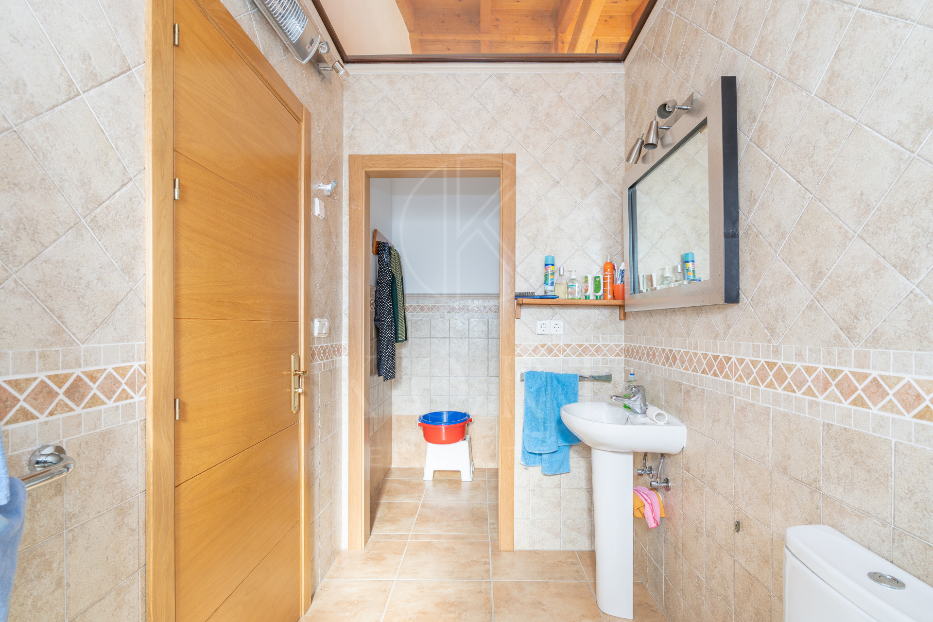 Exterior: La propiedad está completamente cercada y tiene un almacenamiento para herramientas de jardinería. La gran parcela (10 000 m2) tiene un montón de árboles frutales diferentes que obtiene agua de su propio pozo.