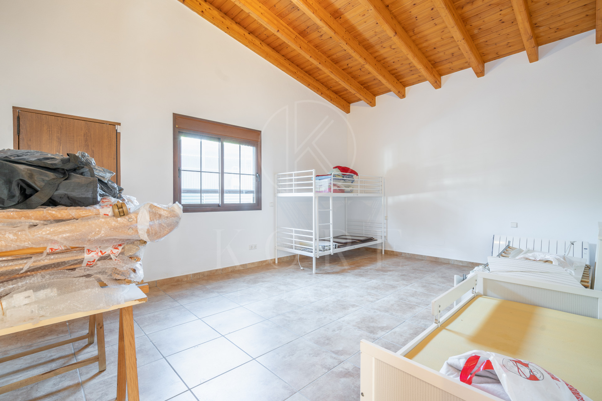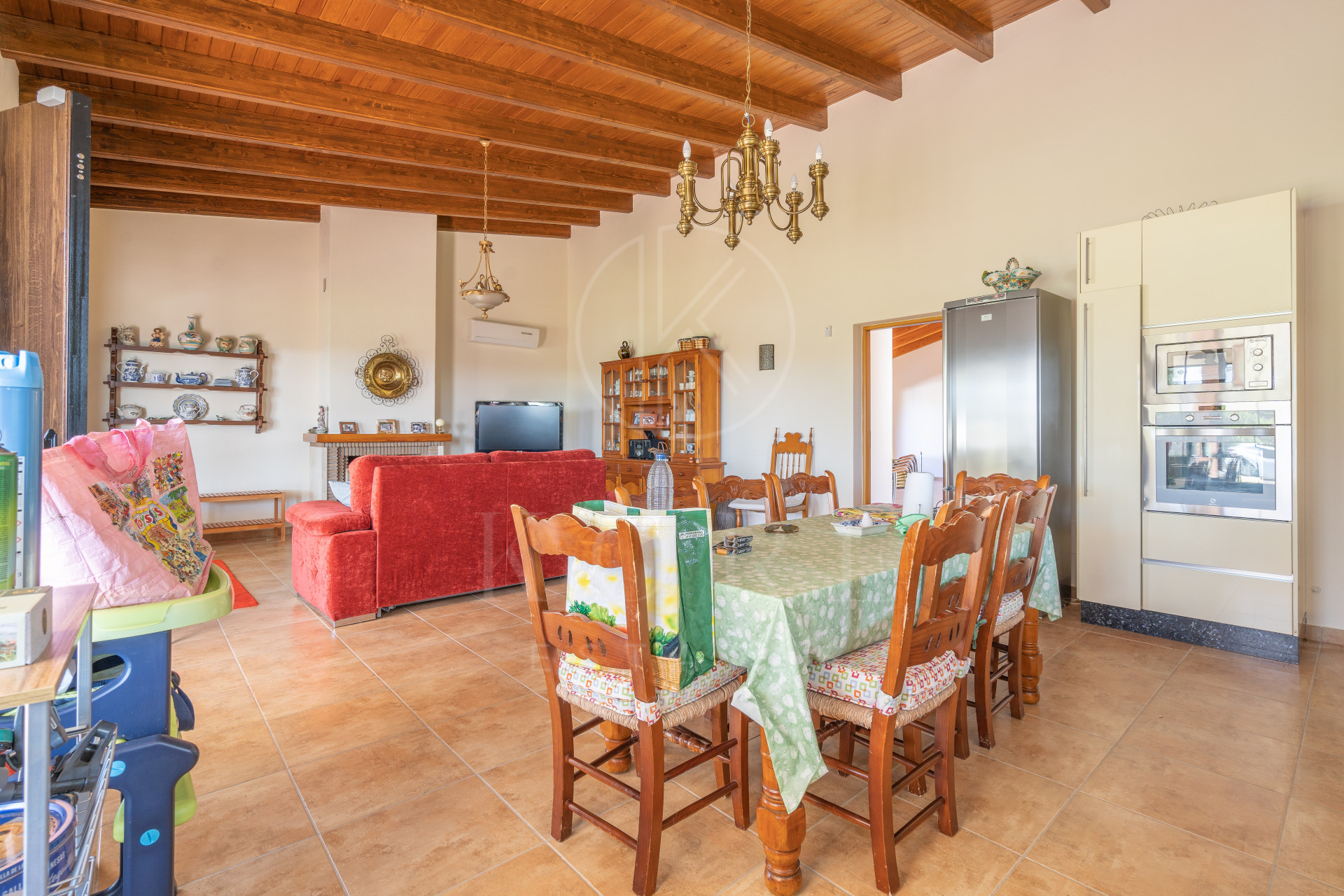 La casa se distribuye de la siguiente manera: Dos grandes salones, uno de ellos con chimenea y un plan abierto, cocina totalmente equipada. Esta habitación tiene acceso directo al gran porche cubierto.