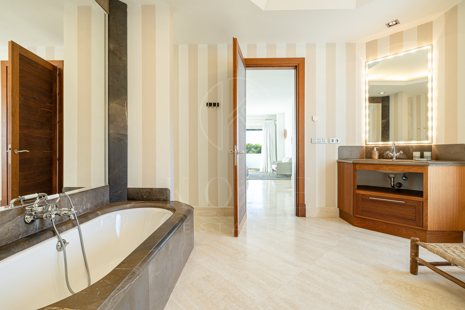 Ubicada en el prestigioso resort Finca Cortesín, esta extraordinaria villa orientada al sur representa una oportunidad única para experimentar lo mejor del exclusivo estilo de vida de la costa andaluza. Combinando elegancia atemporal, sofisticación moderna y auténtico encanto mediterráneo, esta vivienda ofrece una atmósfera de lujo sin esfuerzo en uno de los destinos más celebrados de Europa. Distribuida armoniosamente en dos niveles, la villa cuenta con cuatro dormitorios bellamente diseñados, cada uno pensado para el confort, la privacidad y la entrada de luz natural. Los espacios de vida de concepto abierto irradian calidez y refinamiento, con una cocina a medida, un luminoso comedor y un acogedor salón centrado en una chimenea, ideal tanto para veladas relajadas como para reuniones elegantes. Al salir al exterior, le reciben jardines meticulosamente cuidados y una piscina privada, creando un refugio de tranquilidad enmarcado por exuberante vegetación y luz meridional con vistas parciales al mar. Un aparcamiento privado con espacio para dos vehículos añade comodidad a la elegancia discreta de la vivienda.