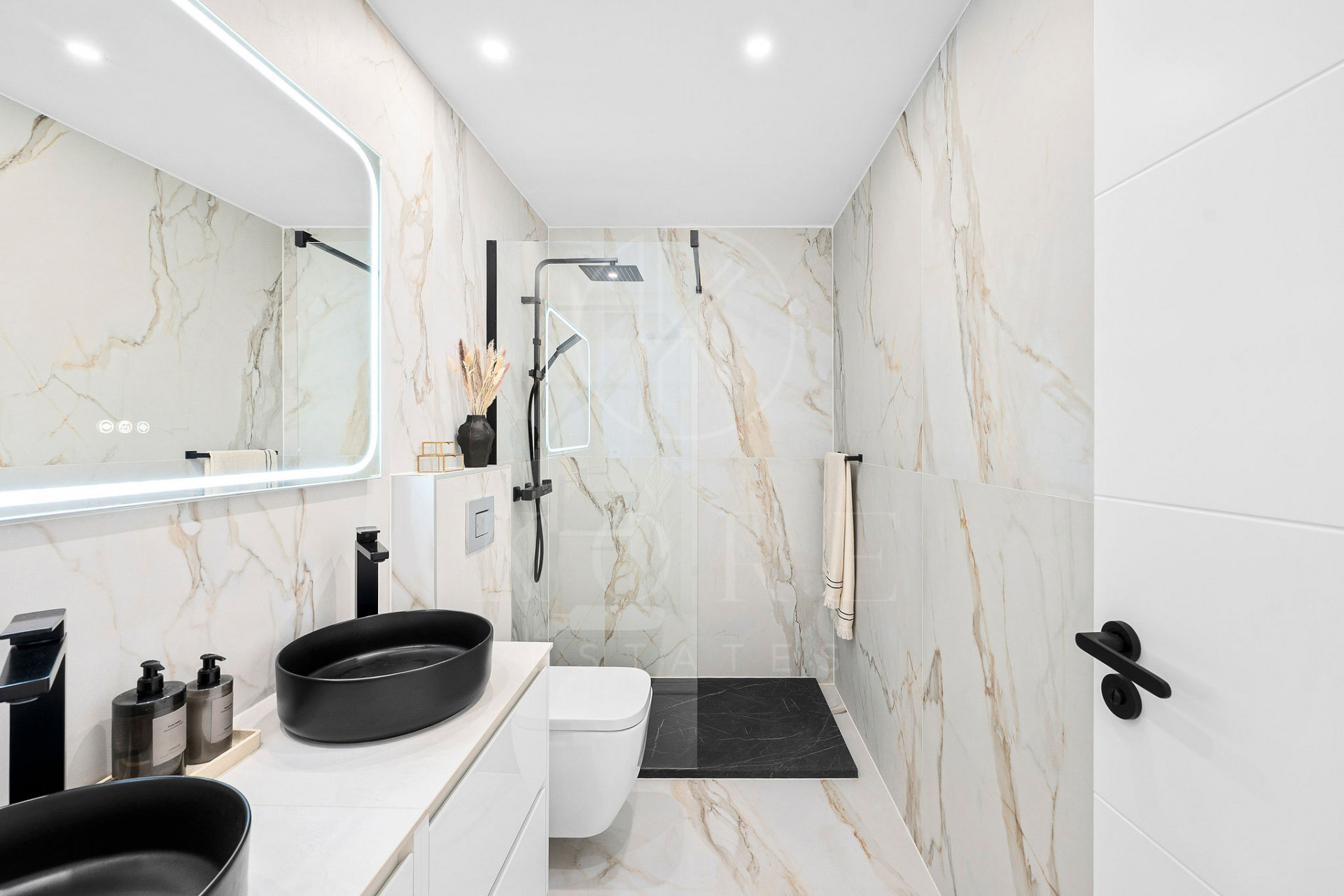 El apartamento cuenta con 3 dormitorios y 3 baños modernos, 2 de ellos en-suite. Una amplia sala de estar y comedor con una acogedora sensación de aire, cocina totalmente equipada y una increíble terraza privada rodeada de exuberante vegetación, que ofrece amplio espacio para relajarse, cenar y entretener.