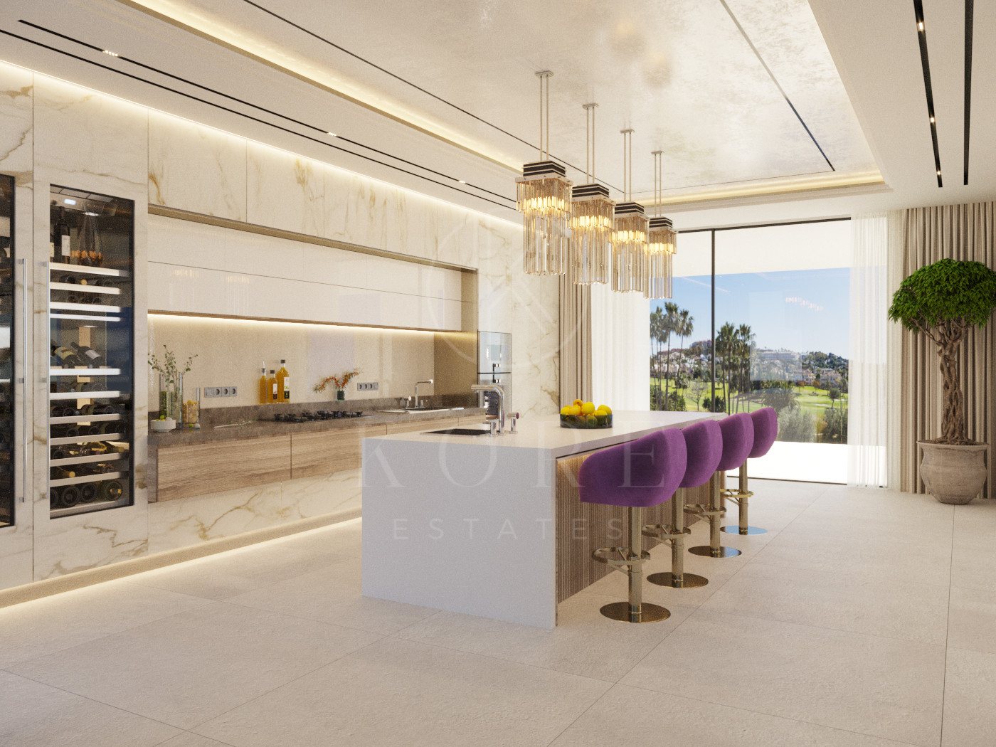 Materiales de calidad y acabados, así como una hermosa vista panorámica del campo de golf.