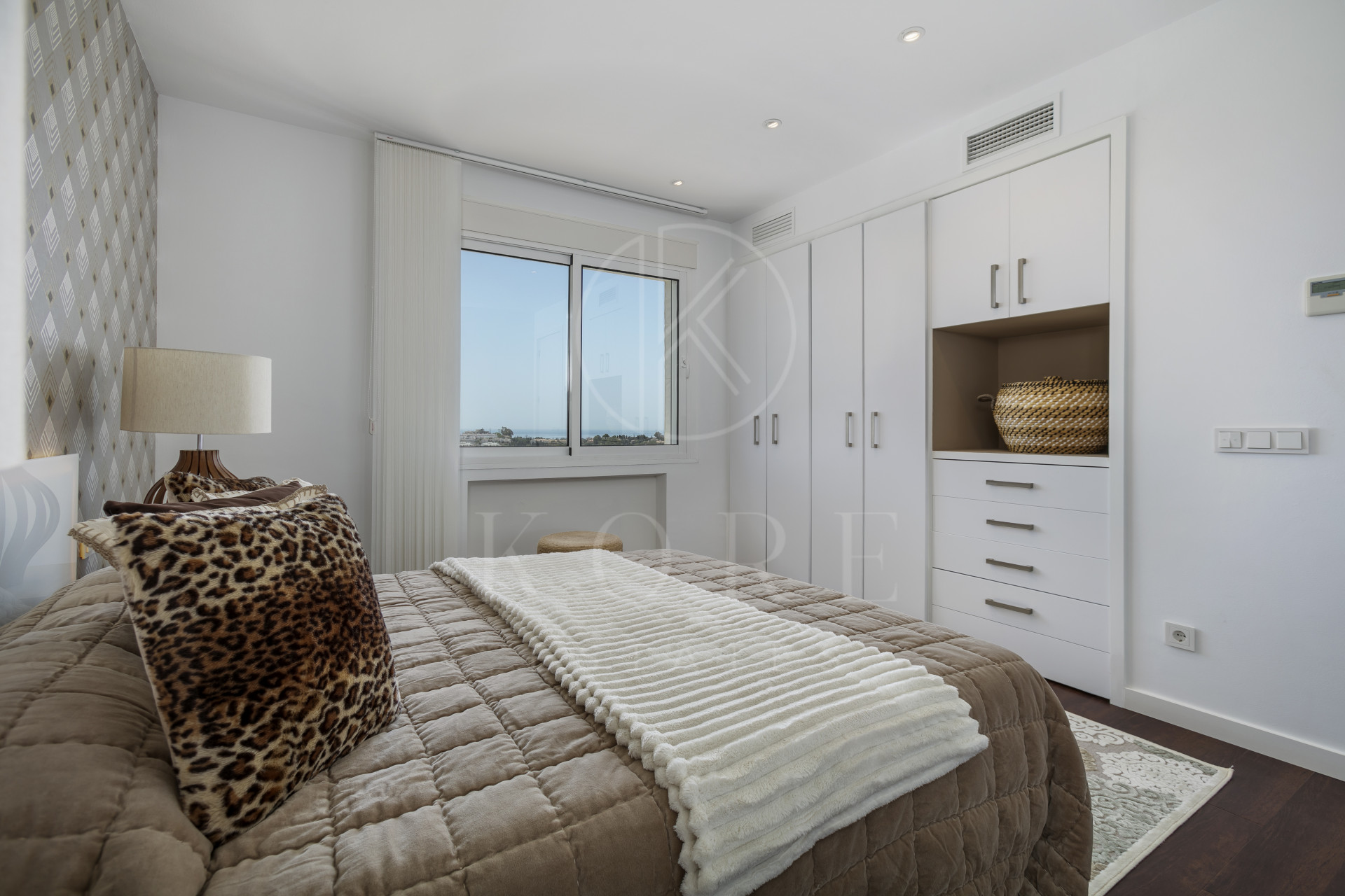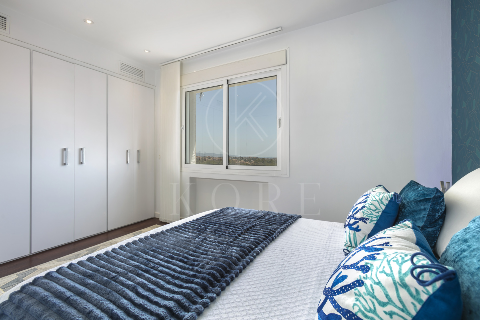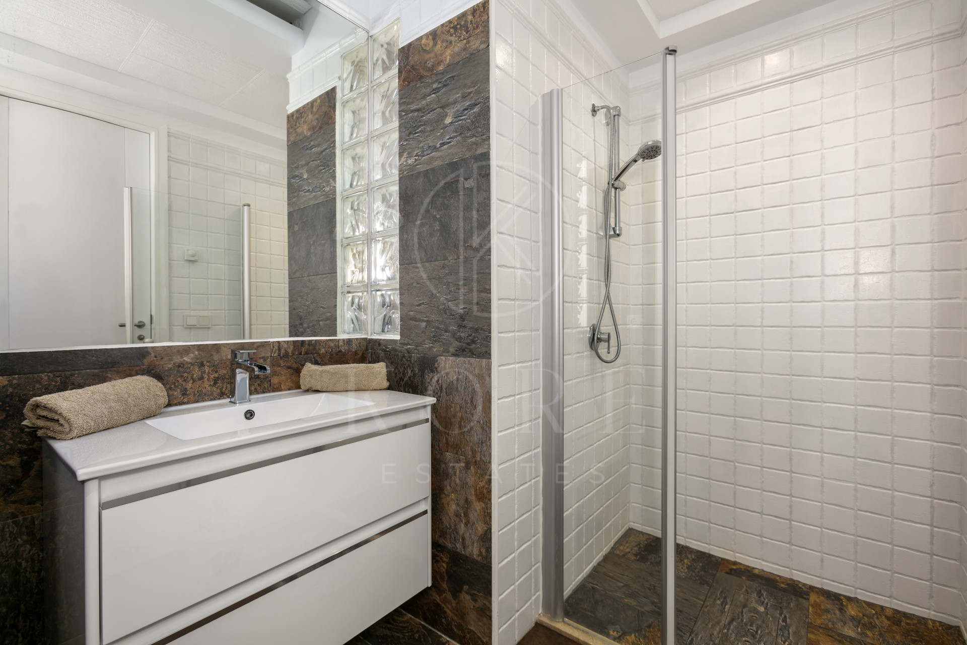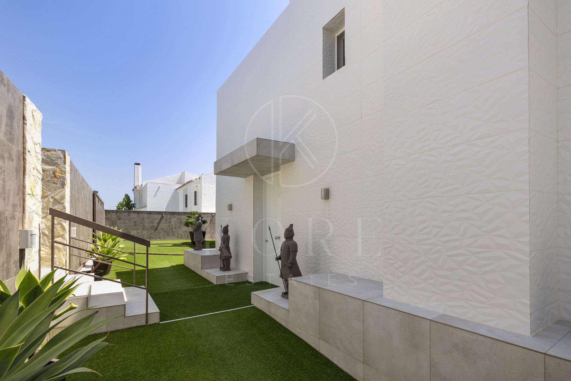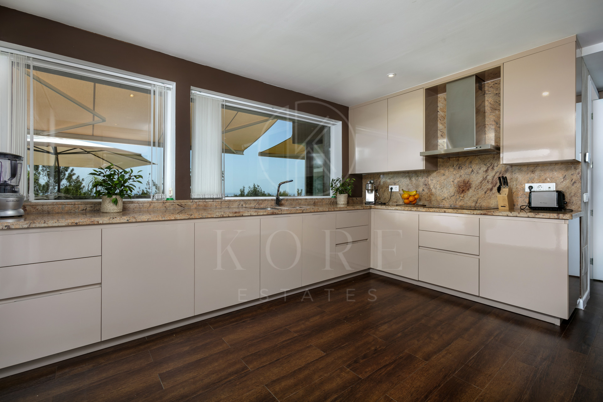Impresionante villa de cuatro dormitorios en primera línea de golf con orientación sur en venta en Nueva Atalaya, Benahavis, con impresionantes vistas panorámicas al mar, al golf y a La Concha. La casa está ubicada en una calle muy tranquila, en primera línea de golf Atalaya. La villa es muy privada y ha sido renovada recientemente. Está en excelentes condiciones y ha sido diseñado para un fácil mantenimiento. Hay una gran piscina climatizada con agua salada, jardín privado y terrazas exteriores muy bien decoradas, perfectas para cenar al aire libre y disfrutar de las fantásticas vistas panorámicas durante todo el día. La casa se distribuye de tres niveles; En la planta baja se encuentra el hall de entrada, aseo de invitados, amplio salón con chimenea con salida a una bonita terraza cubierta, zona de comedor con grandes ventanales y cocina independiente totalmente equipada. Los dormitorios en suite se distribuyen en las otras plantas. Hay estacionamiento para dos autos.