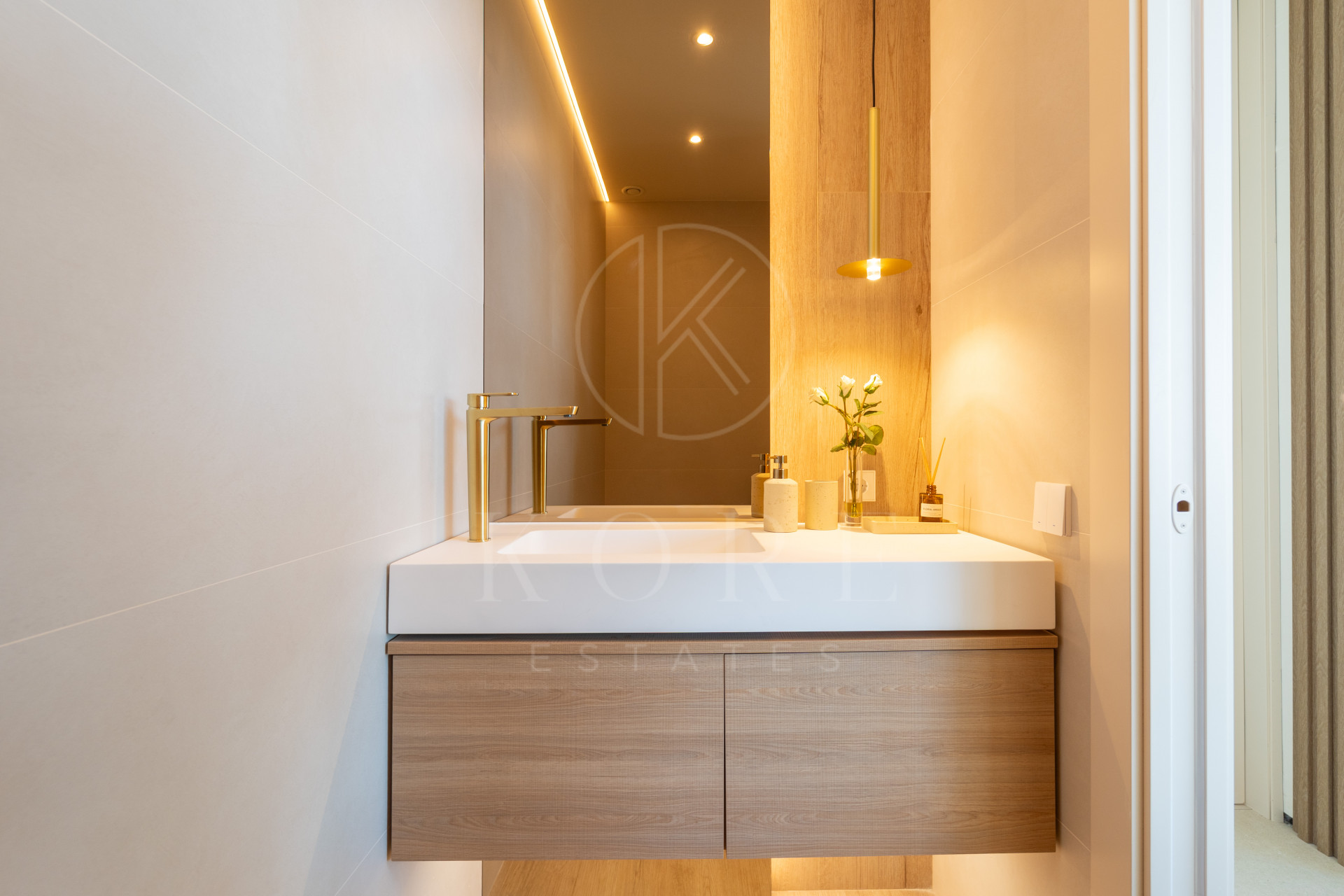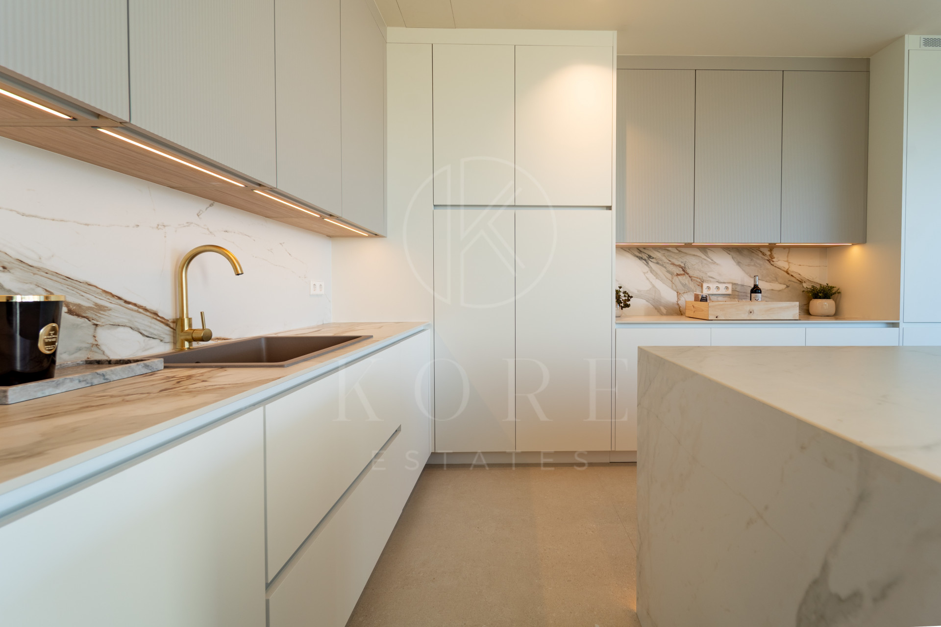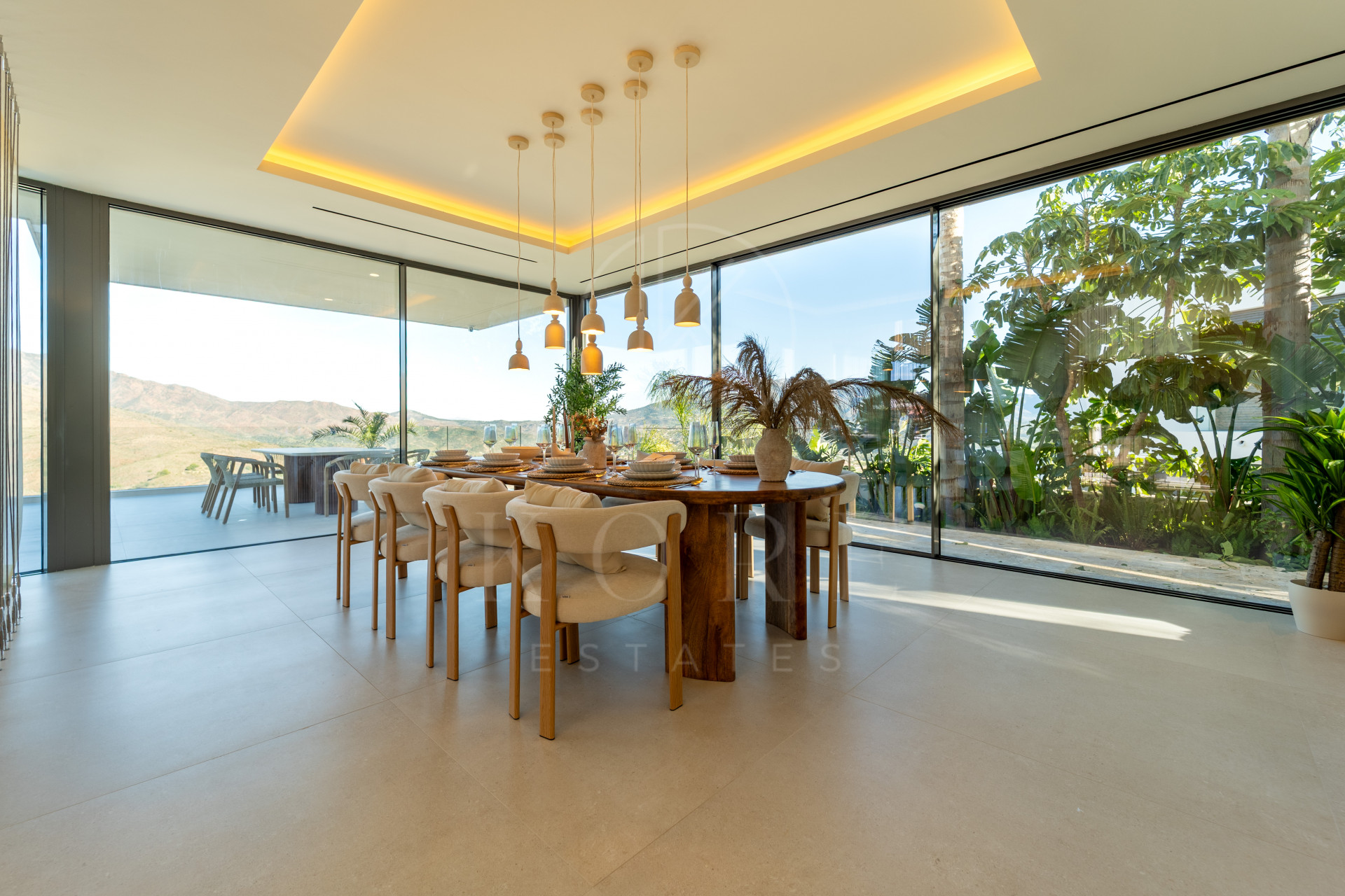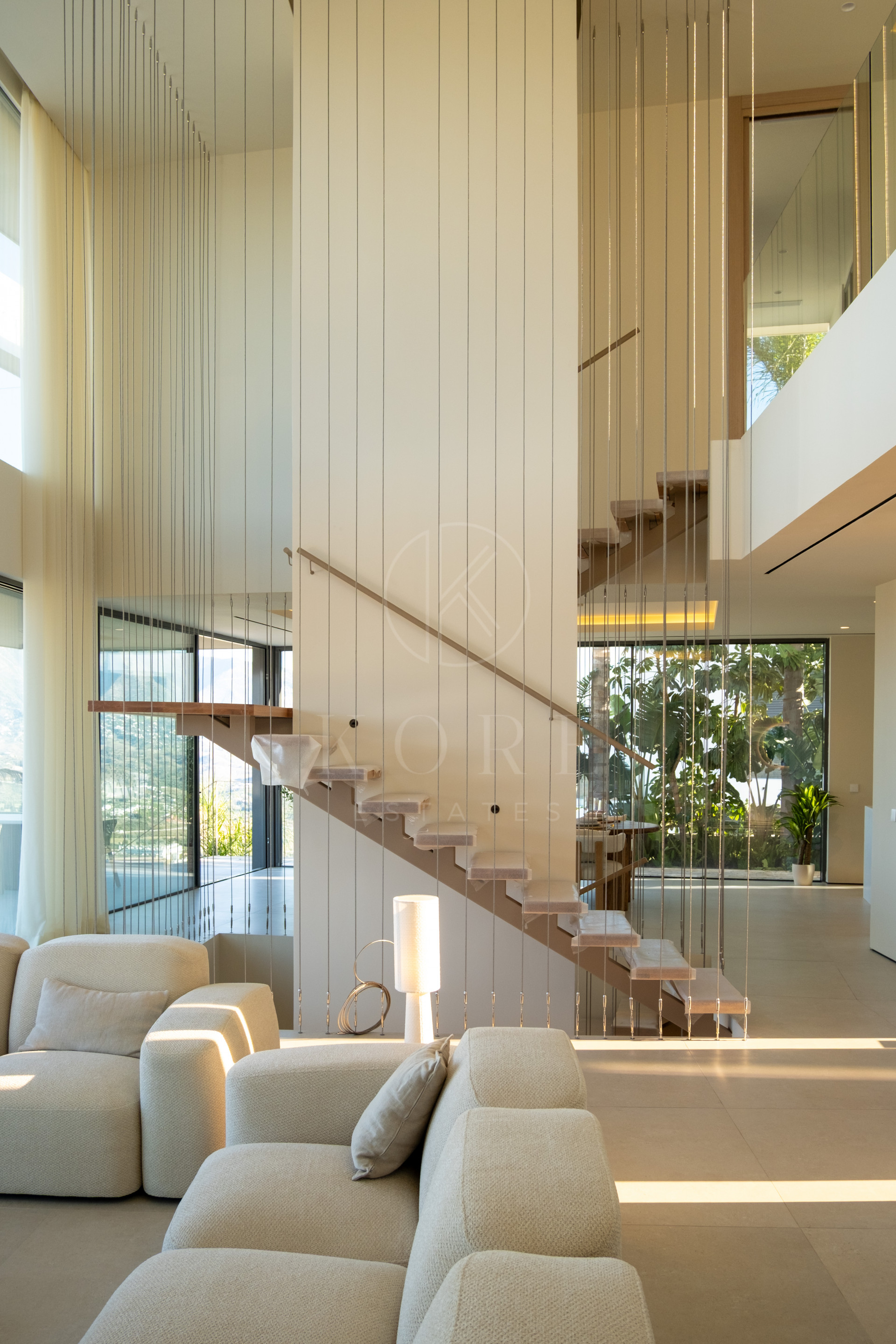 En la planta de entrada, un elegante salón con techos de doble altura, comedor y cocina de diseño totalmente equipada, además de un aseo de cortesía. Todas las estancias ofrecen impresionantes vistas panorámicas. La escalera flotante conduce a la primera planta.
