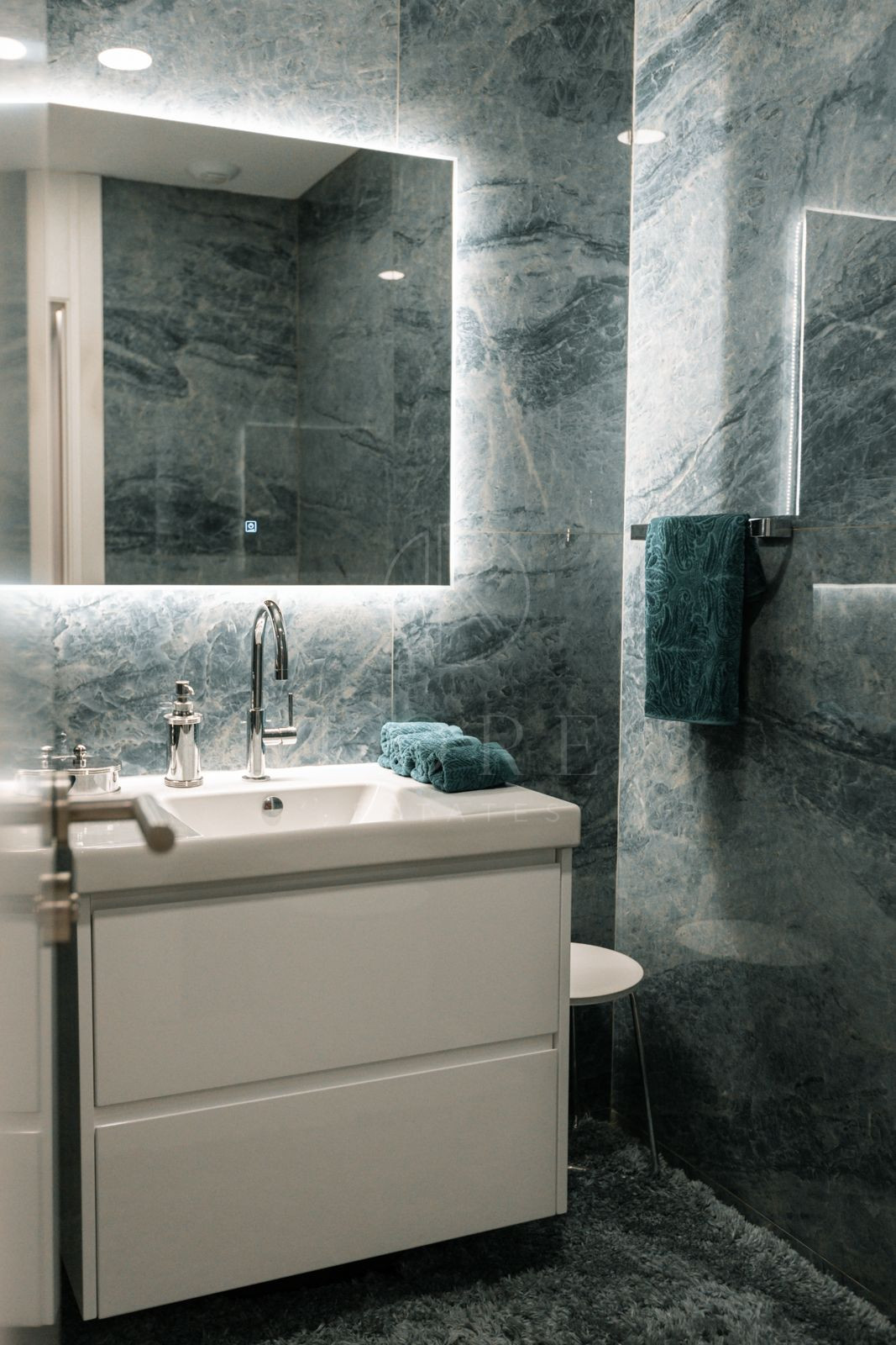 La propiedad cuenta con tres amplios dormitorios con baños en suite y armarios empotrados, complementados por un baño de invitados adicional. Suelo de mármol de primera calidad en toda la propiedad que garantiza durabilidad y facilidad de mantenimiento.
