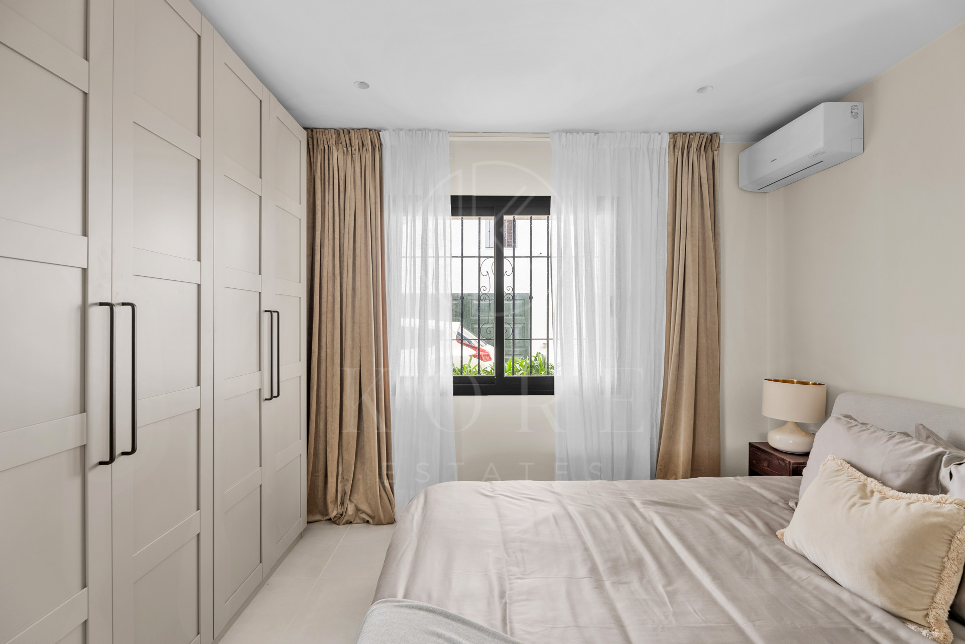 Recientemente renovado en su totalidad, el apartamento cuenta con tres dormitorios, dos baños y una sala de estar y comedor de concepto abierto con una cocina moderna. El espacio se extiende sin interrupciones hacia una terraza privada, ideal para disfrutar del sol mediterráneo durante todo el año.