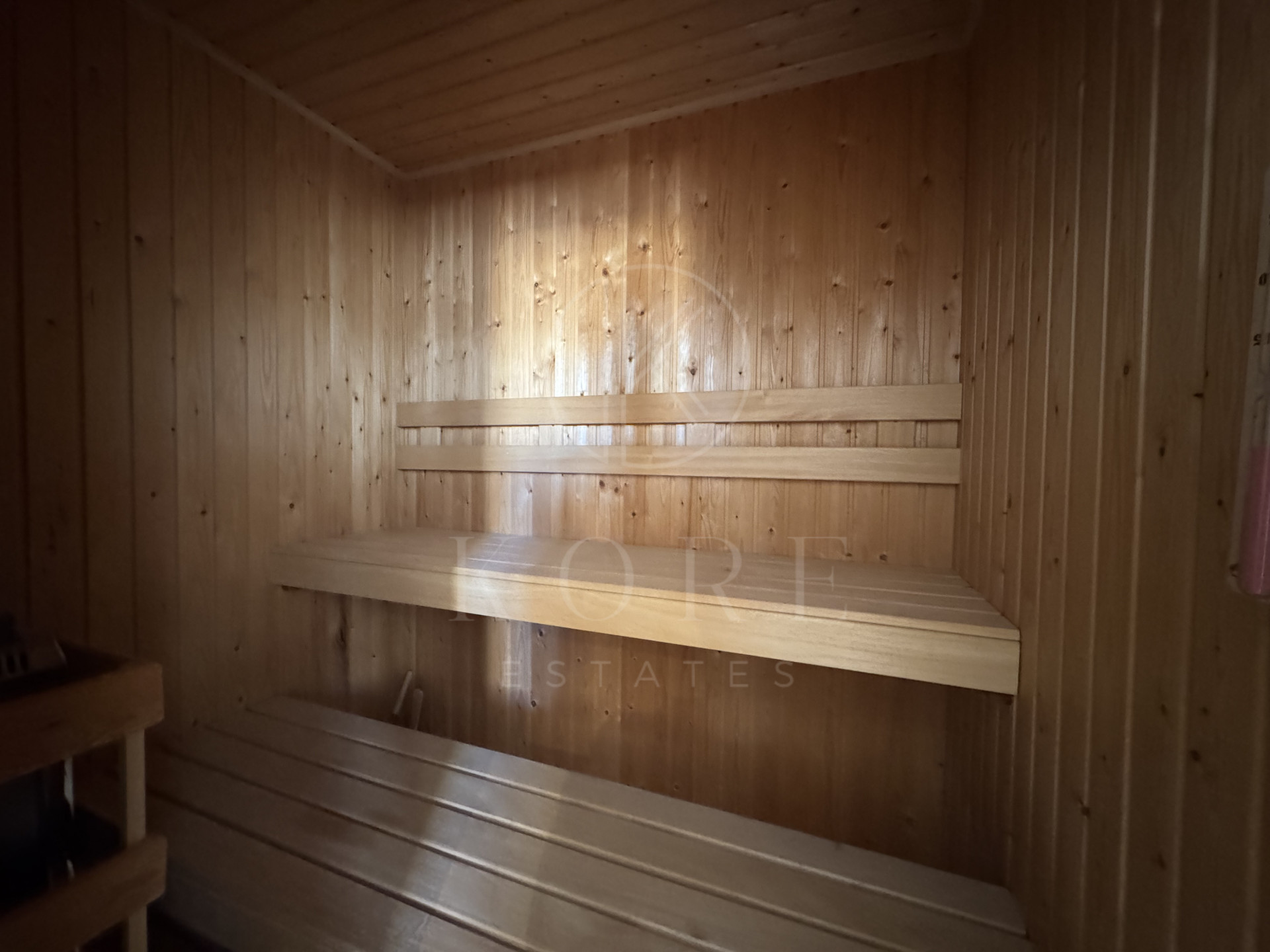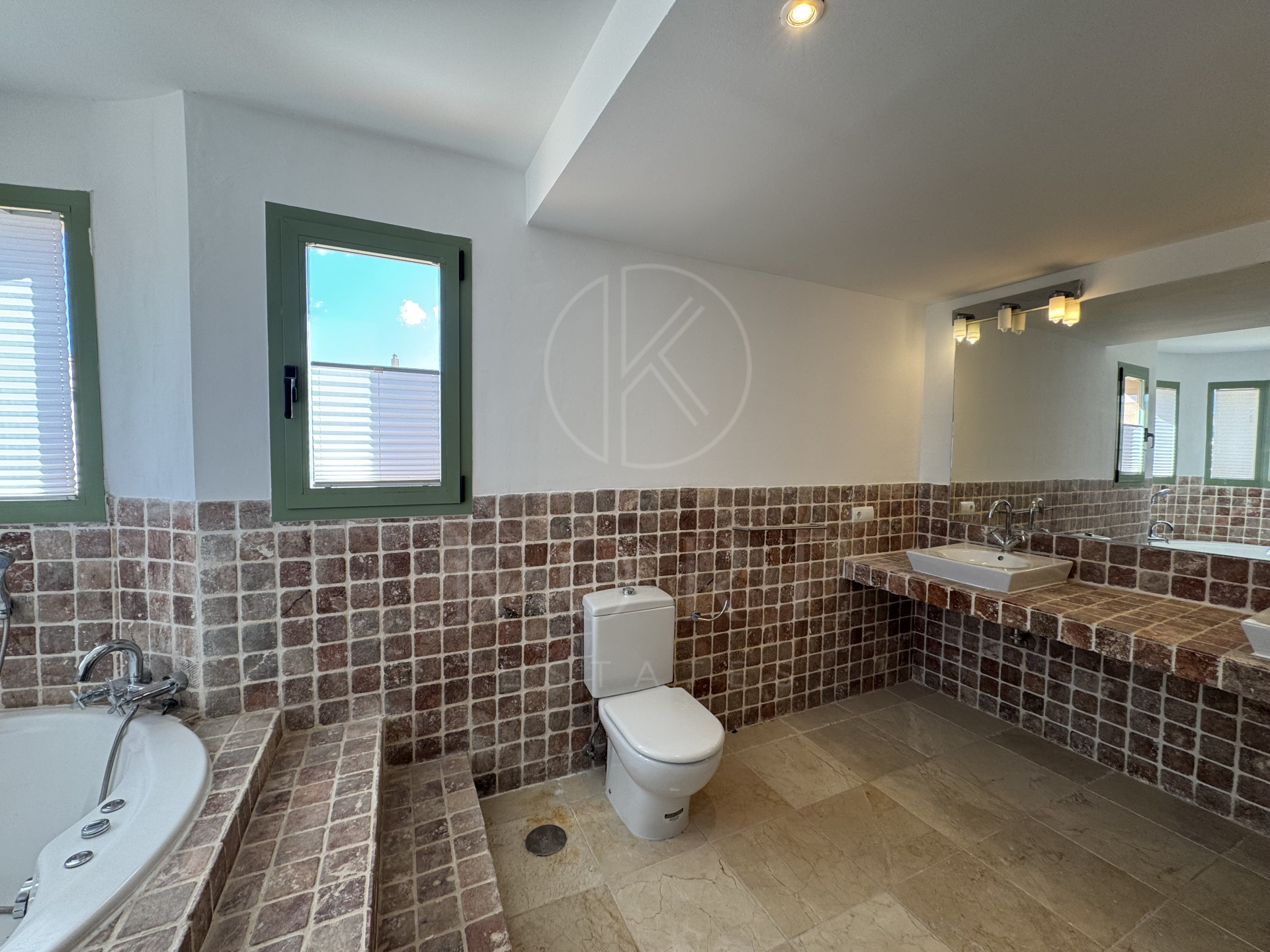 El nivel superior está dedicado a la elegante suite principal, que cuenta con un lujoso baño en suite con jacuzzi, ducha y sauna. Desde aquí, se accede a la amplia terraza solárium, que ofrece orientaciones tanto al este como al oeste, ideal para disfrutar de los impresionantes amaneceres y atardeceres inolvidables.