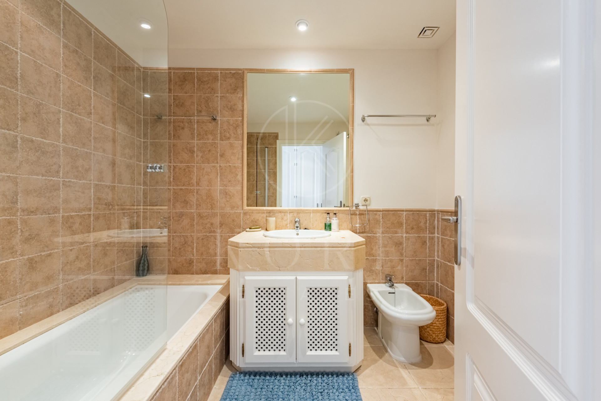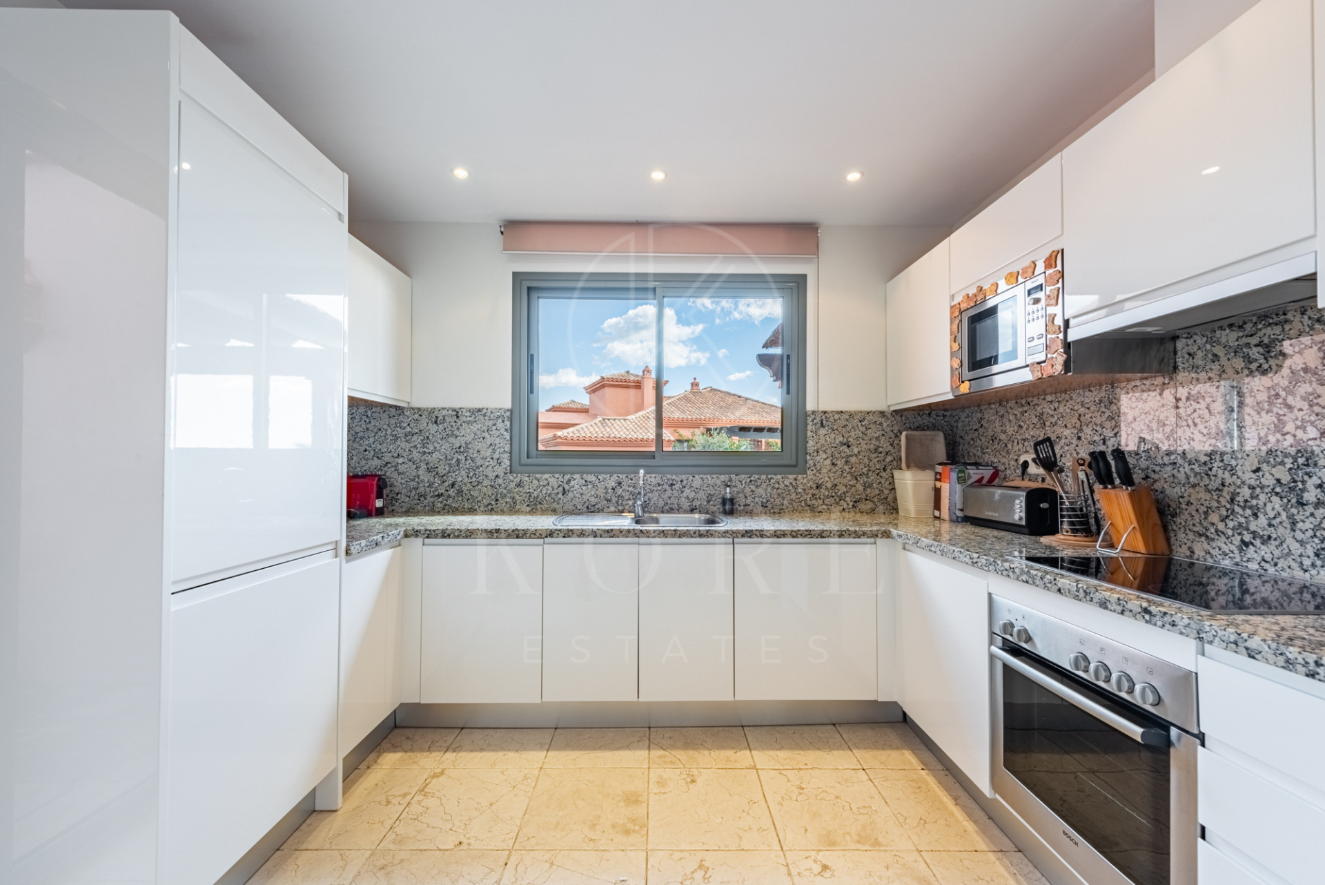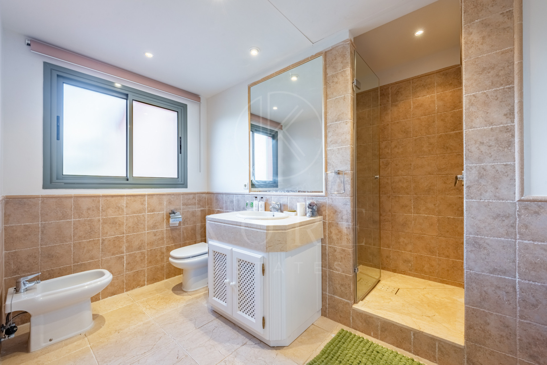 El ático abarca un impresionante espacio construido de 156m², complementado por una amplia terraza de 142m². Consta de tres amplios dormitorios y tres baños, dos de ellos en suite, lo que garantiza privacidad y comodidad para todos los residentes. Los interiores están diseñados con sofisticación, con suelos de mármol, armarios empotrados y una cocina totalmente equipada para satisfacer todas sus necesidades culinarias. La propiedad se encuentra en excelente estado, con muebles opcionales disponibles para adaptarse a su estilo personal.
