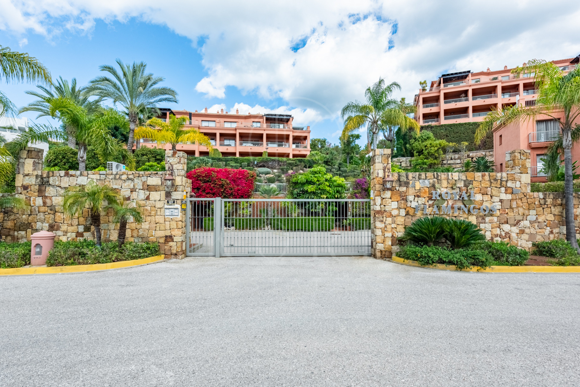 Ubicado dentro de la prestigiosa comunidad de Royal Flamingos en Benahavís, Málaga, este exquisito ático ofrece una combinación inigualable de lujo, comodidad y paisajes impresionantes. Rara vez salen al mercado propiedades en estos edificios situados en las zonas más altas, que cuentan con las vistas más cautivadoras. Situado dentro del renombrado resort Los Flamingos/Villa Padierna, este hogar es una verdadera joya. La propiedad cuenta con una terraza envolvente que permite disfrutar de vistas panorámicas al mar, las montañas, el campo de golf e incluso un tranquilo lago. Todas las áreas habitables y terrazas están convenientemente ubicadas en un solo nivel, lo que lo convierte en una opción perfecta para quienes buscan comodidad y elegancia.