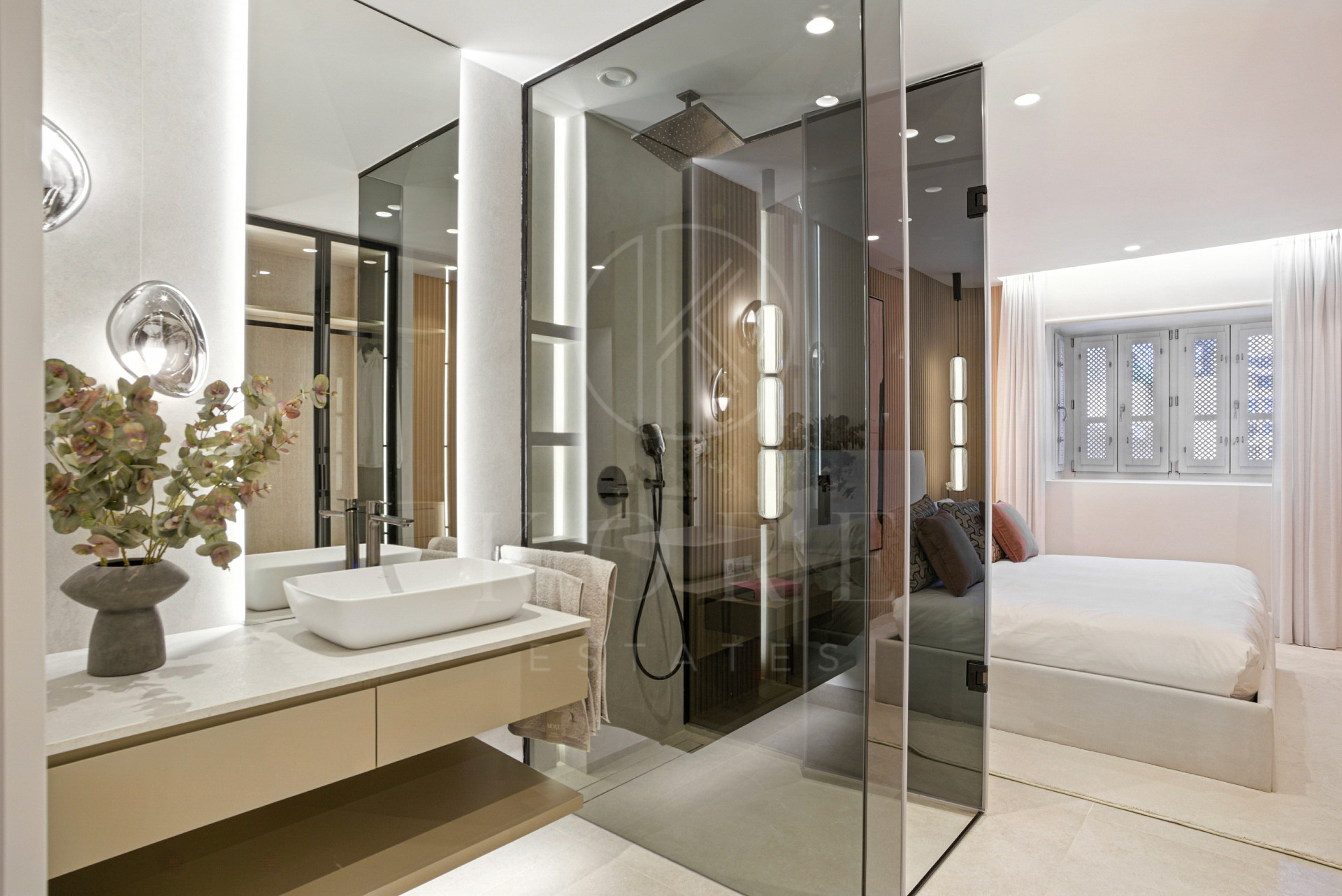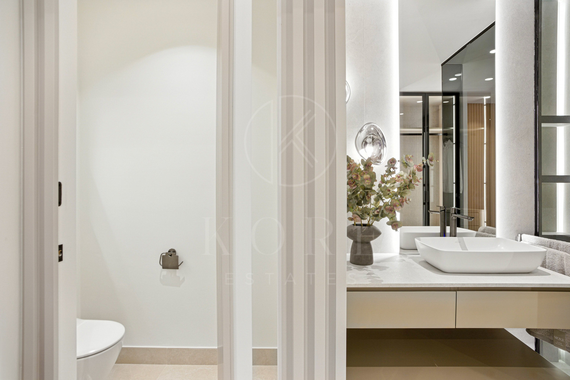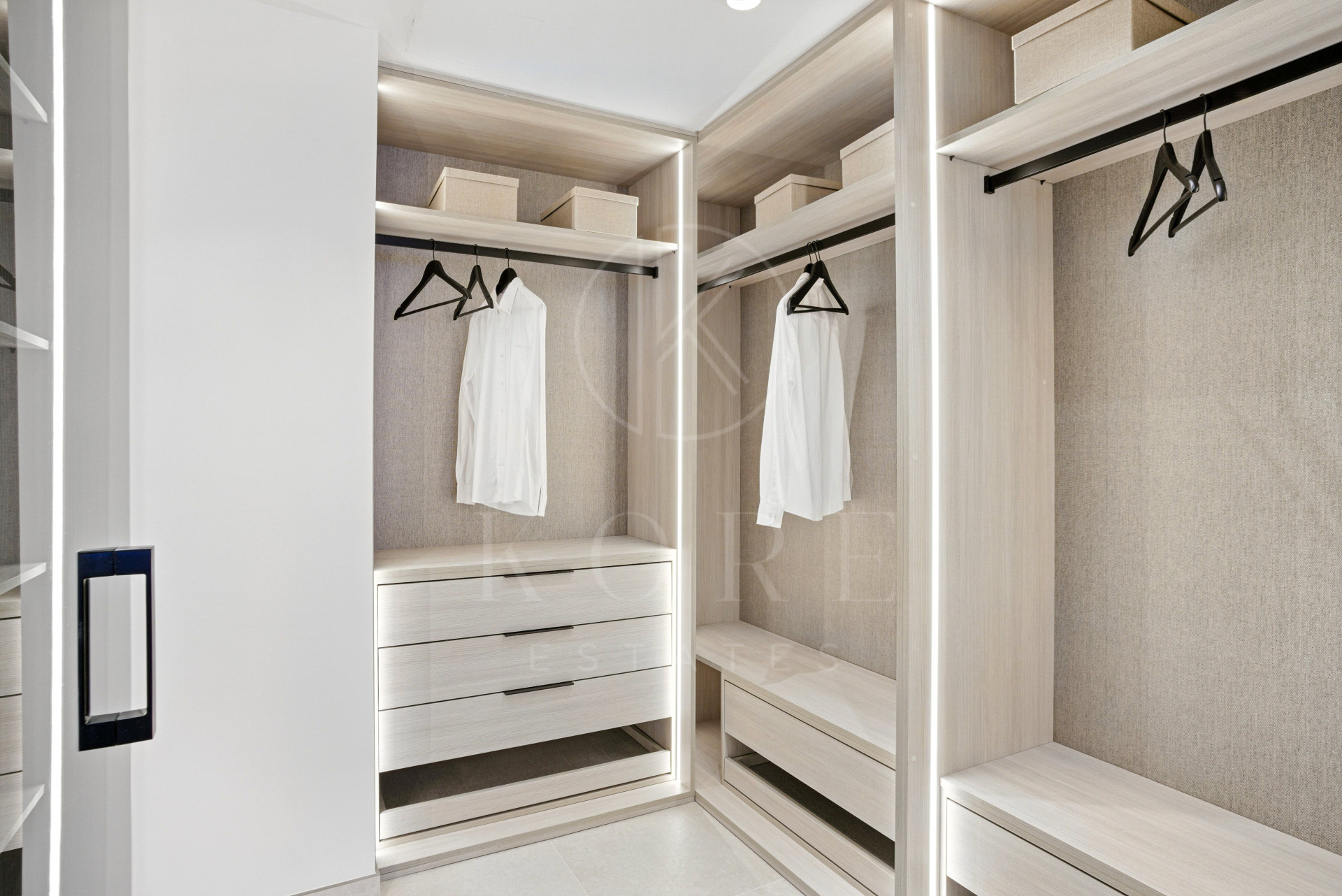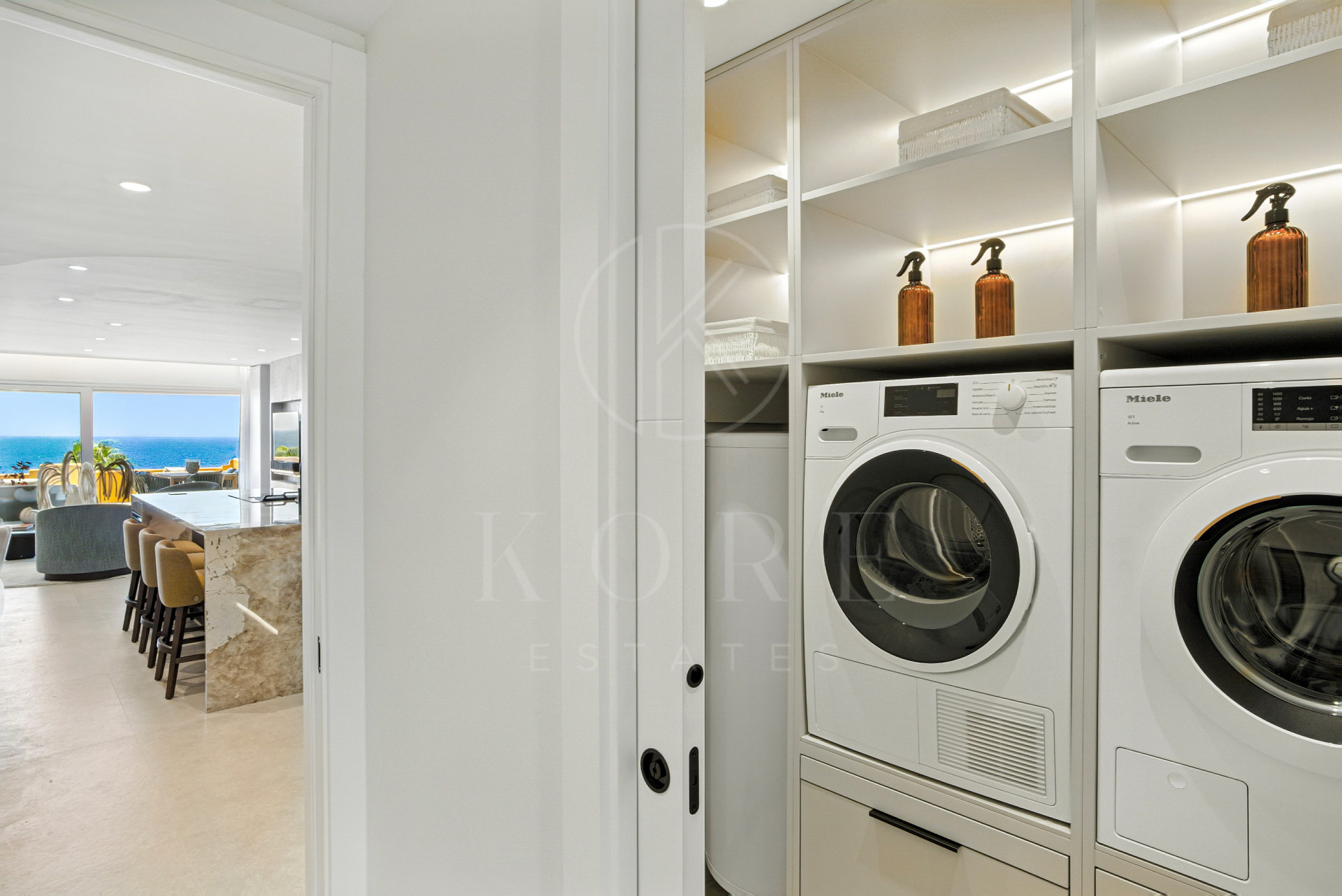Precioso frente a la playa, apartamento orientado al sur con cuatro amplios dormitorios y tres baños modernos, combinando un diseño sofisticado con una vida inmejorable frente a la playa. La lujosa suite principal cuenta con baño en suite, walk-in closet y acceso a una amplia terraza con impresionantes vistas panorámicas del Mediterráneo. La sala de estar y comedor de planta abierta también se abre directamente a la terraza, creando un flujo interior sin costuras. Los acabados Premium incluyen un sistema de sonido B plagaamp;O, nevera de vino, segunda cocina, chimenea eléctrica, bañera independiente, oficina dedicada, lavadero y calefacción por suelo radiante. Situado en el prestigioso Los Granados del Mar en la Nueva Milla de Oro, la residencia ofrece acceso directo a la playa y servicios de primera clase como dos piscinas al aire libre, una piscina cubierta climatizada, gimnasio, sauna, jacuzzi, restaurante in situ, seguridad 24 horas y jardines inmaculados. Idealmente situado cerca del complejo Laguna, centro Estepona, restaurantes de alta gama, tiendas y escuelas internacionales, este es el lujoso litoral que vive en su mejor.