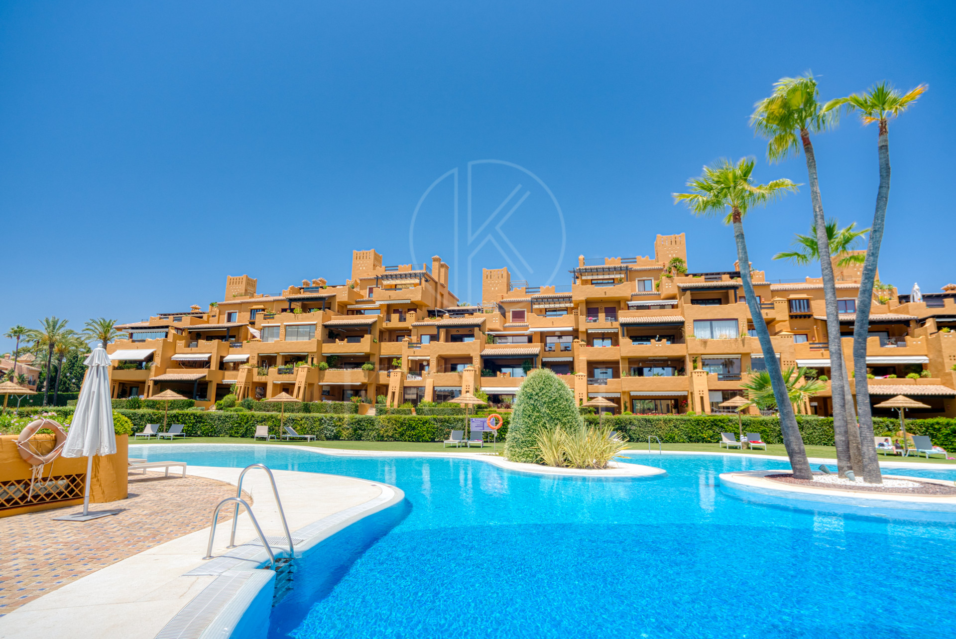 Precioso frente a la playa, orientado al sur apartamento de cuatro dormitorios situado en Los Granados del Mar en la Nueva Milla de Oro