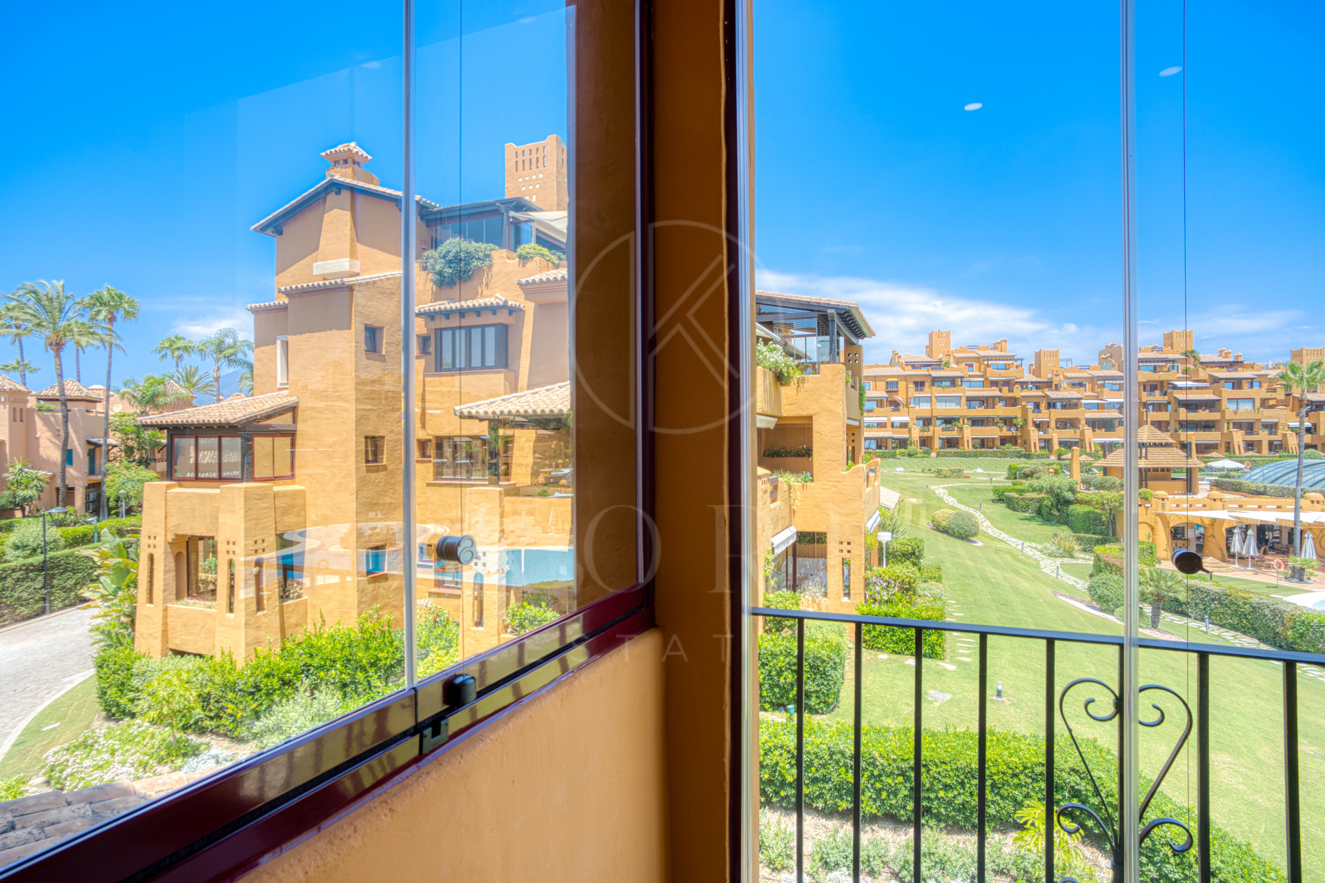 Impresionante orientación sur, apartamento en planta baja de cuatro dormitorios, situado dentro de la exclusiva urbanización Los Granados del Mar en la Nueva Milla de Oro