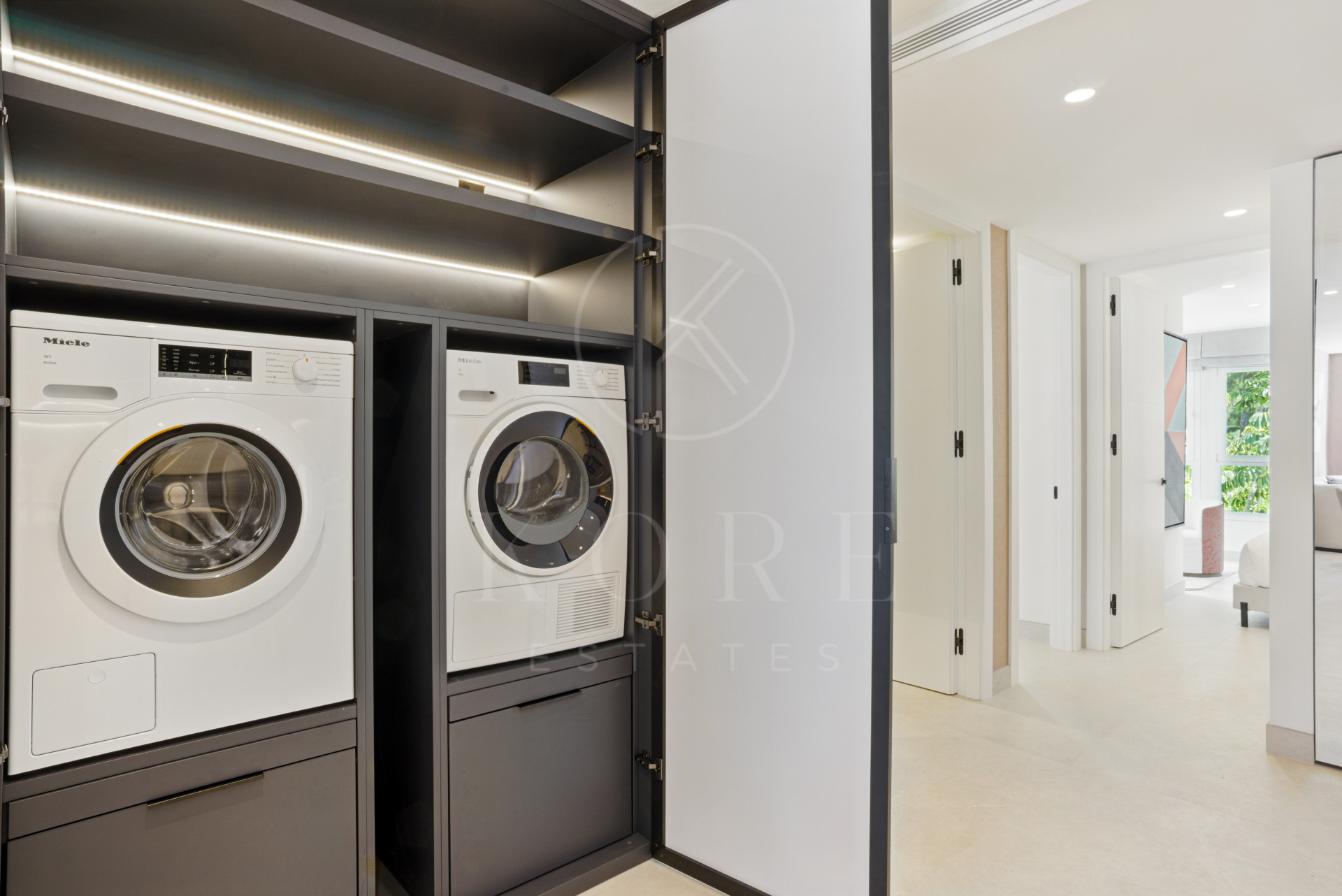 Lujo tres dormitorios, orientación sur oeste, primer piso en una de las comunidades de primera línea de playa más exclusiva Palm Beach, Los Monteros
