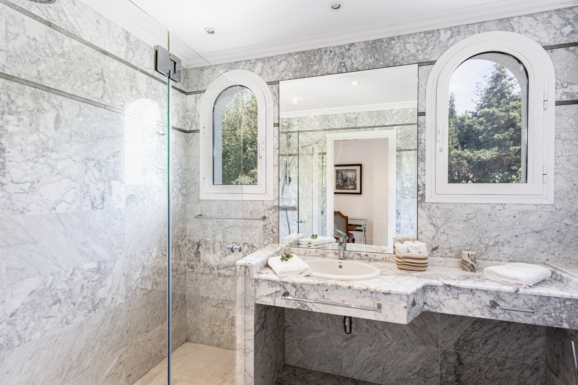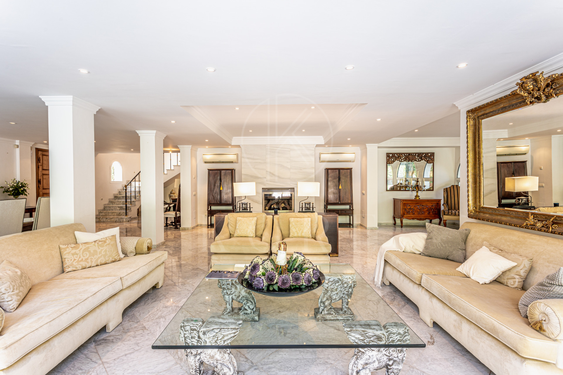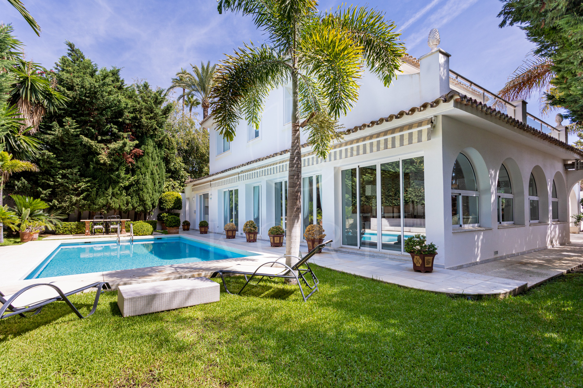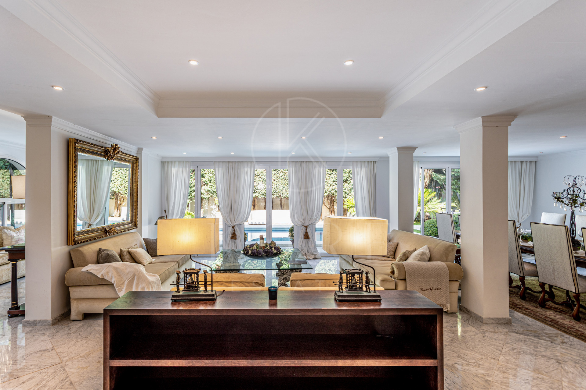 Al entrar en la propiedad, te recibe un amplio salón de concepto abierto, que fluye de manera natural hacia las terrazas exteriores. Este diseño abierto no solo maximiza la luz natural, sino que crea un ambiente perfecto para el entretenimiento o la relajación. La villa está rodeada de hermosos jardines paisajísticos, donde se ubica una piscina privada que invita a disfrutar del maravilloso clima de Marbella durante todo el año.