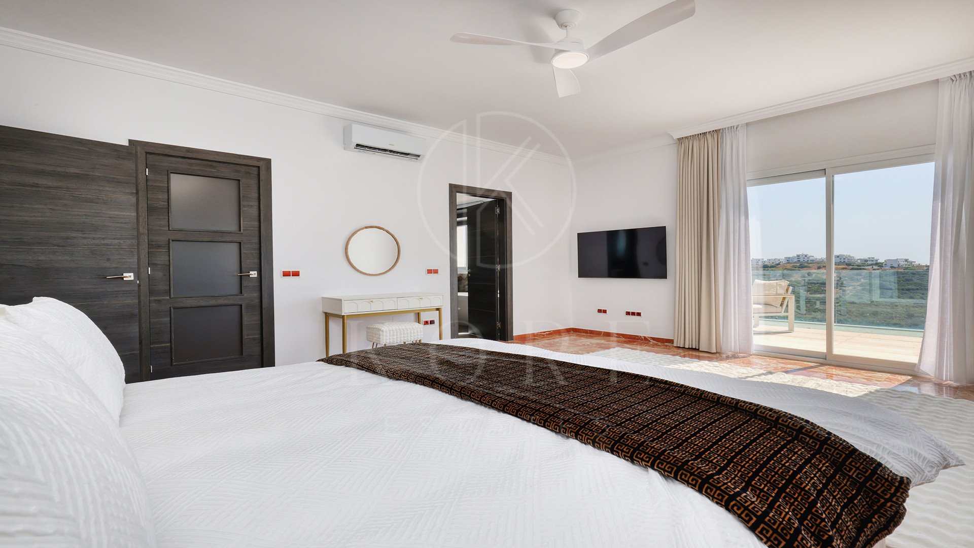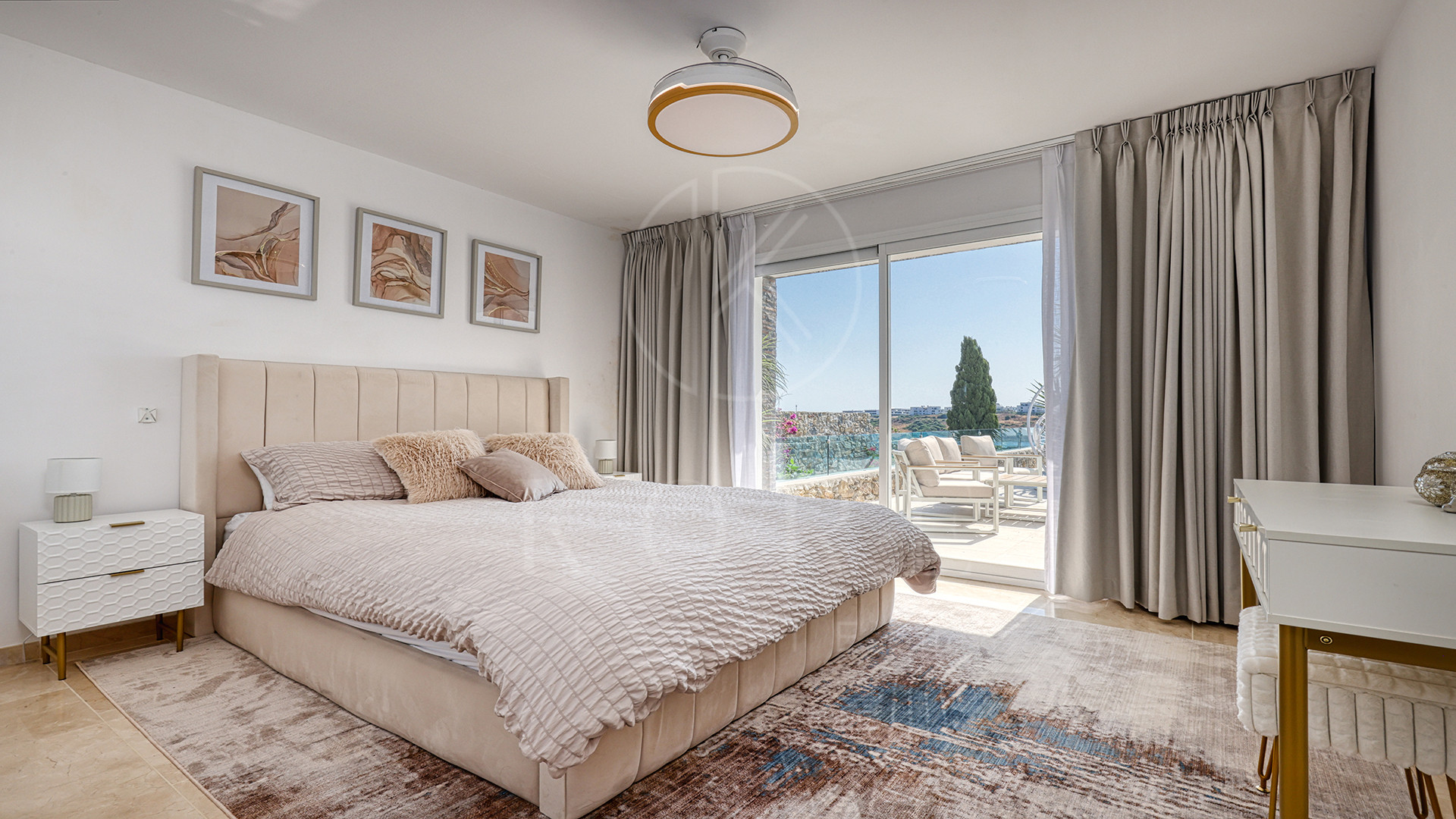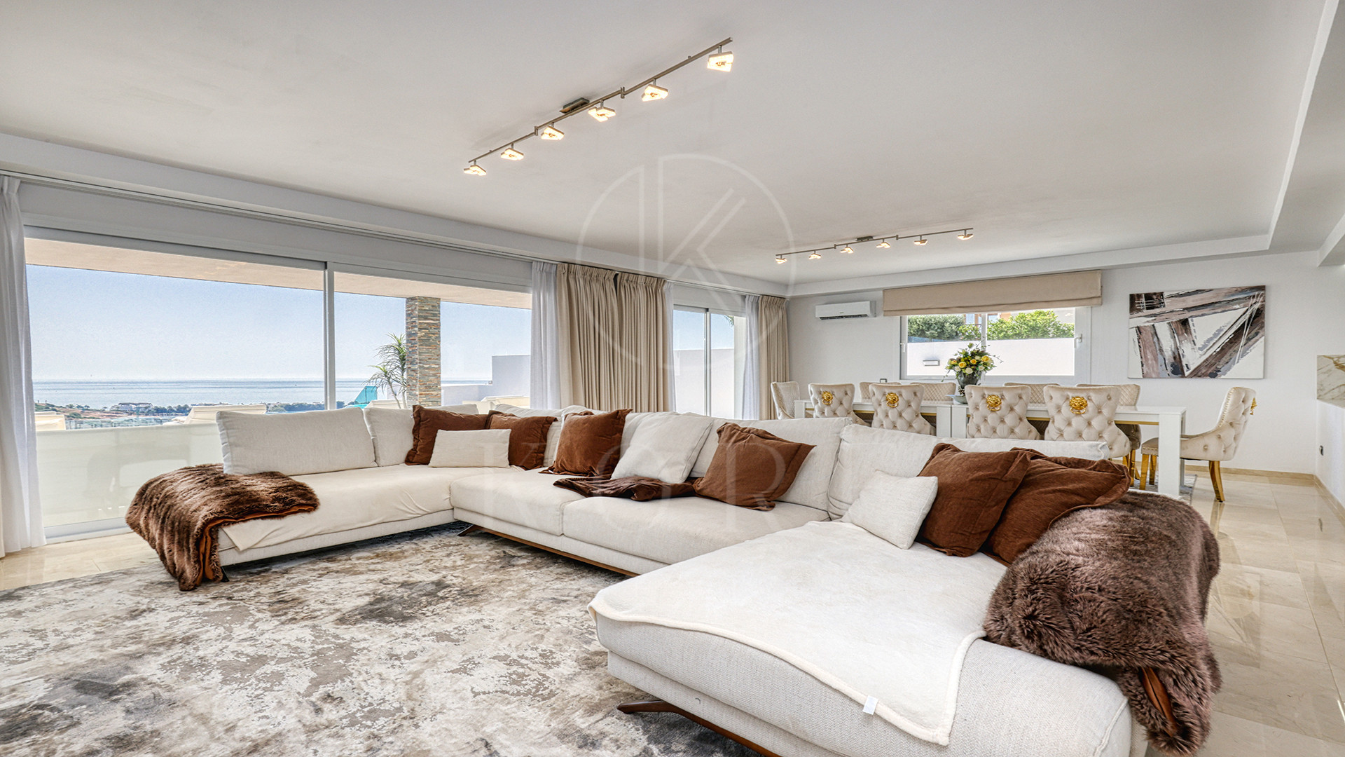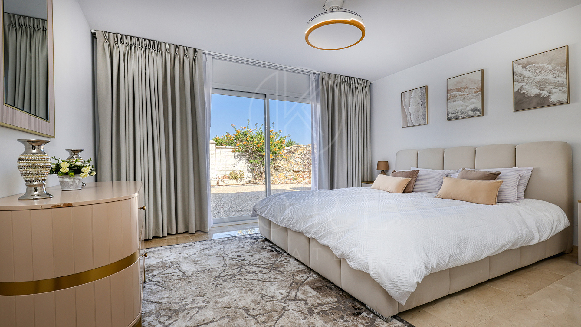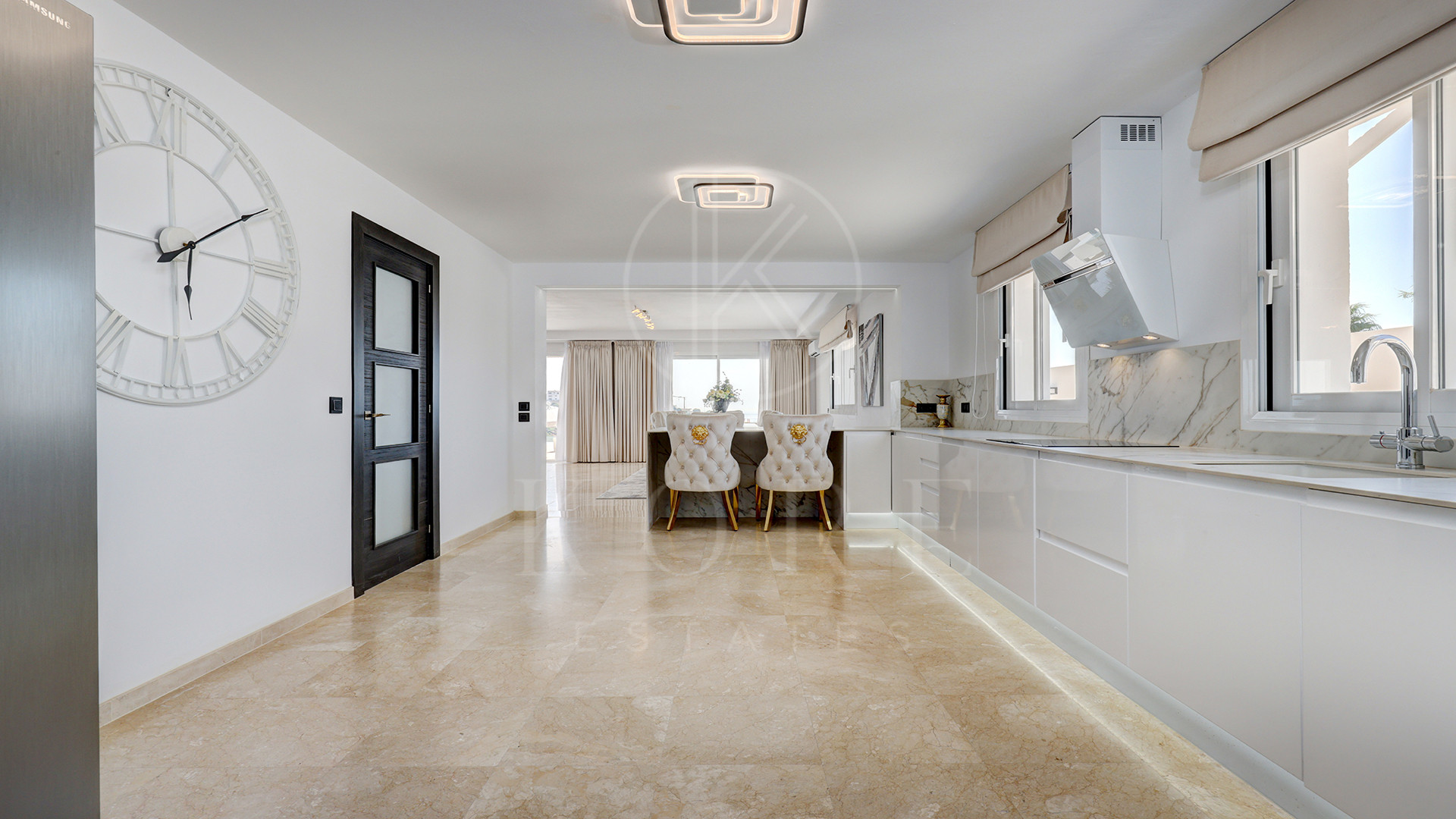 El corazón de la vivienda es una cocina de diseño completamente nueva, moderna, elegante y perfecta para recibir. Su isla en semiforma de L conecta de forma natural con el amplio salón-comedor, un espacio bañado por luz natural, amueblado con estilo y con una pared de medios como punto focal. Aquí, la vida fluye sin esfuerzo entre el interior y el exterior, con terrazas cubiertas y abiertas para disfrutar todo el año.