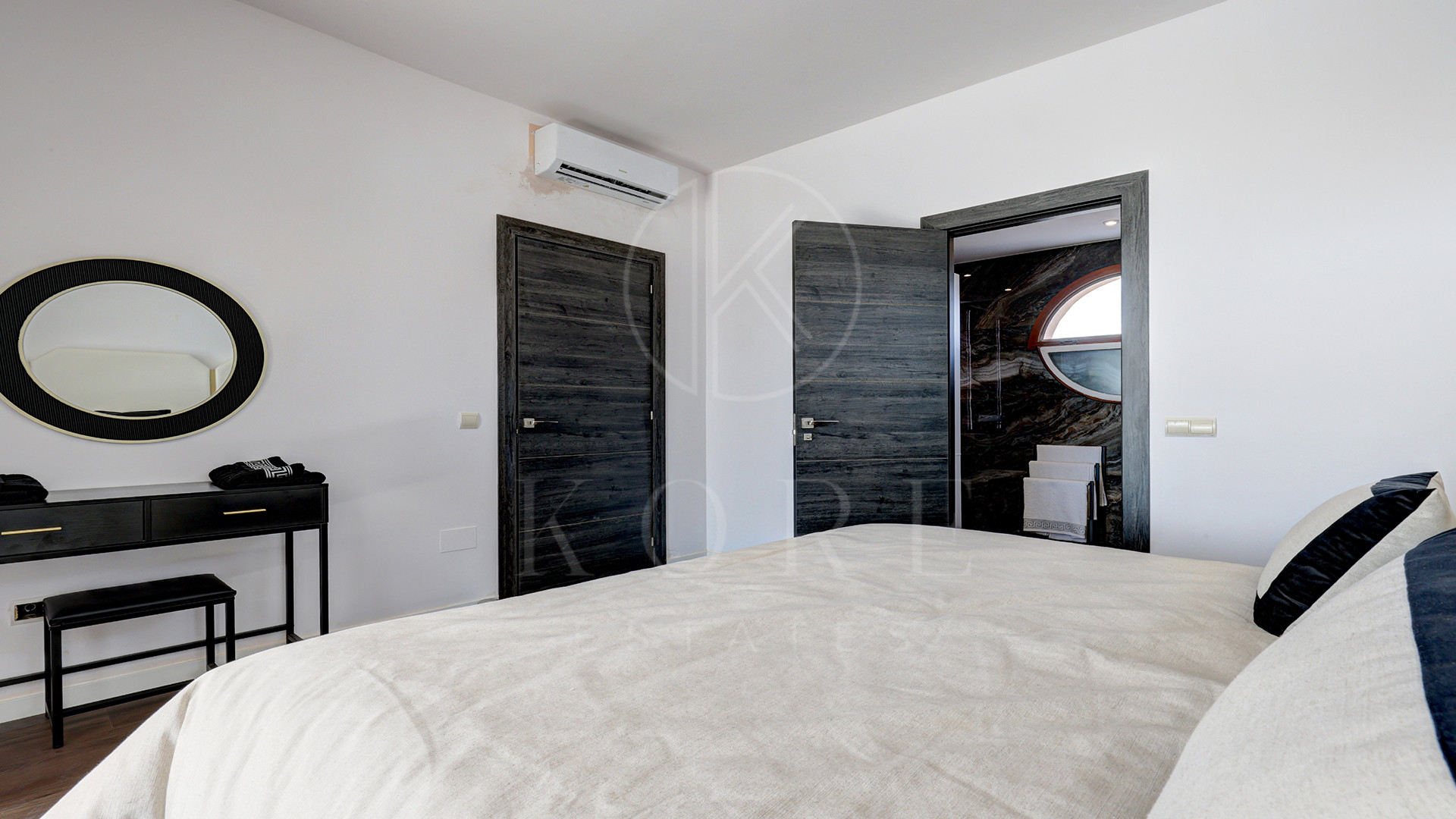 En la planta baja se encuentran dos cómodos dormitorios dobles que comparten un baño reformado con buen gusto, además de un aseo de invitados. La Villa cuenta con aire acondicionado en todas sus estancias, ofreciendo un confort absoluto en cualquier época del año