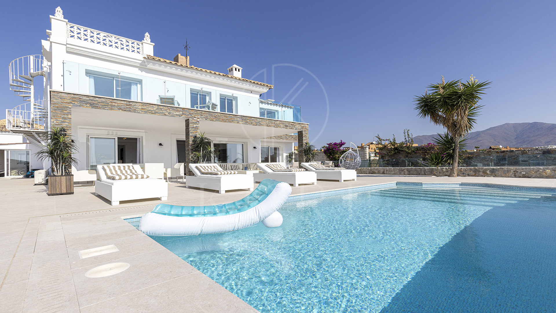 Desde lo alto, las vistas son inigualables con 360° que abarcan desde las montañas y viñedos de Manilva hasta el intenso azul del Mediterráneo. También hay una sauna, ideal para relajarse después de un baño en la piscina.