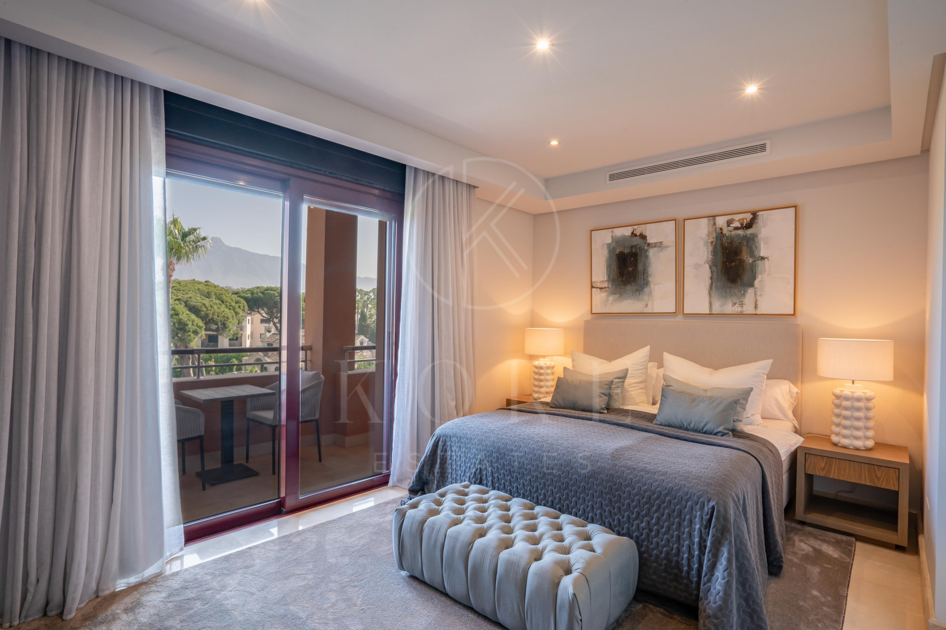 Exclusivo ático dúplex totalmente renovado, ubicado en la prestigiosa urbanización Malibu, a pocos pasos de la playa, Puerto Banús y San Pedro de Alcántara. Ofrece impresionantes vistas panorámicas al mar y acabados de alta gama con diseño escandinavo.