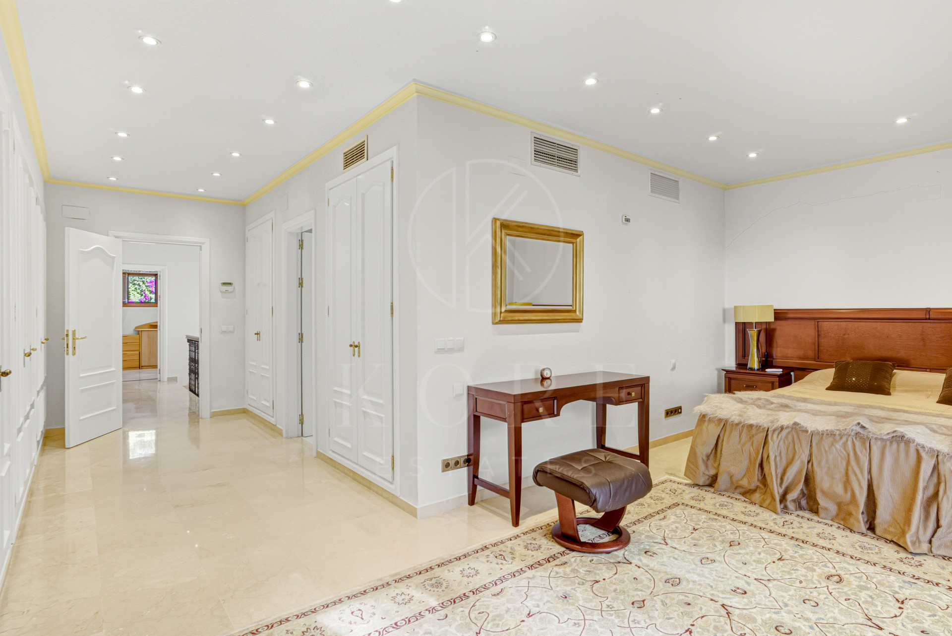 Nueva oportunidad de reforma, frente al sureste Villa de cinco dormitorios situada en la Nueva Milla de Oro en Estepona, a pocos pasos de la playa, ofreciendo una mezcla ideal de espacio, privacidad y potencial de inversión. Situado en una parcela generosa, la propiedad cuenta con interiores luminosos llenos de luz natural, cinco dormitorios, cuatro baños, y amplios espacios exteriores con una piscina privada, jardines ajardinados, una cocina al aire libre y zona de bar, y amplio aparcamiento con un amplio garaje doble y entrada, perfecto para la relajación o el entretenimiento. Si bien es cómodo y listo para entrar, la villa también ofrece excelentes posibilidades de renovación y modernización, presentando una rara oportunidad de añadir valor en una de las ubicaciones más deseables de la Costa del Sol, cerca de campos de golf, escuelas internacionales, Marbella, Puerto Banús, y el animado centro de Estepona.
