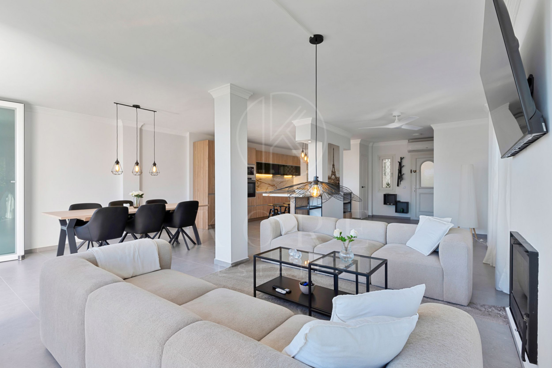 Rodeado de pinos, ofrece mucha tranquilidad, pero está muy cerca de campos de golf, Puerto Banús, Marbella y los mejores restaurantes y tiendas. Desde el momento en que entras, las vistas panorámicas al Mediterráneo son las protagonistas. Además, cuenta con un acceso privado y agradables espacios exteriores cubiertos para disfrutar del clima de la Costa del Sol todo el año.