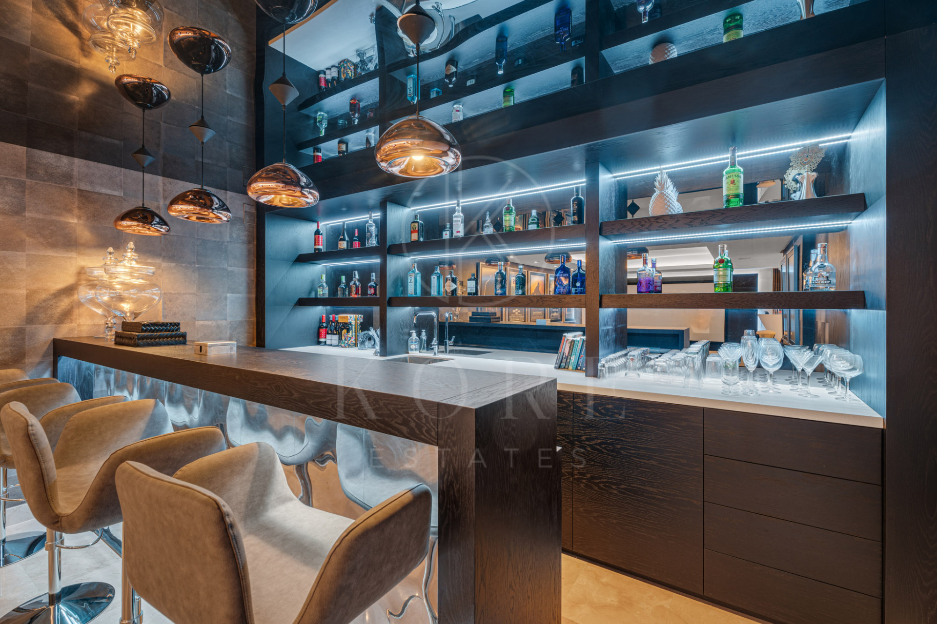 Entre los equipamientos destacan: aire acondicionado individual, persianas eléctricas, doble acristalamiento, sistema de alarma, cámaras de vigilancia, puerta blindada y entrada por videoportero. La propiedad incluye también paneles solares, sistema Dolby Stereo Surround, conexión a internet Wi-Fi, televisión por satélite y armarios empotrados. Su proximidad a servicios, transporte, colegios, golf, playas, puerto, tiendas y zonas infantiles convierten esta villa en una oportunidad única para quienes buscan lujo, seguridad y una ubicación inmejorable en Marbella.